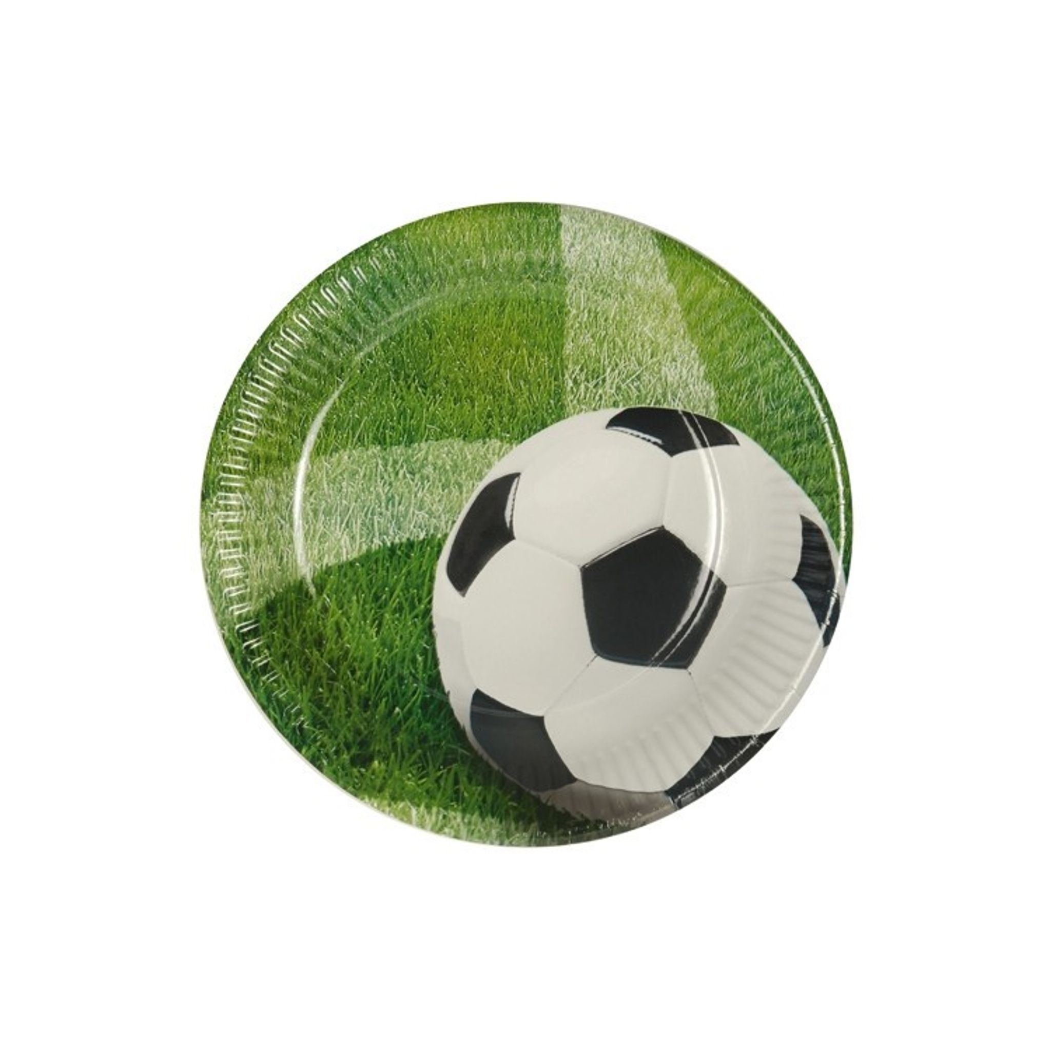 10 st tallrikar med snyggt fotbolls-motiv. Storlek 23 cm. Perfekt för fotbollskalas. 100% papper