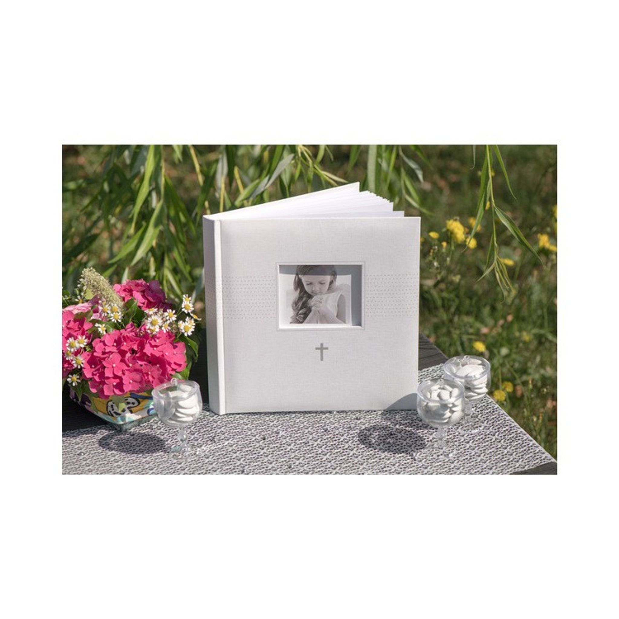 Fin gästbok med plats för fotografi och ett litet diskret kors som pryder boken. Låt gästerna skriva sina hälsningar till konfirmanden eller till den lilla babyn. Ett fint minne att ta fram längre fram i livet.