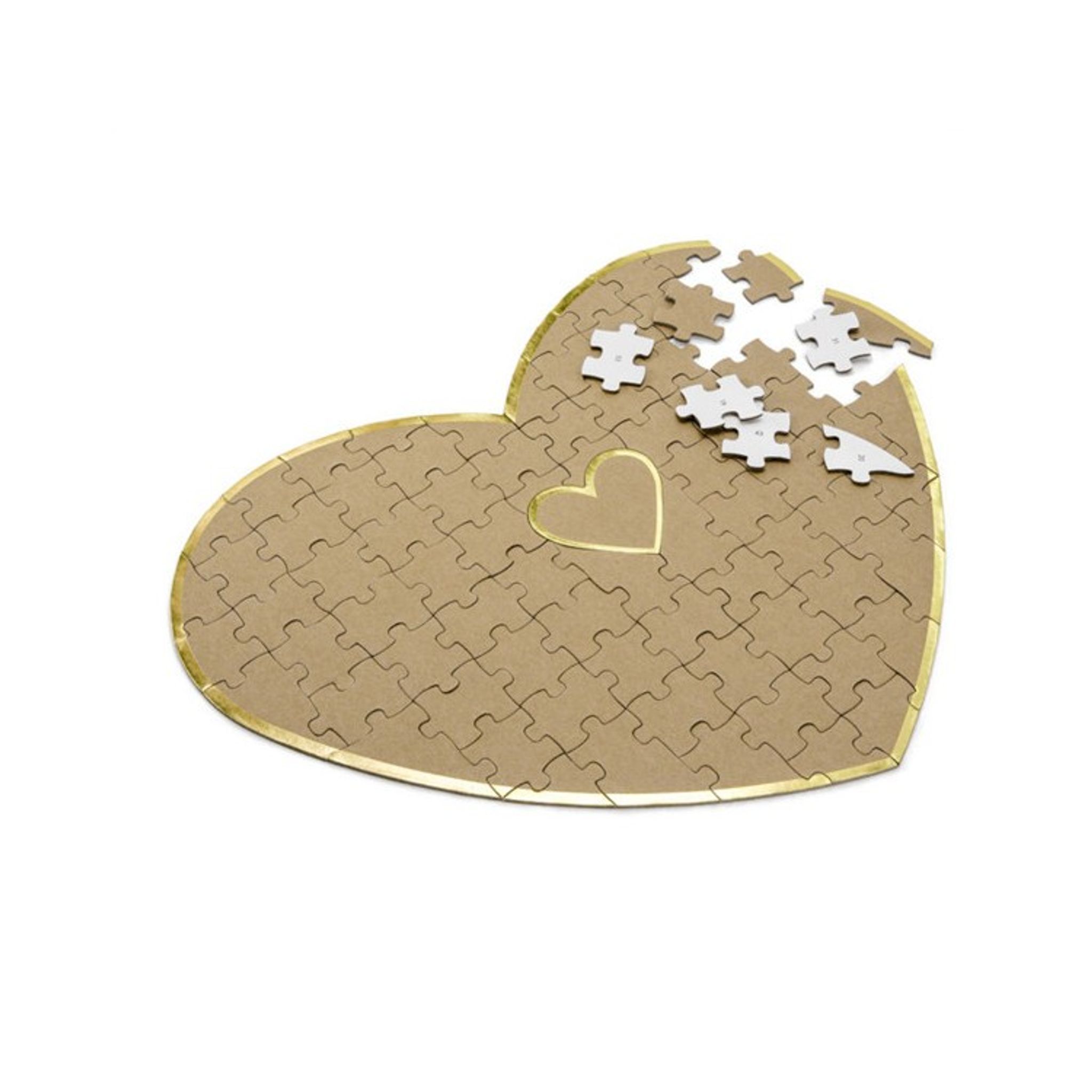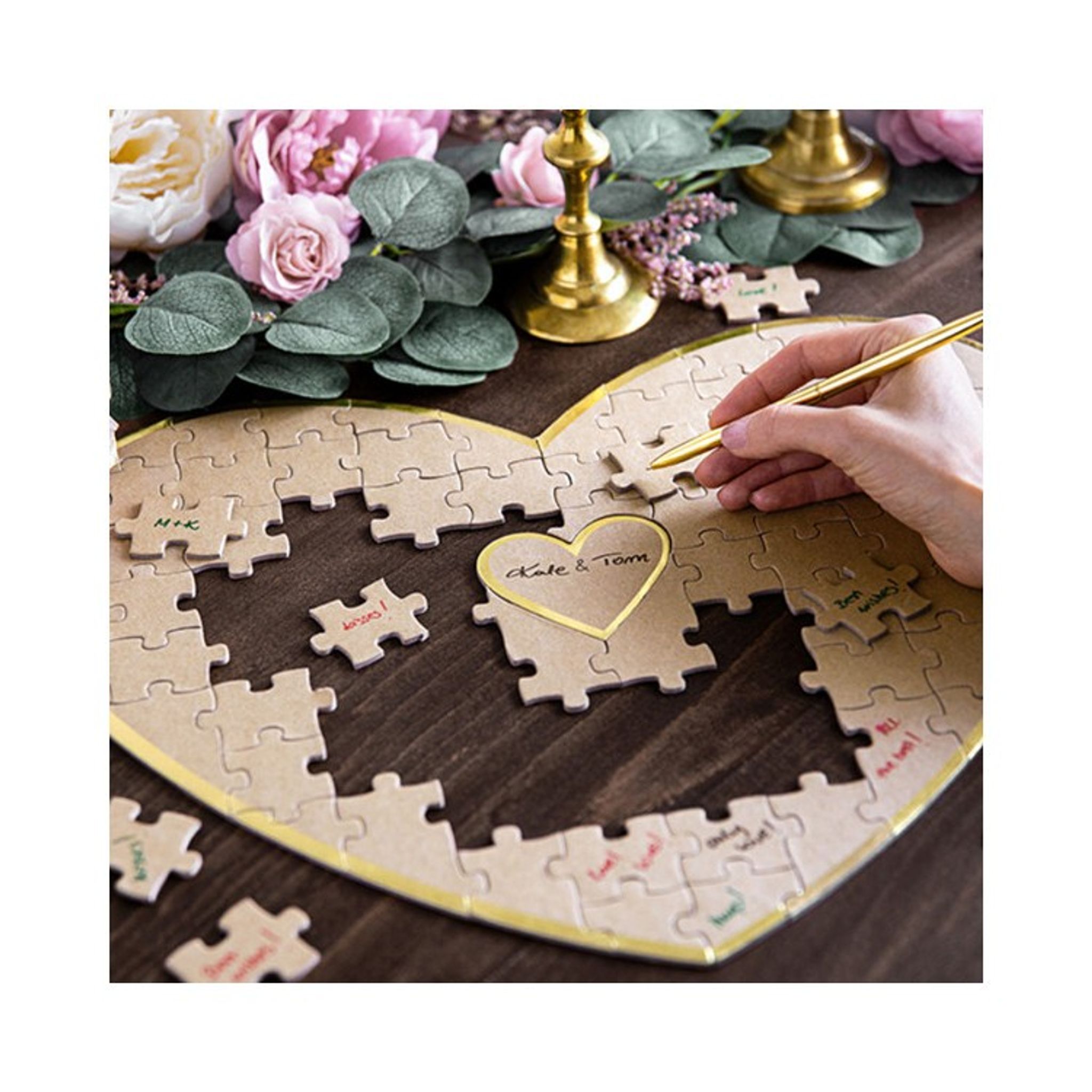 Kul alternativ till gästbok. Pussel med totalt 85 st pusselbitar som gästerna kan skriva små hälsningar på. Pusslet kommer i en ask så att du enkelt kan förvara pusselbitarna.
