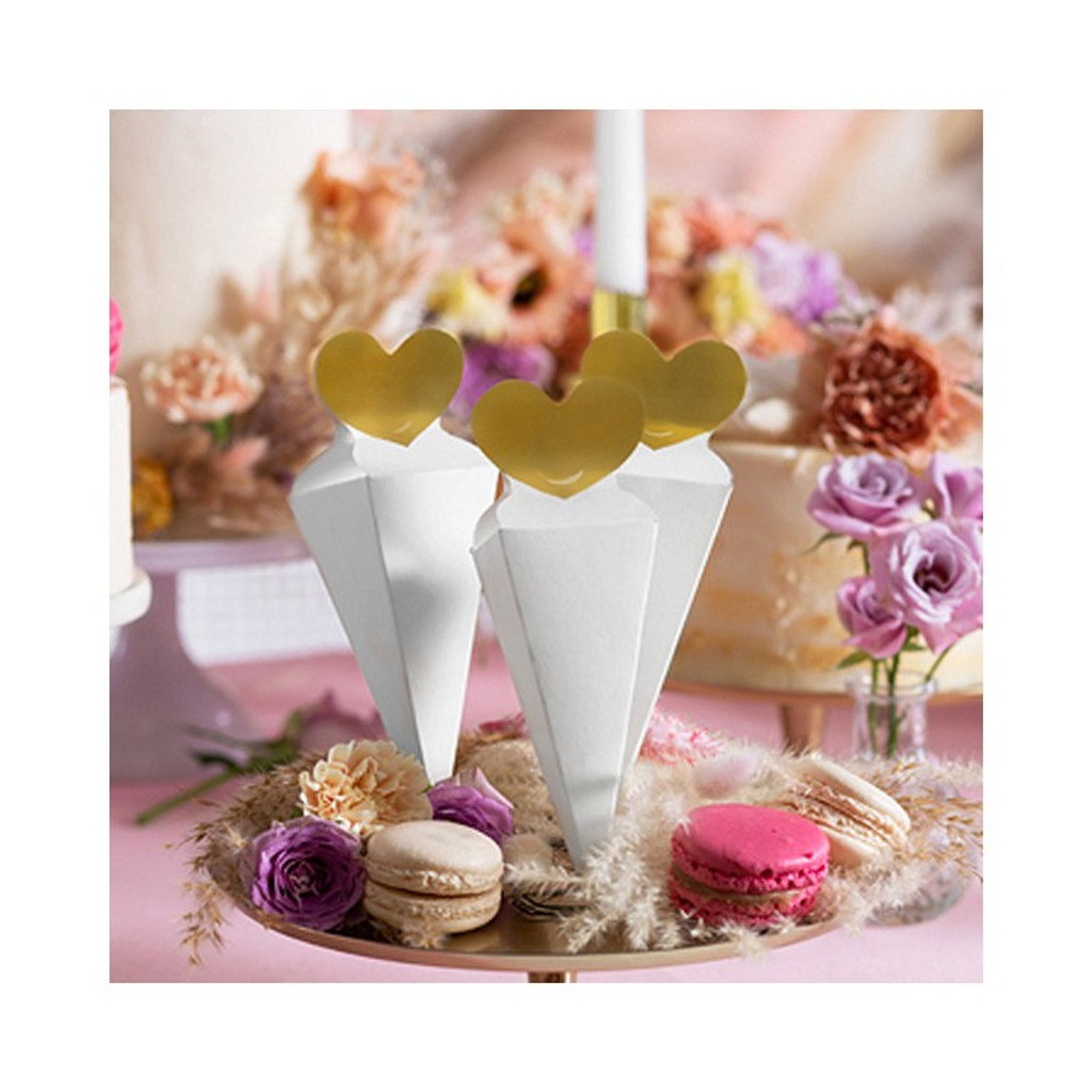 Dessa fina gåvoaskar i form av en vit strut och guldigt hjärta är perfekta till många ändamål. Visa uppskattning till festens gäster på bröllopet genom att lägga en varsin gåvoask vid gästernas platser. Eller varför inte överraska vännen, den du håller kär eller kollegan på jobbet med en liten gåva. Det kan handla om en mindre Alla hjärtans dag present eller en gåvoask fylld med godis till den du vet älskar godsaker. En kärleksfull handling kan göra någons dag!