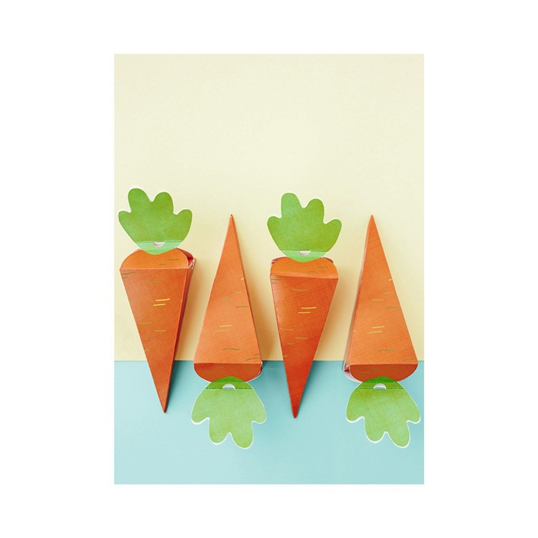 Planerar du en skojig påskjakt eller kanske planerar du ett födelsedagskalas för barnet som älskar bondgårdsdjur eller kaniner? De här gåvoaskarna är något alldeles extra. Pappersaskarna ser både i färg och form ut som riktiga morötter, vilket gör de extra festliga. Göm godis eller småleksaker i dessa och låt barnen gå på skattjakt eller fiska upp dessa i en skojig fiskdamm. Gåvoaskarna är enkla att sätta ihop och fylla med önskat innehåll. Passar också utmärkt som en del av dina påskdekorationer.