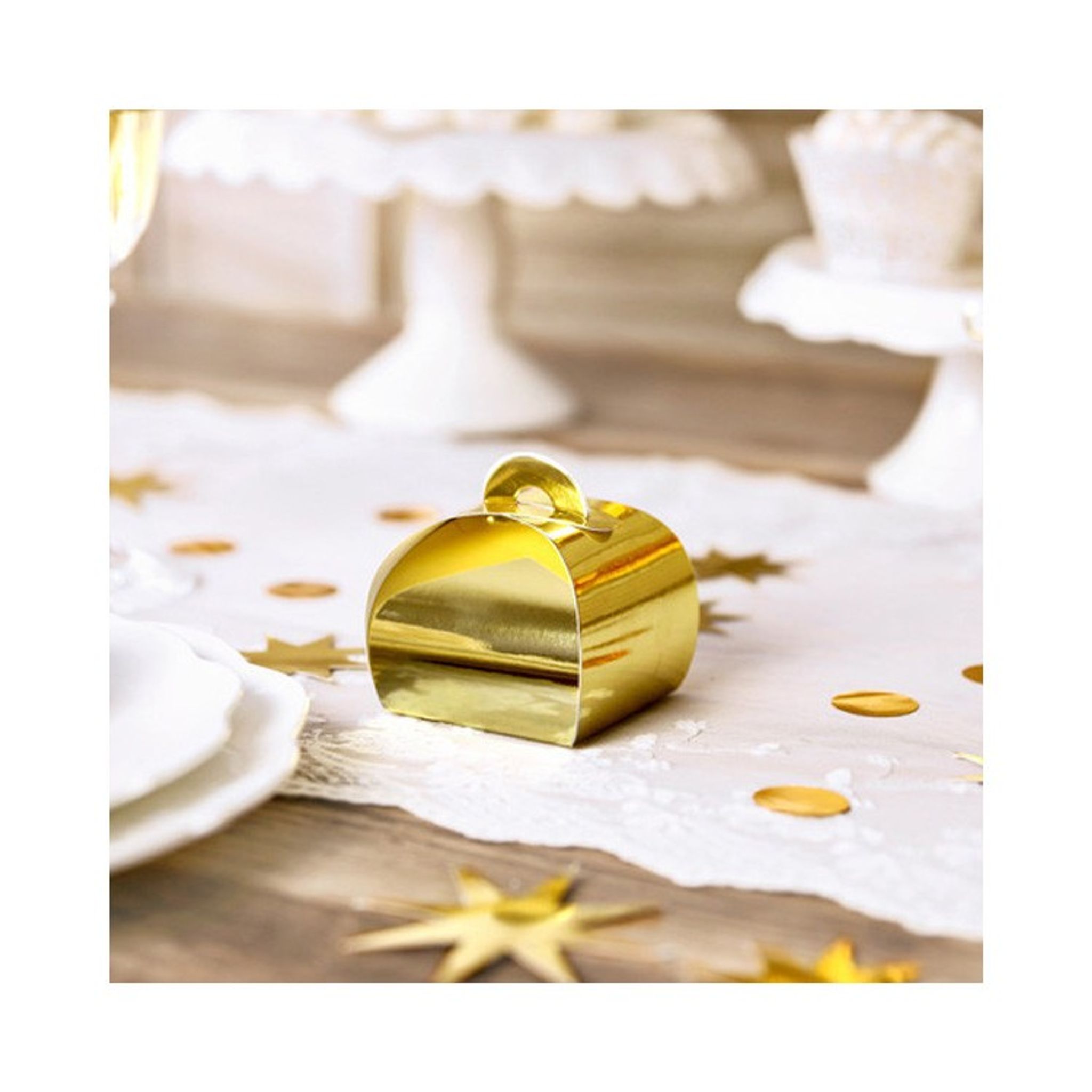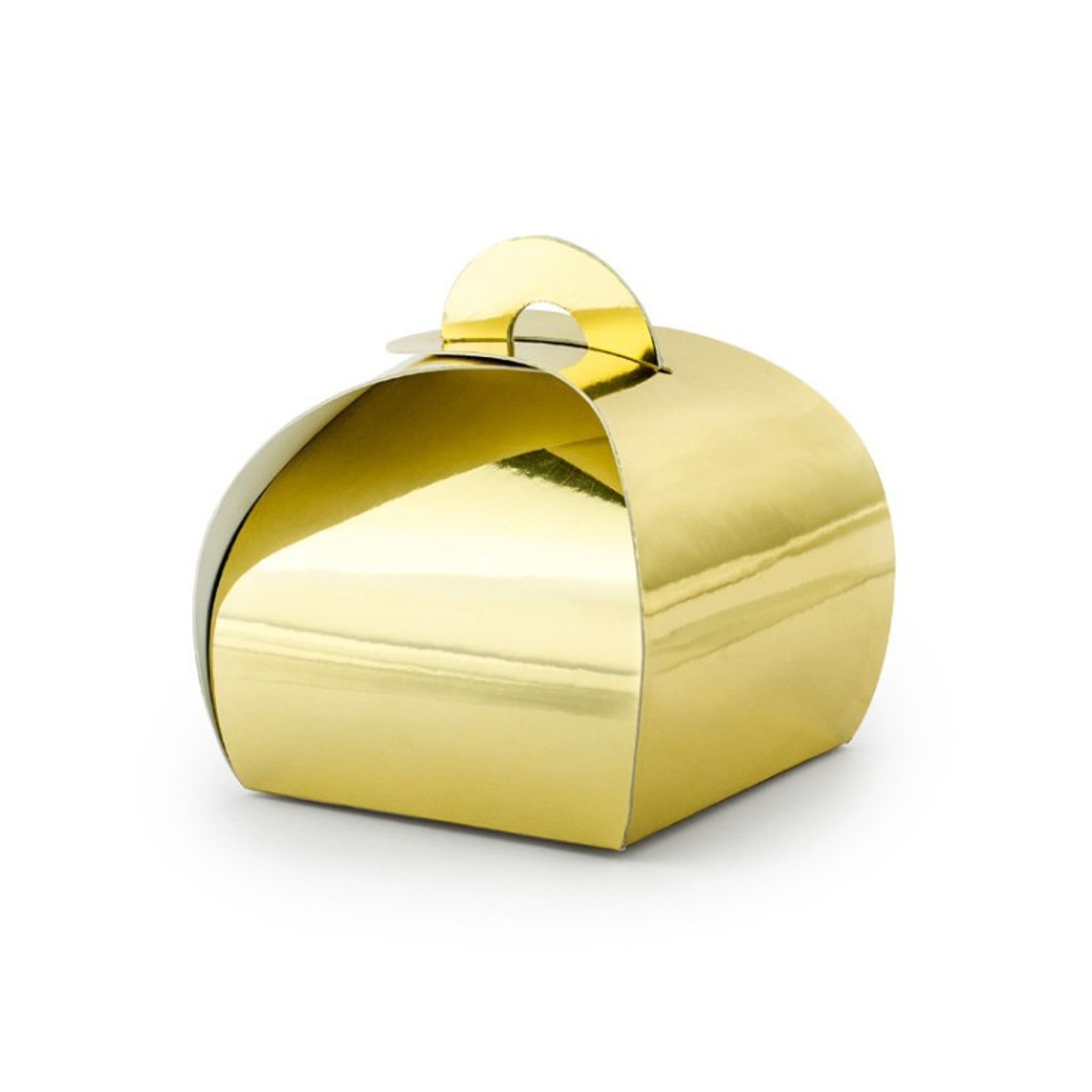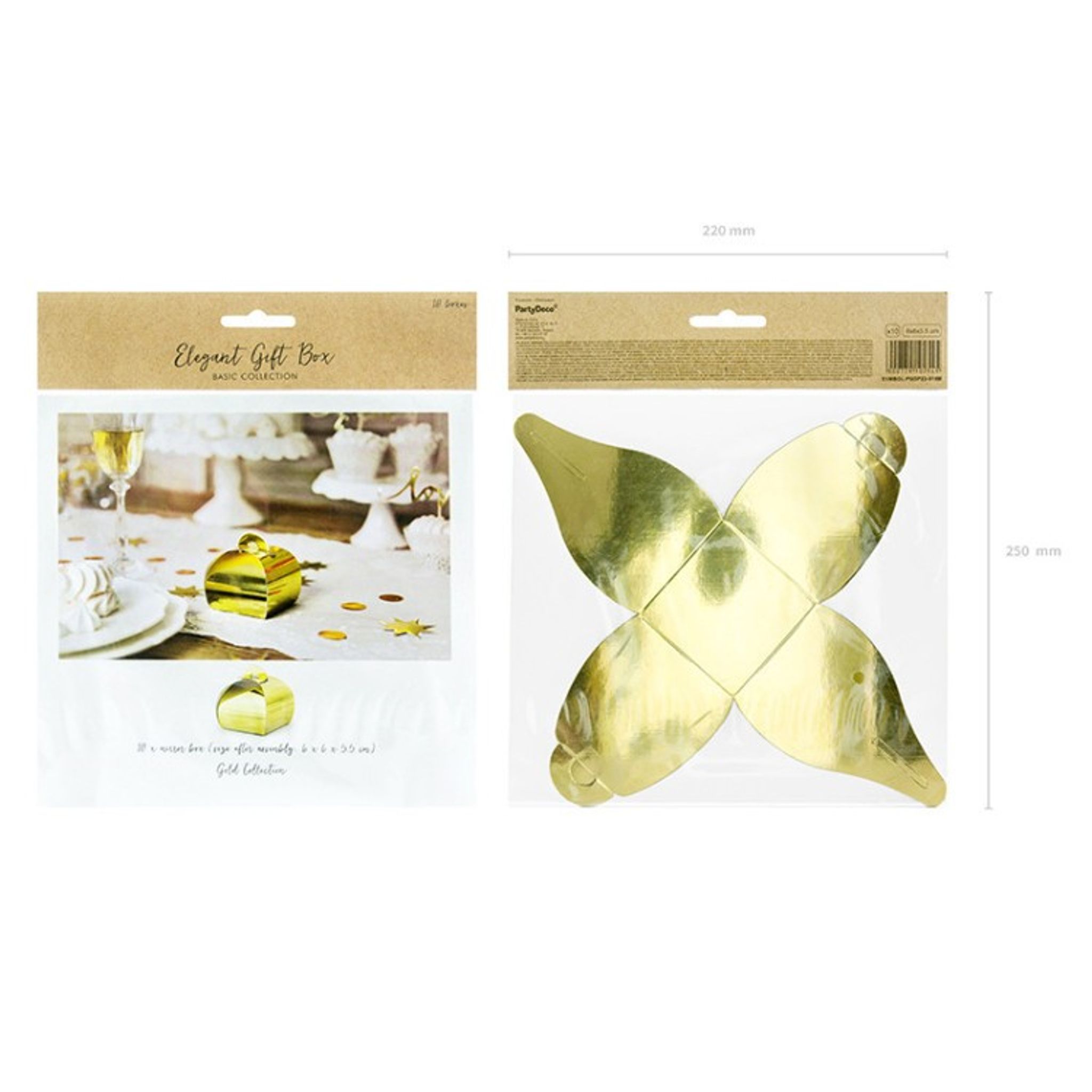 Gåvoaskar i skimrande guld som är perfekta att fylla med t.ex små godsaker och använda vid dukningen. Dessa viker du lätt och smidigt själv ihop .