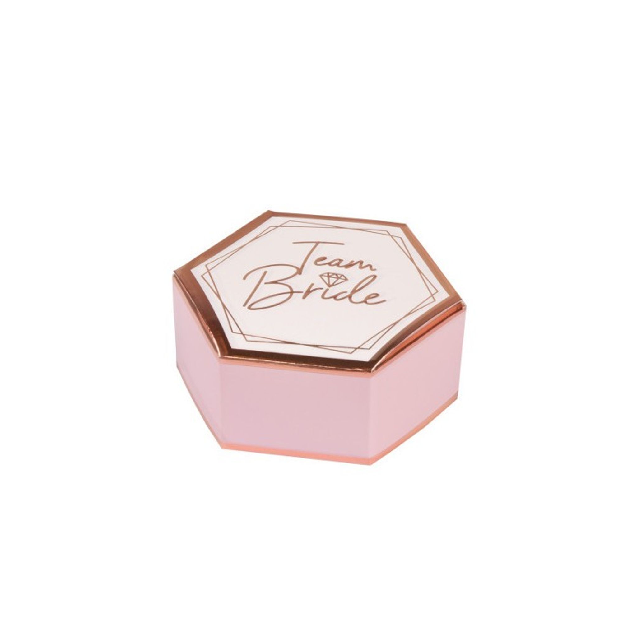 Förpackningen innehåller 8 st gåvoaskar med texten Team Bride.