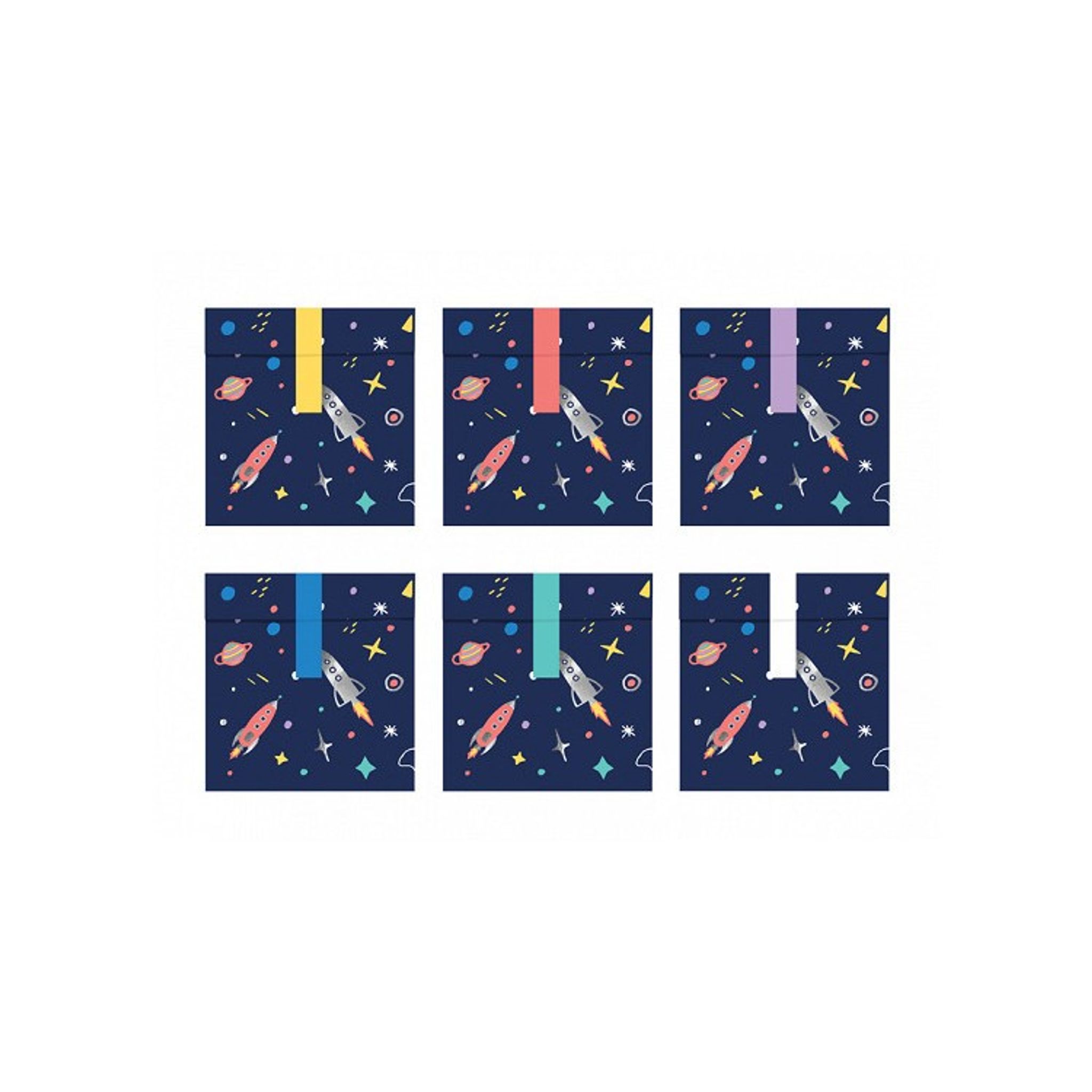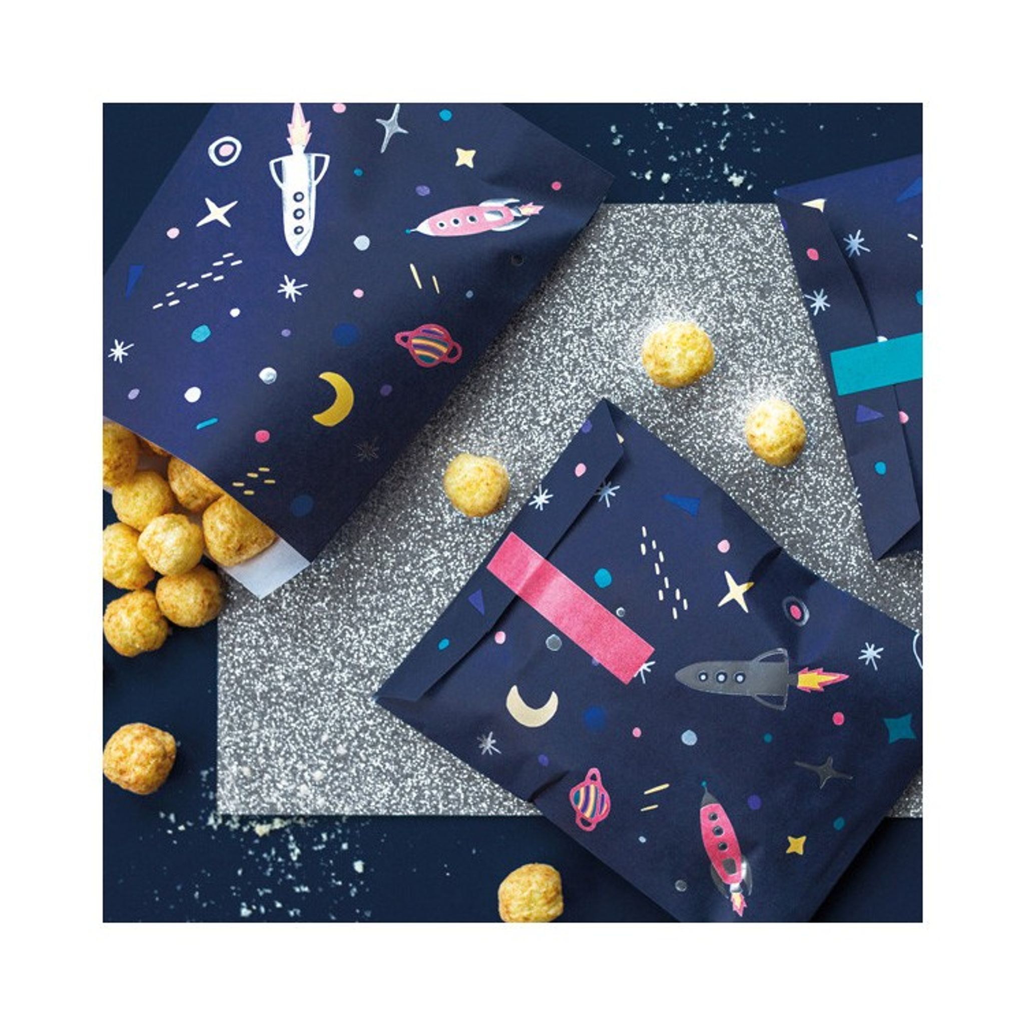 Häftiga små gåvopåsar med rymdtema i form av planeter, stjärnor, rymdraketer och andra färger och former. I dessa papperspåsar kan du stoppa allt från småleksaker till kalasgodis att ge bort till gästerna på kalaset. Skapa en spännande fiskdamm där de små astronauterna själva får fiska fram sin rymdpåse med roligt innehåll.