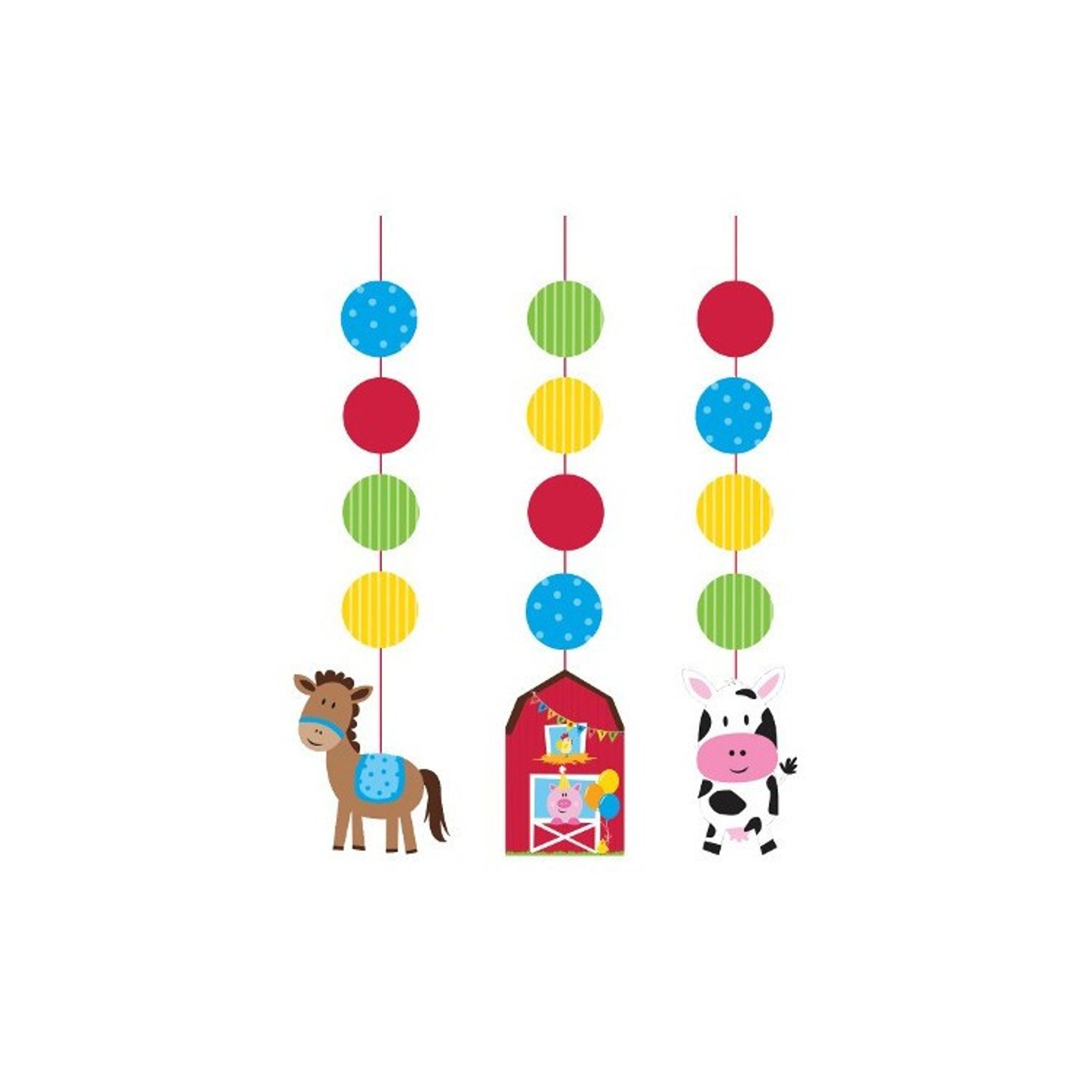 3 st söta girlanger med motiv av bondgårdens djur. Färgglad girlang att dekorera med på barnkalaset