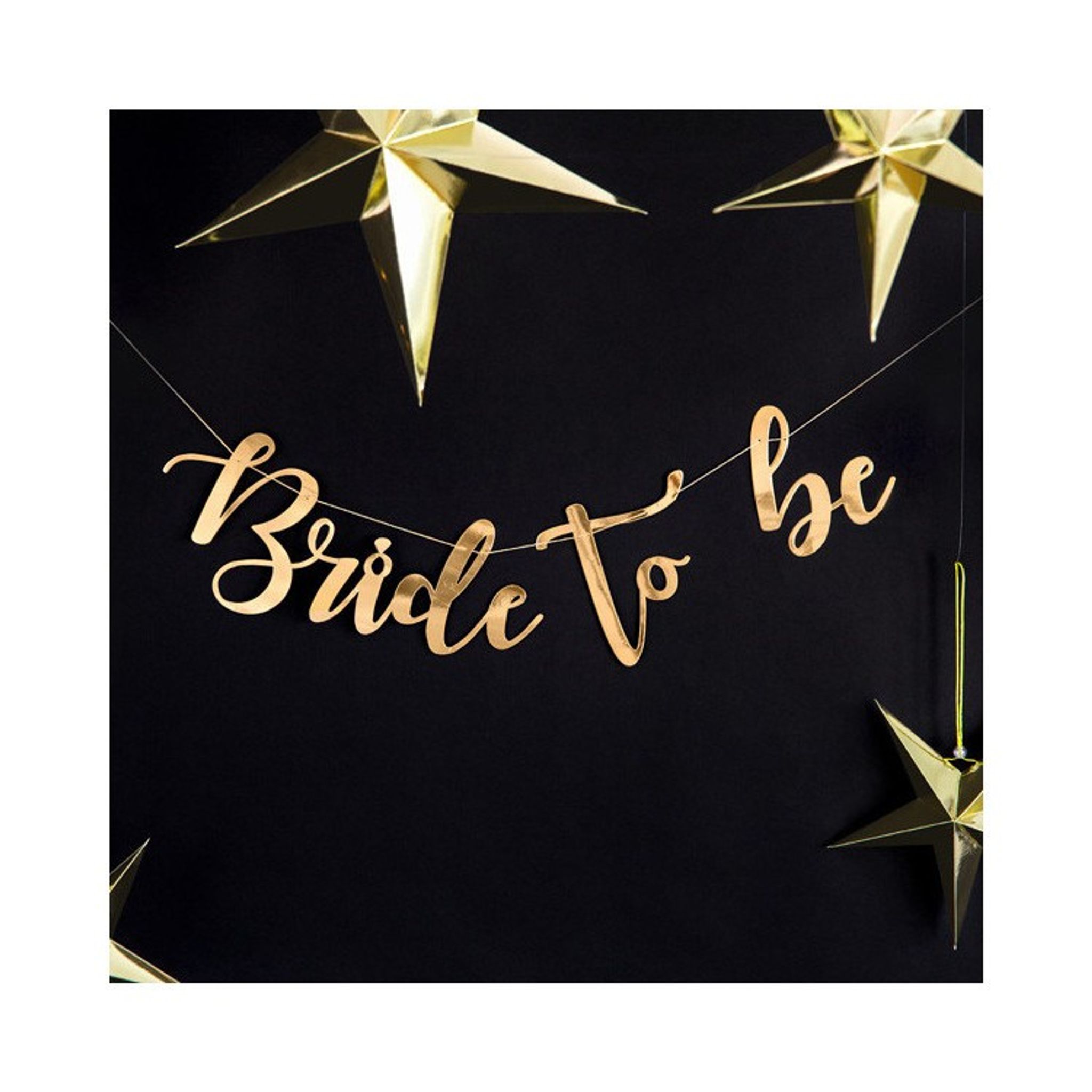 Snygg girlang med texten Bride to be. Perfekt att dekorera med på möhippan när den blivande bruden ska överraskad. Girlangen är i papper och har guldfärg. Storlek: 80 x 19 cm DIY = du sätter själv ihop denna