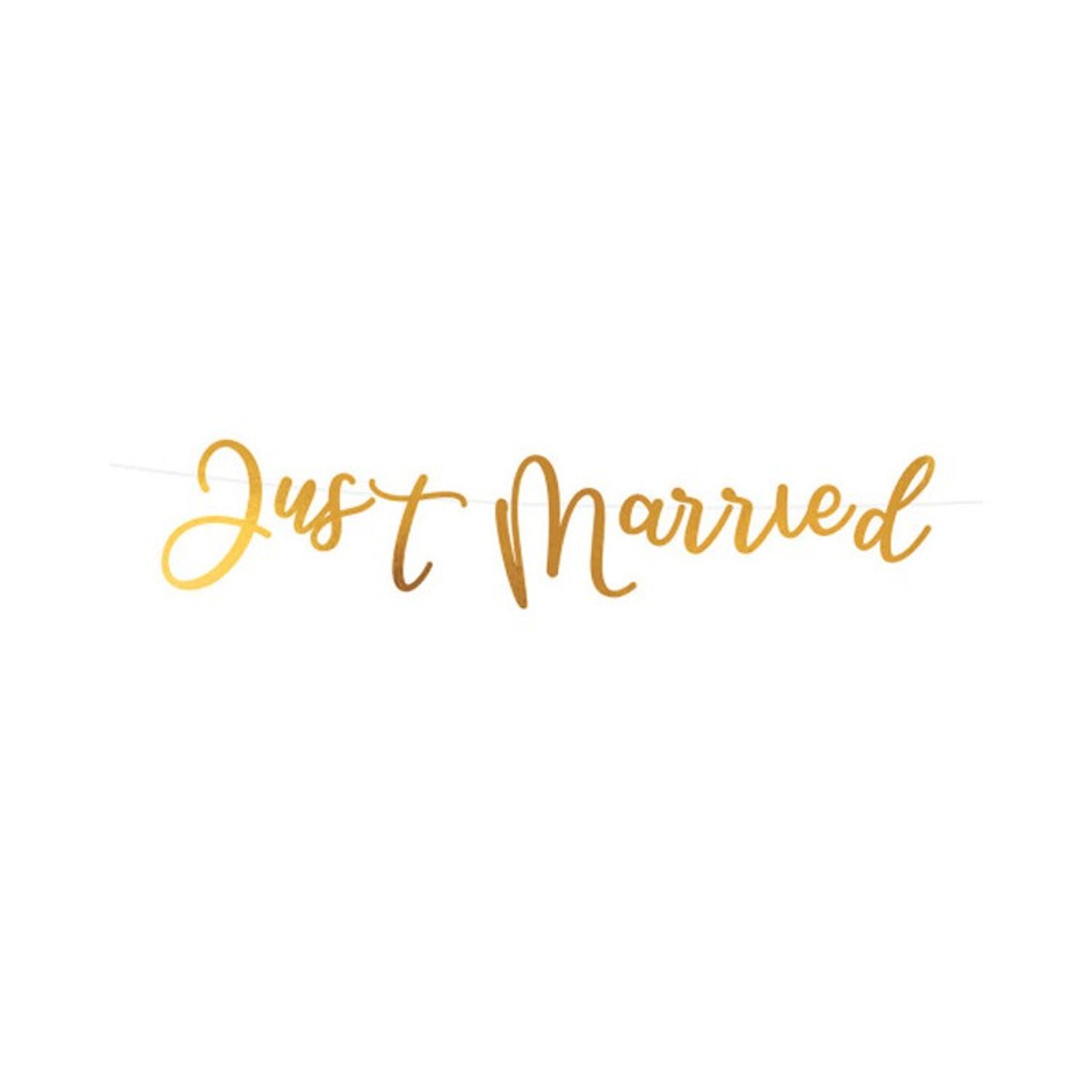 Guldfolierad pappersgirlang med texten "Just married".