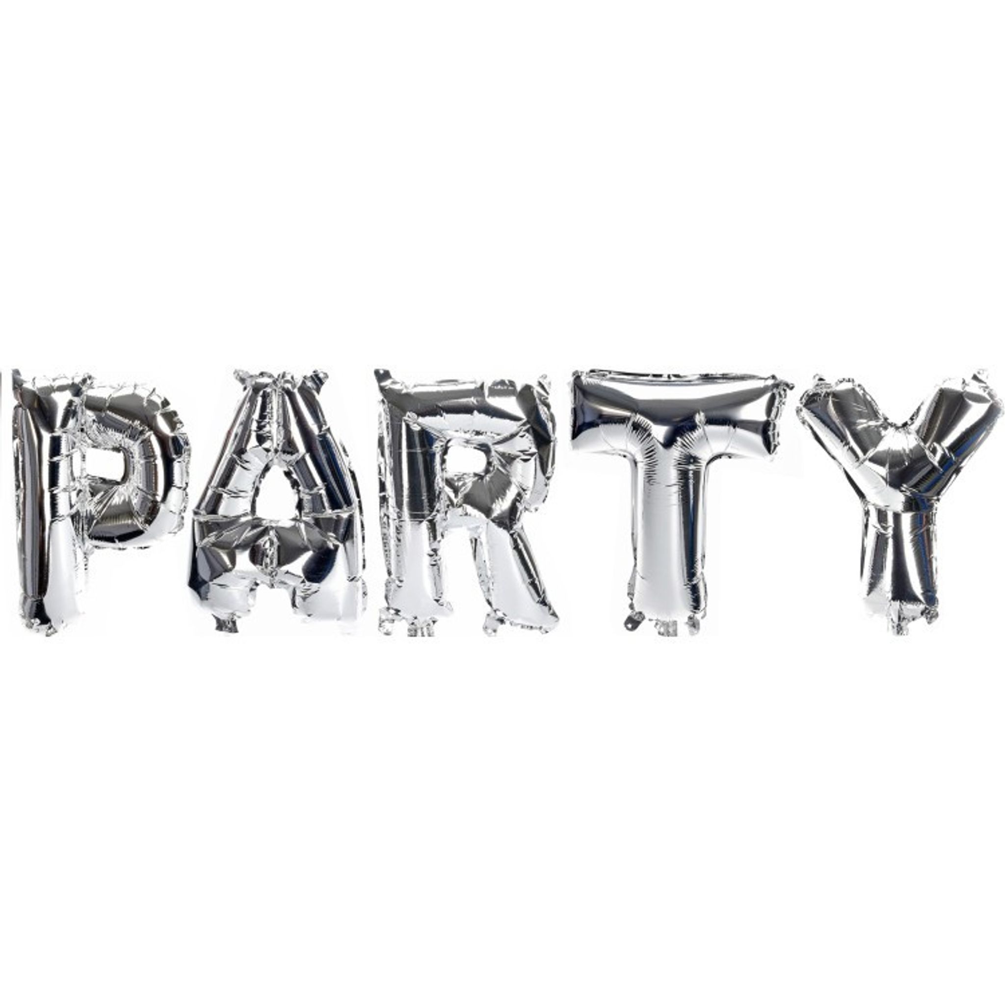 Ballonggirlang i silver med texten PARTY. Perfekt att dekorera med på alla festliga tillställningar.