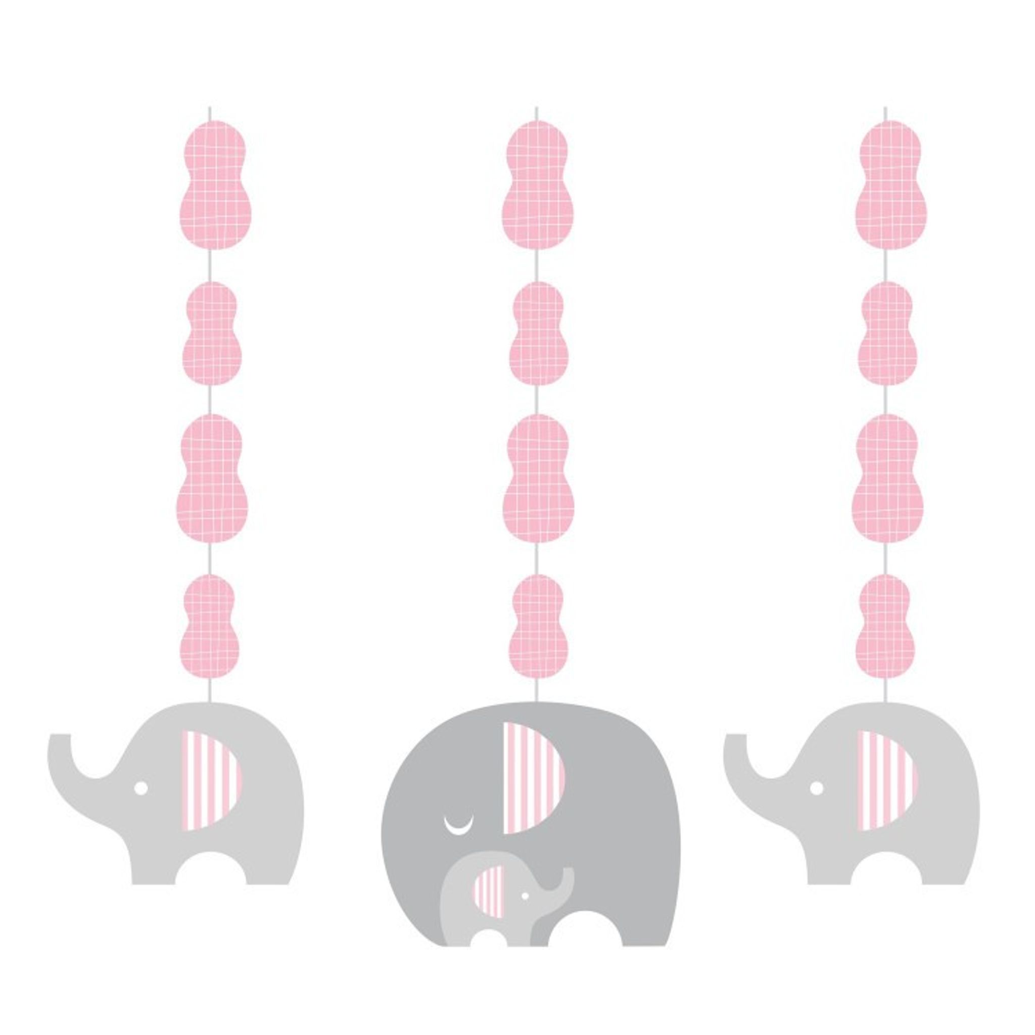 Söt girlang med elefanter och jordnötter. Dekorera kalaset med denna girlang tillsammans med övriga produkter i samma serie och dekorationen på kalaset kommer bli riktigt söt! Girlangen går i dova färger, grå och rosa.