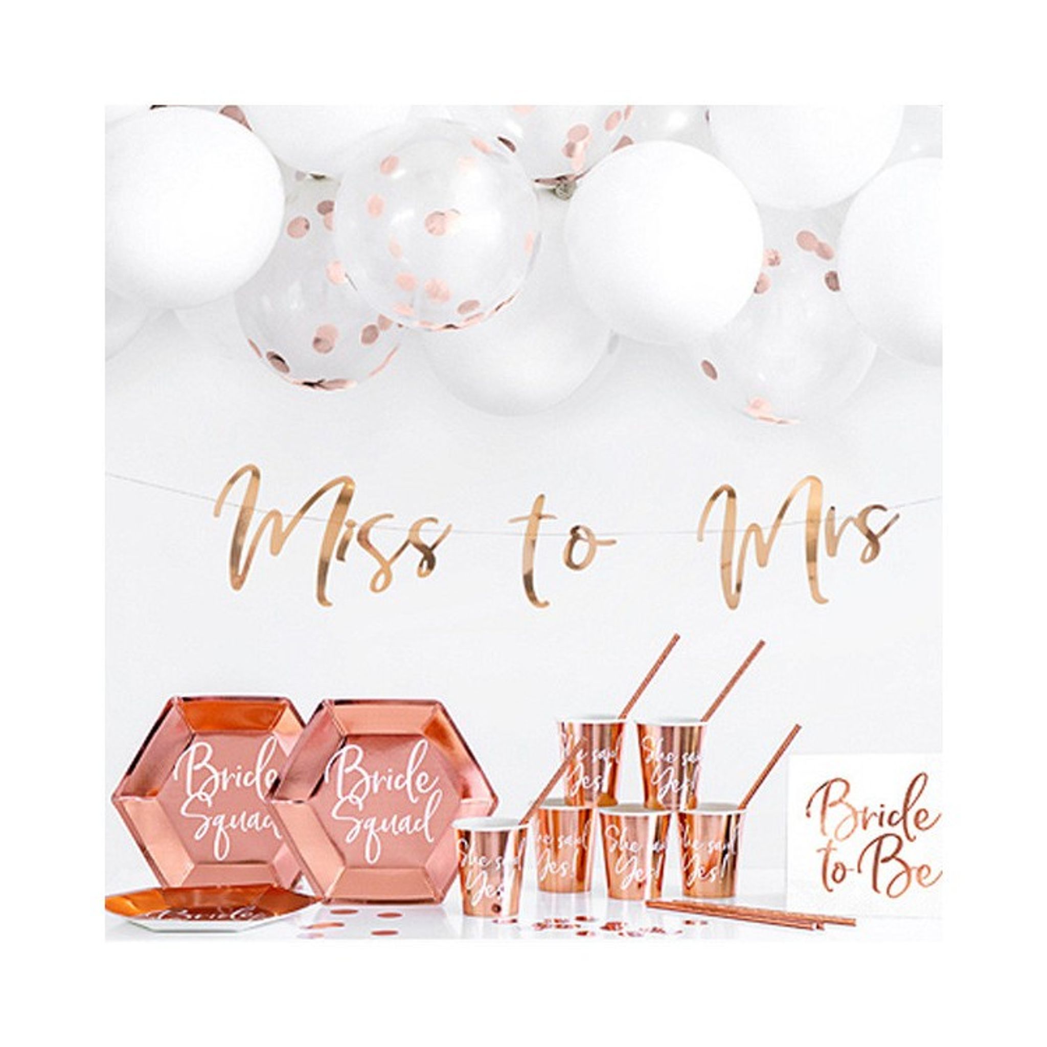 Ska en kär vän gifta sig? Dekorera för möhippa! Den här snygga och stilrena pappersgirlangen med rosé folierad text "Miss to Mrs" är perfekt för att skapa en magisk dag för den blivande bruden.