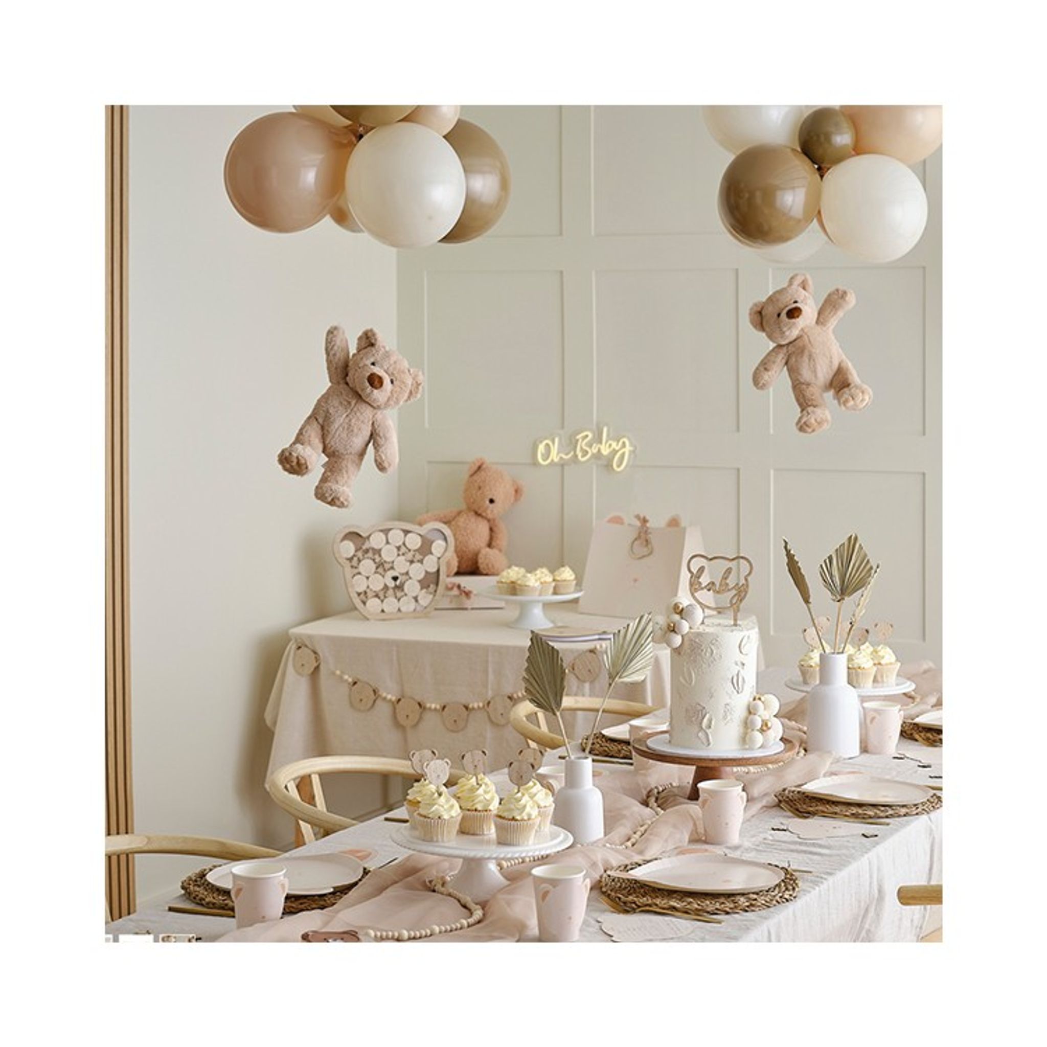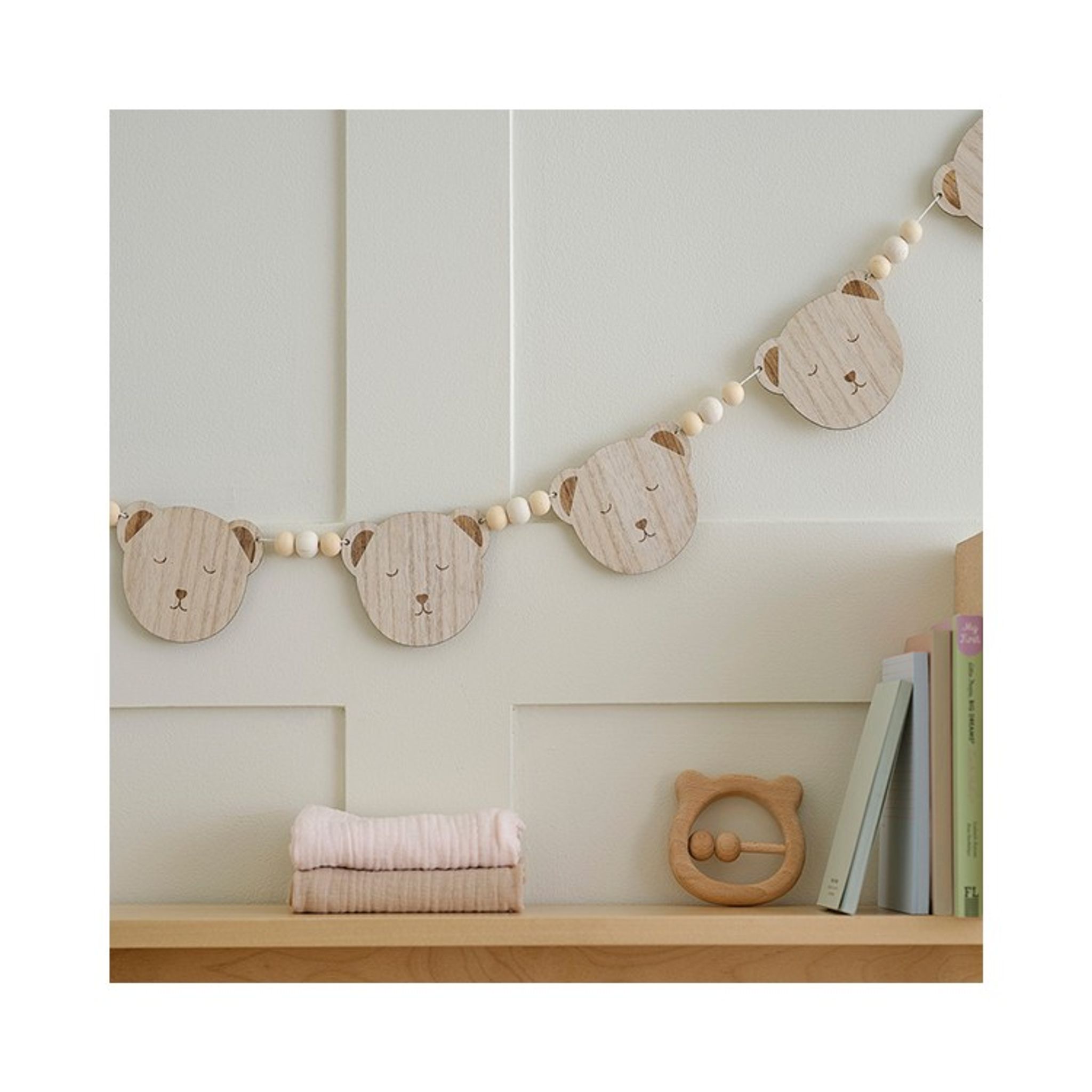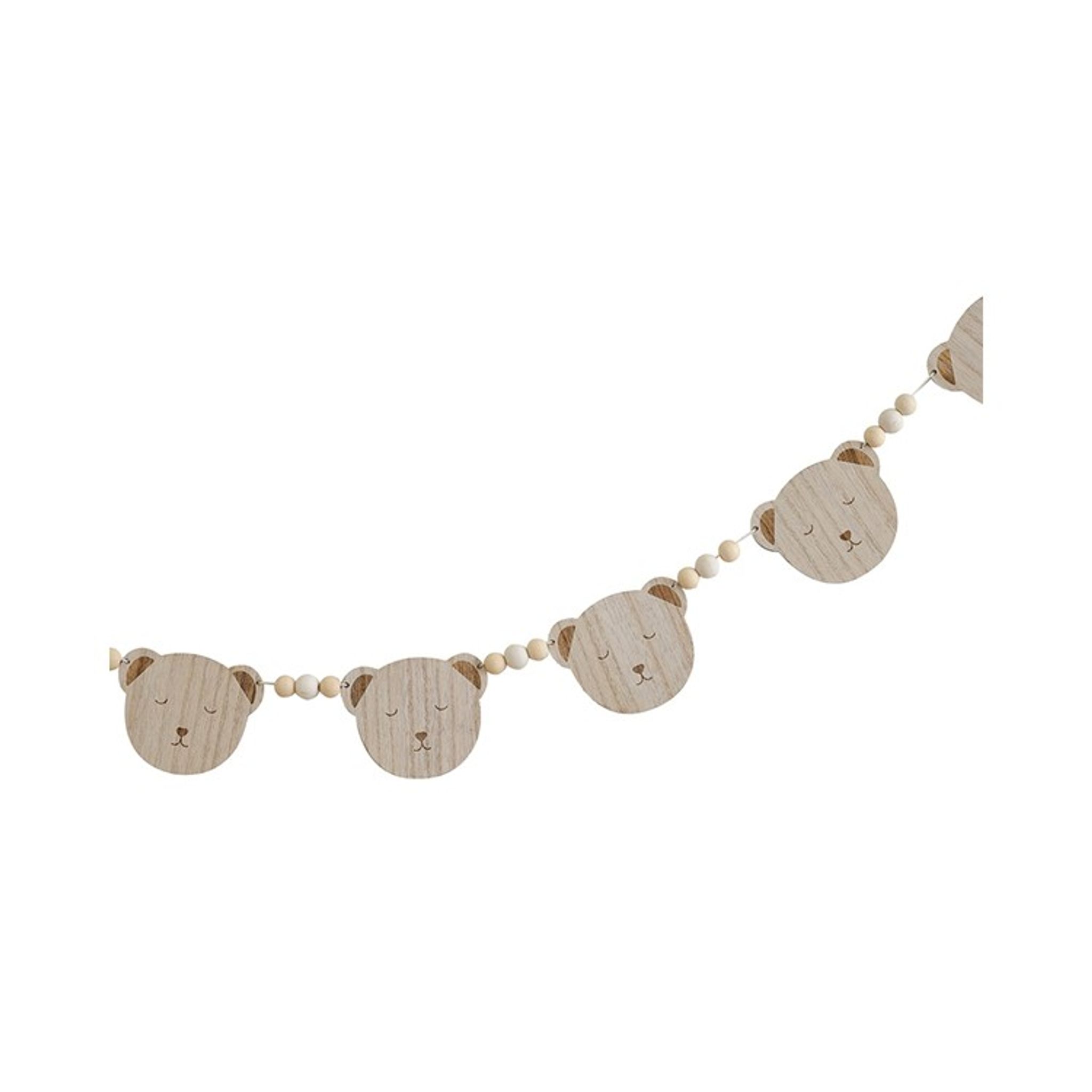 We can bear-ly wait! Denna söta girlang i trä med sovande nallar tillsammans med träpärlor är superfin att dekorera med till babyshower, dop eller barnkalas för de minsta sötnosarna.