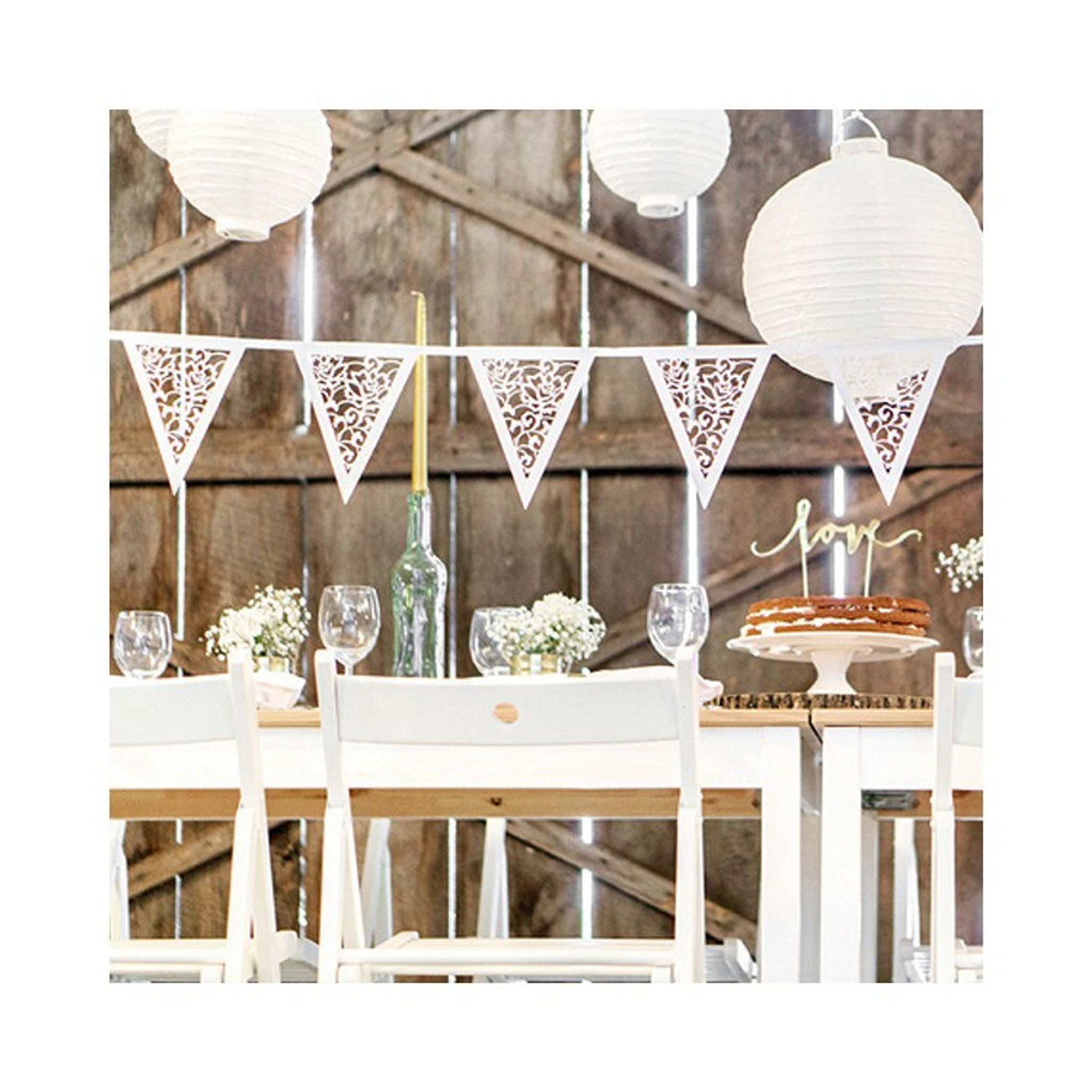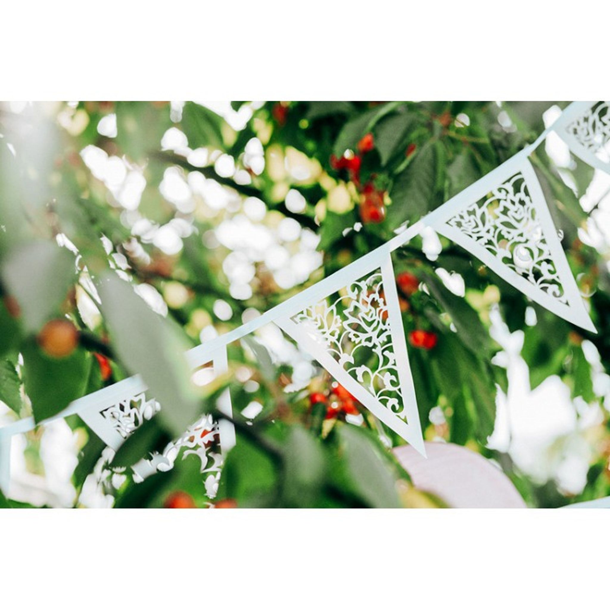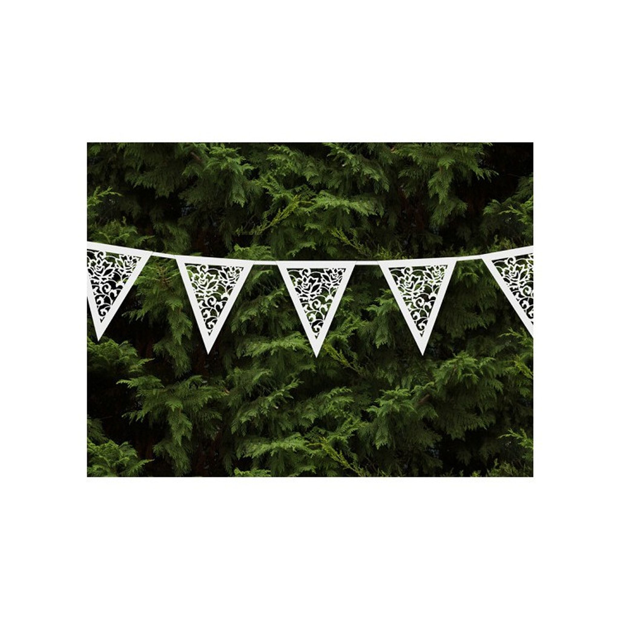 En helt underbar vimpelgirlang i vitt med spetsmönster. En perfekt dekoration att hänga upp på t.ex bröllopet. Girlangen är i papper och går att återanvända.