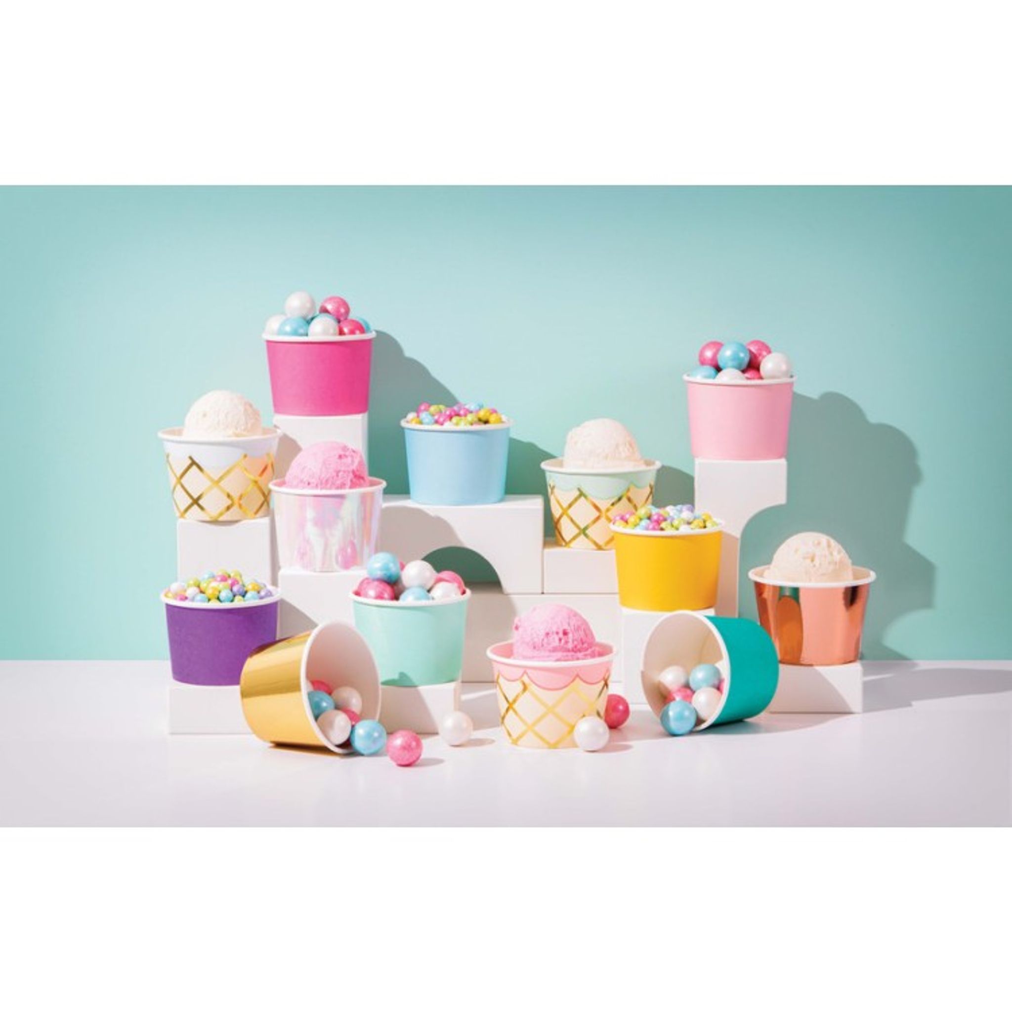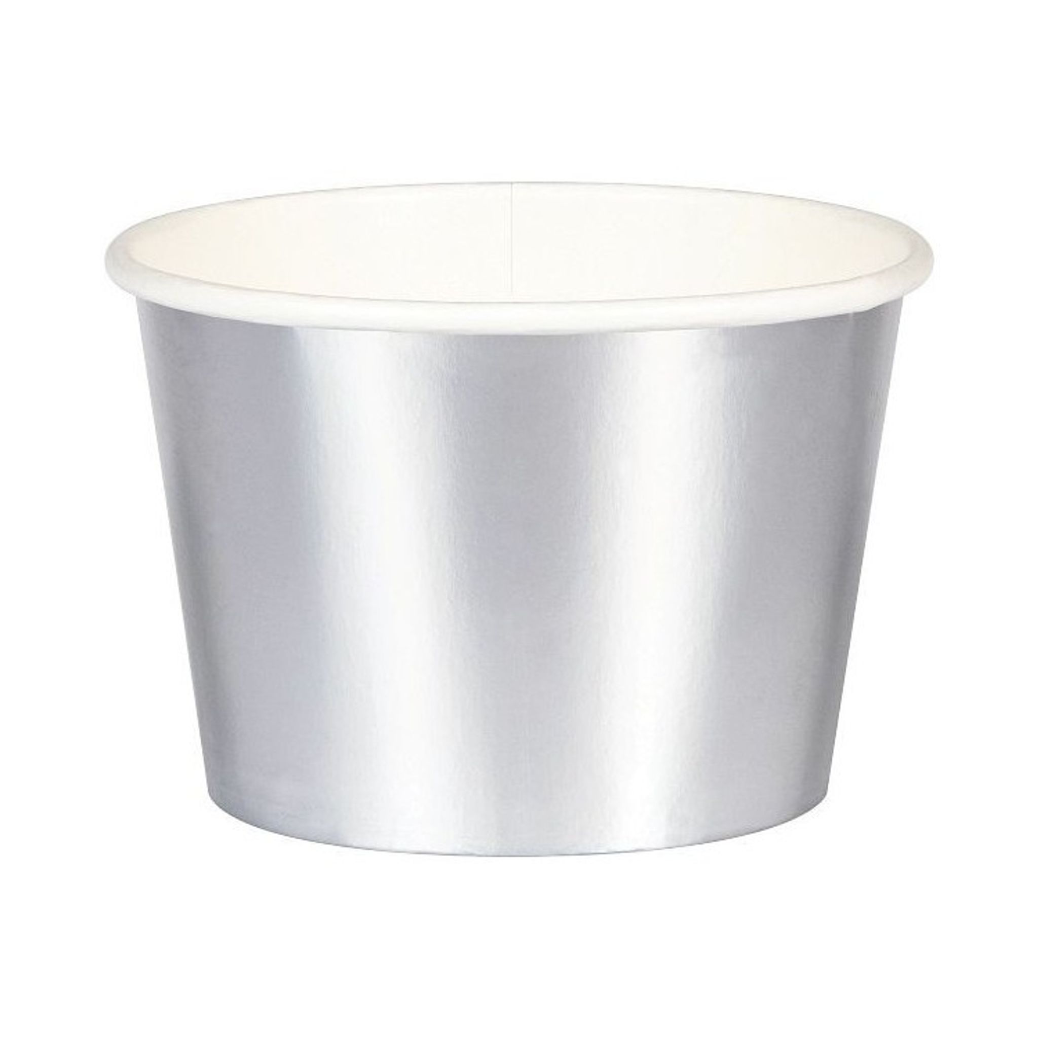 Bägare för glass eller annat snacks som du vill servera på kalaset. Bägarna har en silverskimrande yta och skapar genast en festlig känsla. Så använd dessa för att duka upp snack eller liknande.