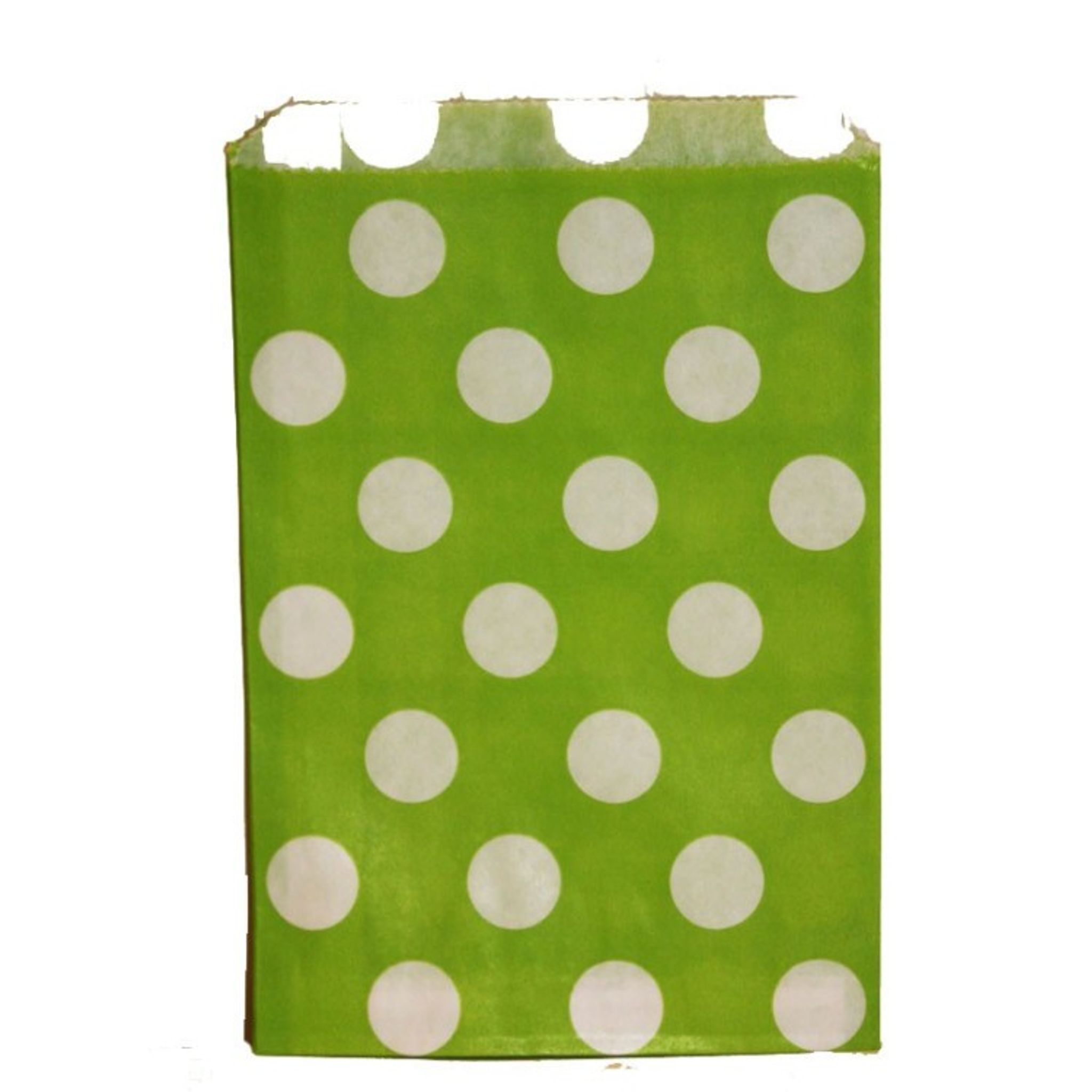 Underbart fina godispåsar av papper i fin färgglad limgrön färg med stora vta prickar. Sapa ett härligt grönt kalas med vårt stora kalasutbud och matcha llt från tallrikar, muggar, servetter och även godispåsarna.