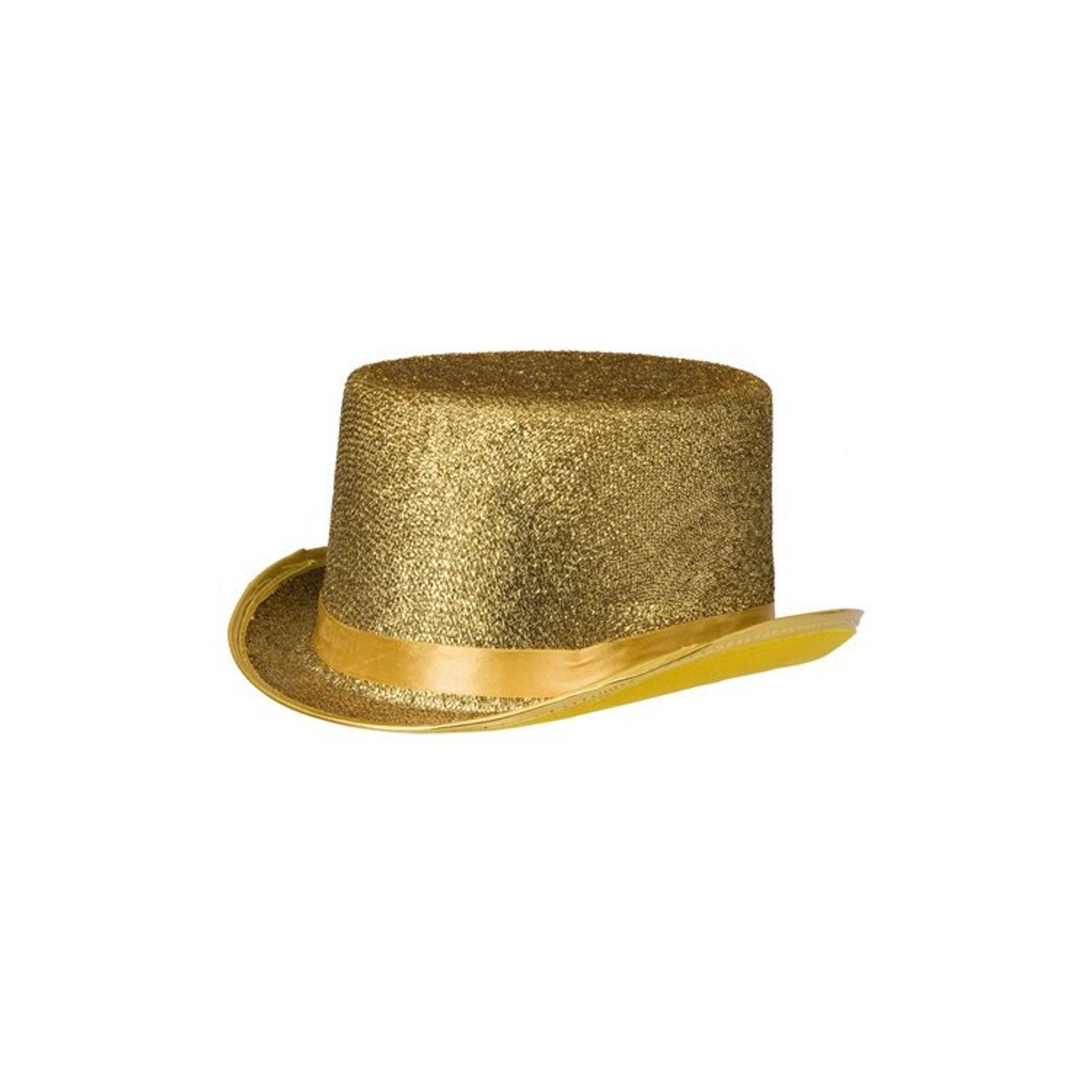 Hög hatt i guldglitter. Perfekt för alla festliga tillfällen! Vuxenhatt gjord av polyesterfilt. Höjd, 12 cm Bredd, 25 cm Djup, 29,5 cm OBS! Stora i storleken