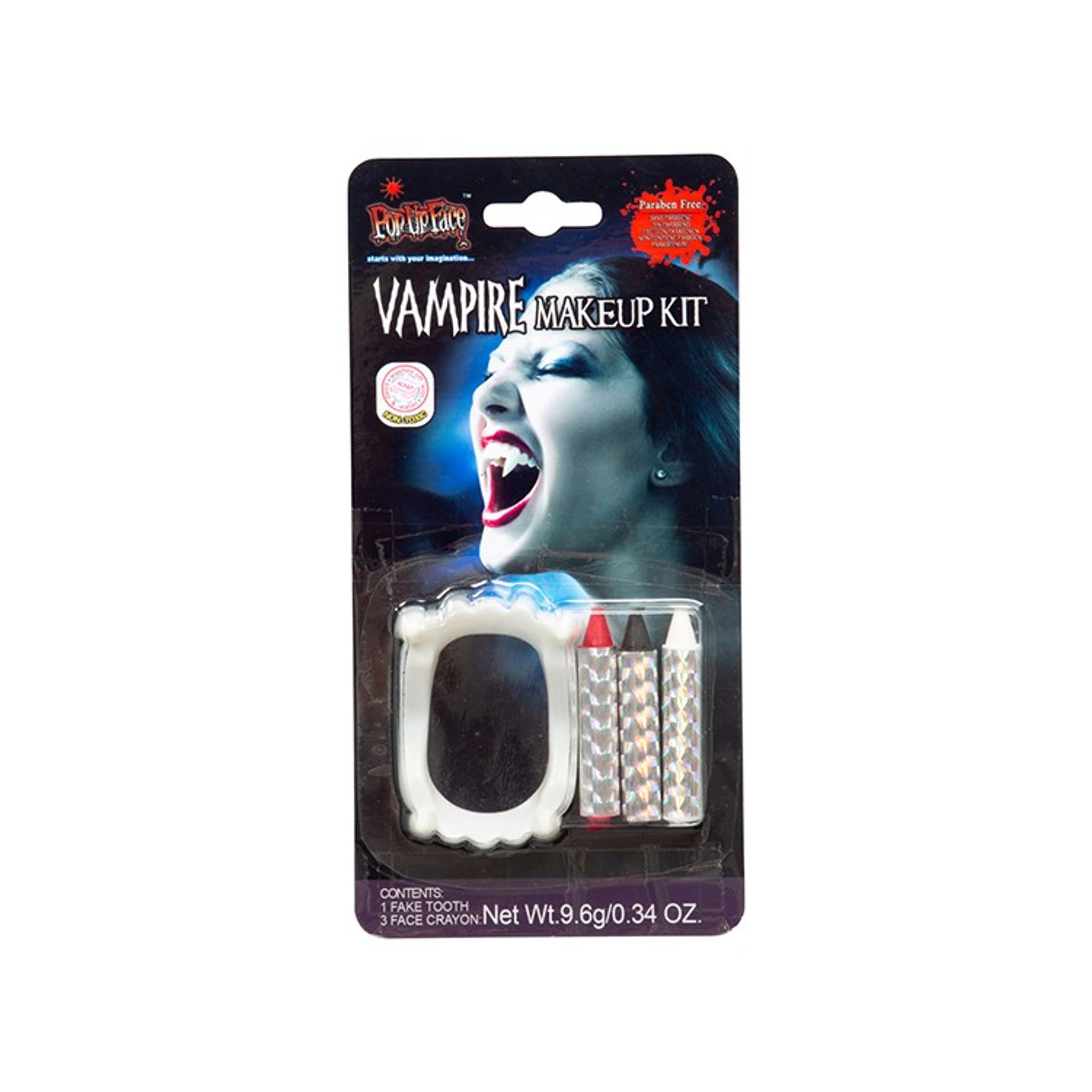 Förvandlas till en läskig vampyr med hjälp av Halloweensmink i vitt, svart, rött och grått/silver. Med detta sminkset blir det enkelt att klä ut sig läskigt inför Halloween.