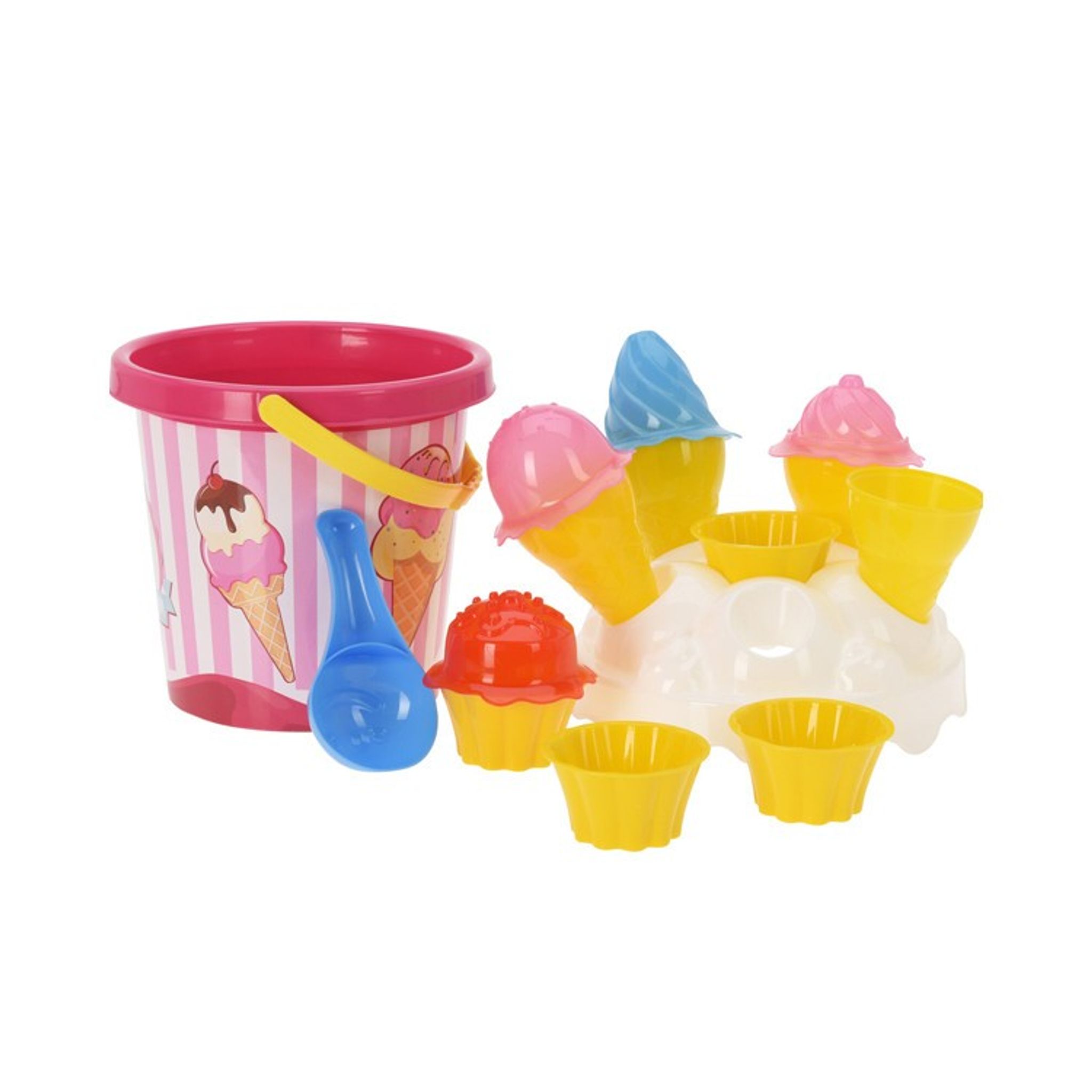 Setet innehåller en hink, en sil, 4 färgglada glassformar, en skopa och 4 formar. Perfekt för stranden eller sandlådan i trädgården.