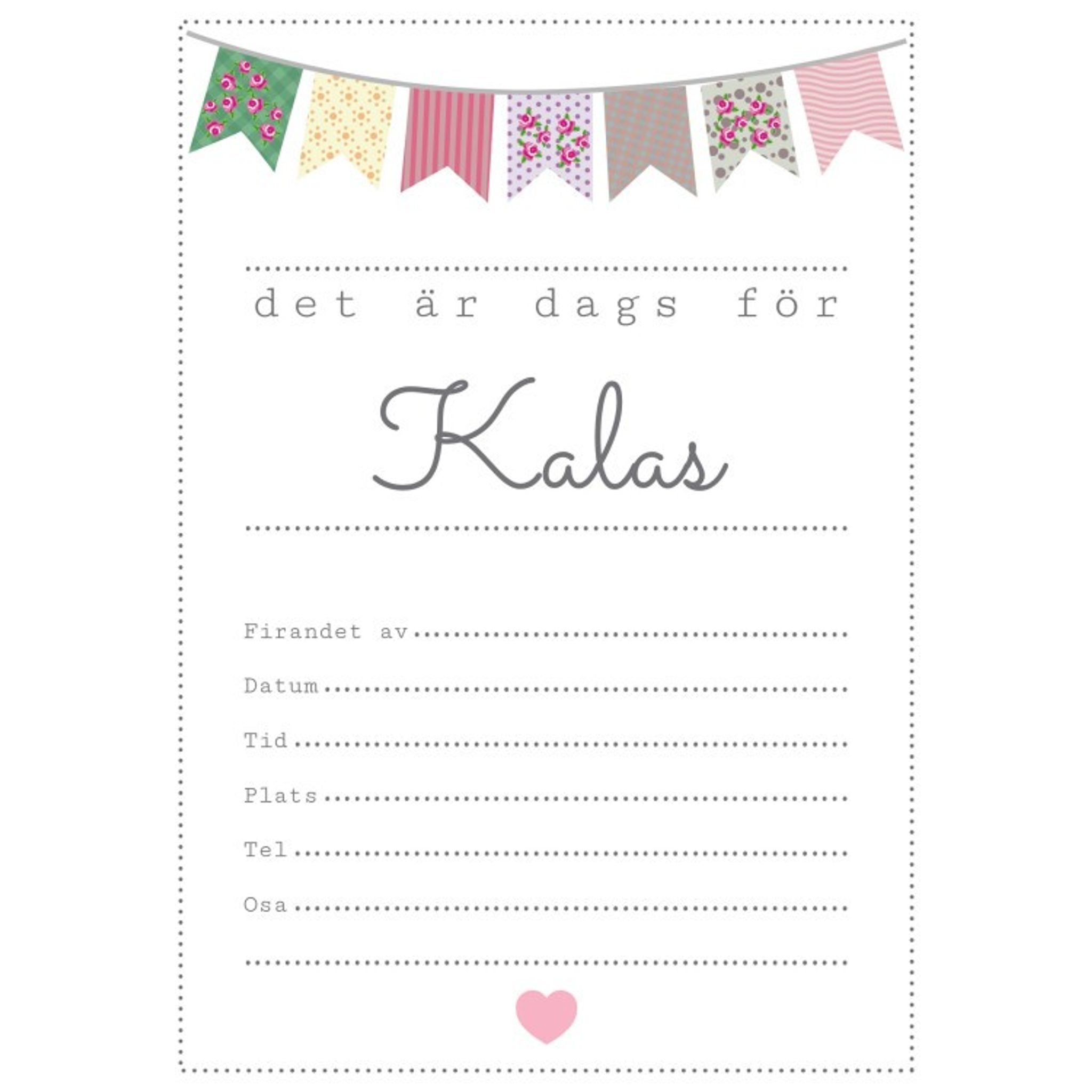 6 st underbart fina inbjudningskort med flaggvimpel och mycket fin baksida med rosor. Inbjudningskorten är av kraftig kvalitet och kuvert ingår. Bjud in till alla typer av kalas och fest med dessa kort