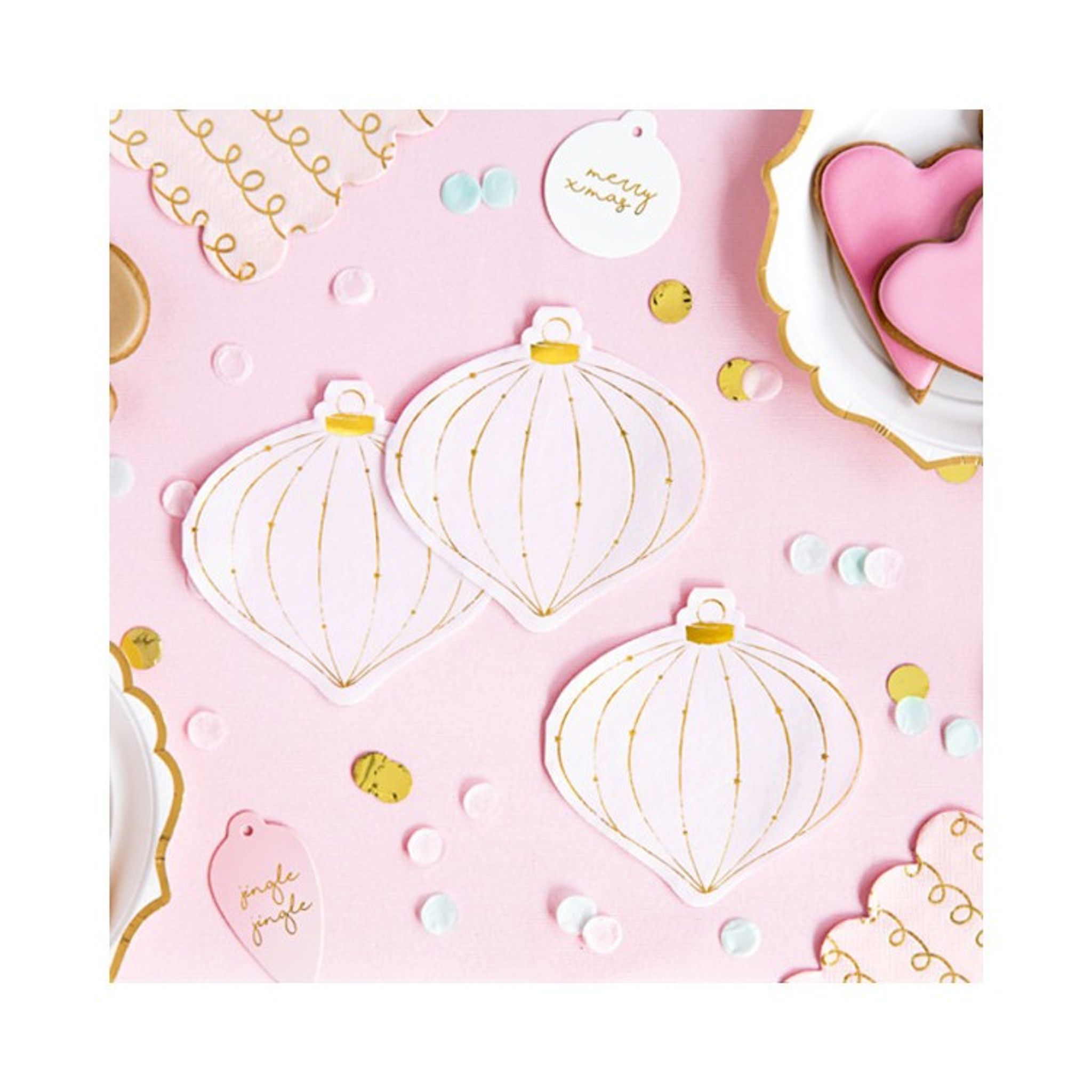 Mycket söta julservetter som är formade som en julkula. Servetterna går i en härlig ljusrosa nyans och har detaljer i guld. Perfekt att använda vid julens alla festligheter och passar utmärkt vid dukningen av julbordet!
