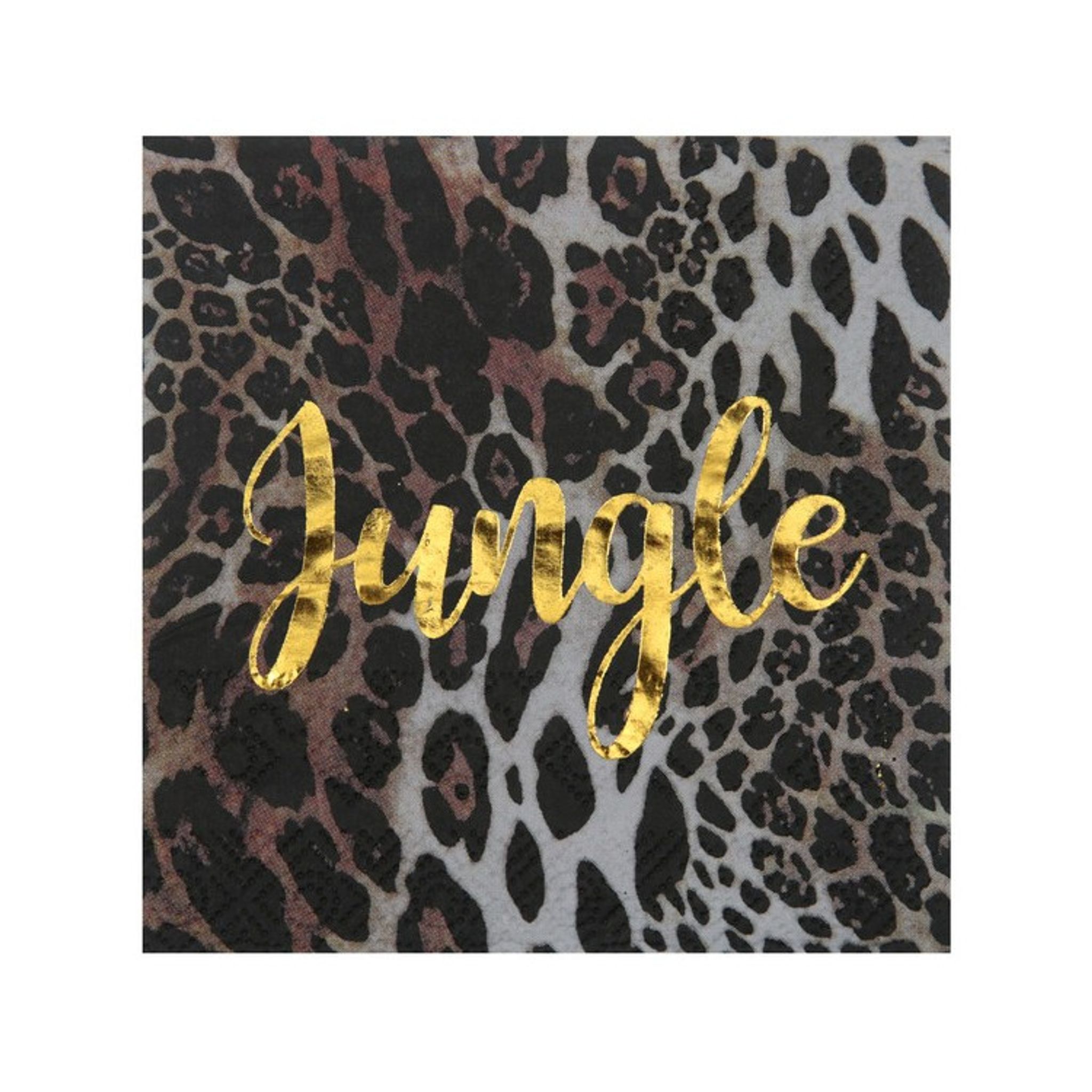 Servetterna har leopardmönster och guldfolierad text Jungle