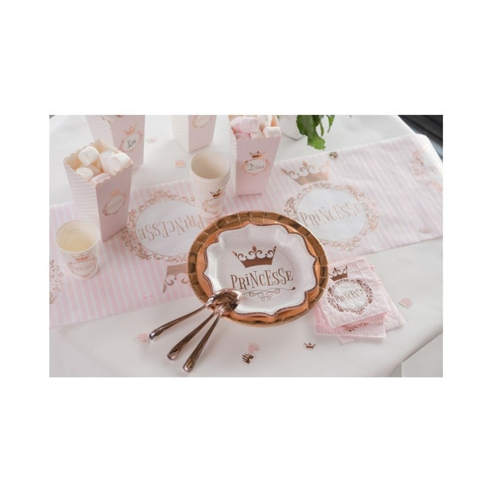 Kaffeservetter i rosa, vitt och rosé med texten Princesse. Perfekt att lägga ut vid dukningen på t.ex dopet eller namngivelsen när den lilla prinsessan ska få sitt namn. Dessa små servetter är även perfekta att använda på prinsesskalaset när tårtan ska serveras.