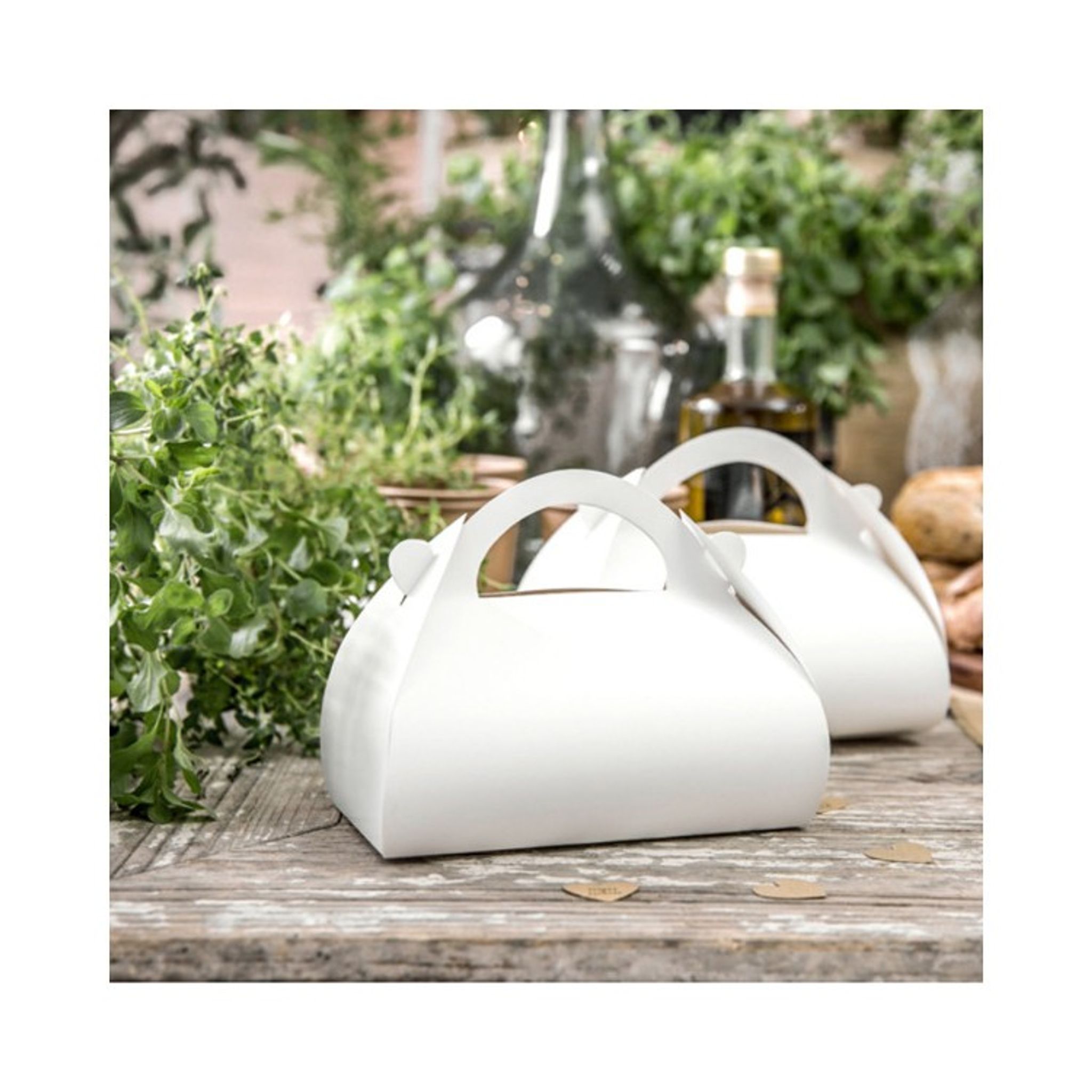 Har du bjudit på för mycket kakor och tårta på festen och ingen orkar äta upp de sista bitarna? Då är dessa praktiska kakboxar perfekta att skicka med gästerna tårta hem efter att festen är slut. Kakboxarna är helt vita och är mycket praktiska för alla typer av godsaker. Varför inte fylla dem med barnens favoritgodis och lite pyssel och dela ut till de mindre gästerna på bröllopet?