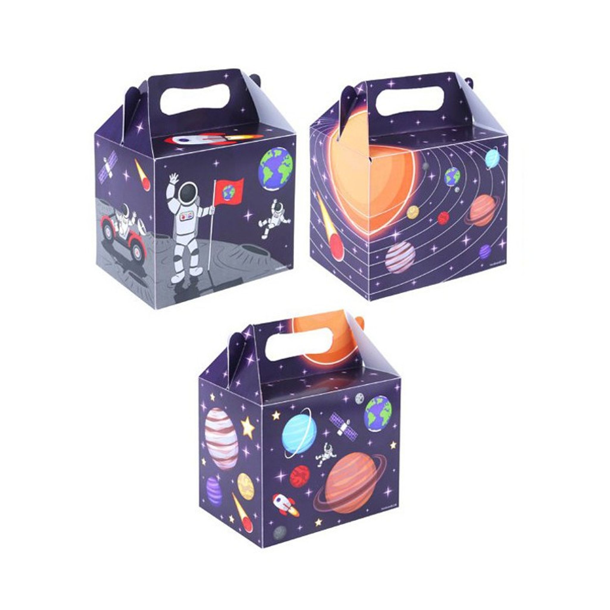 Godisboxar för barnens överraskningar på barnkalaset. Motiv: Rymd. Priset avser 12 st boxar och kommer i mixade motiv. Storlek: 14 x 9,5 x 12 cm