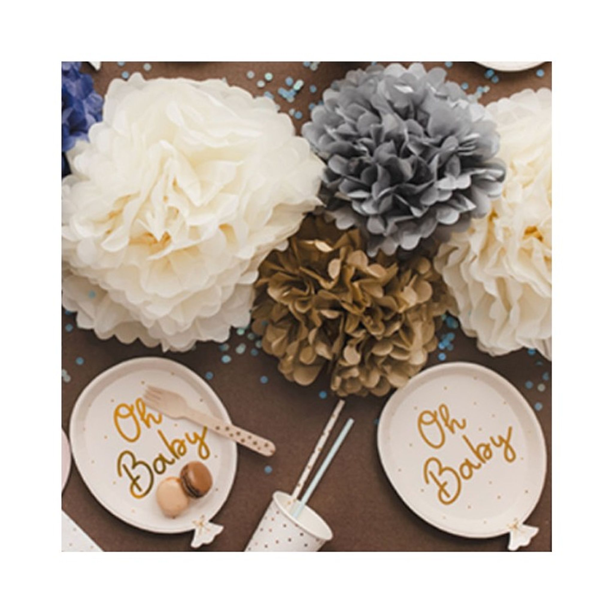 Duka upp för en överraskande tillställning i dova toner. Vad passar bättre än att sätta guldkant på din närmsta väns babyshower? Kitet är avsett för 12 personer, vilket gör det perfekt till babyshowern där flertalet vänner och familjemedlemmar är bjudna.