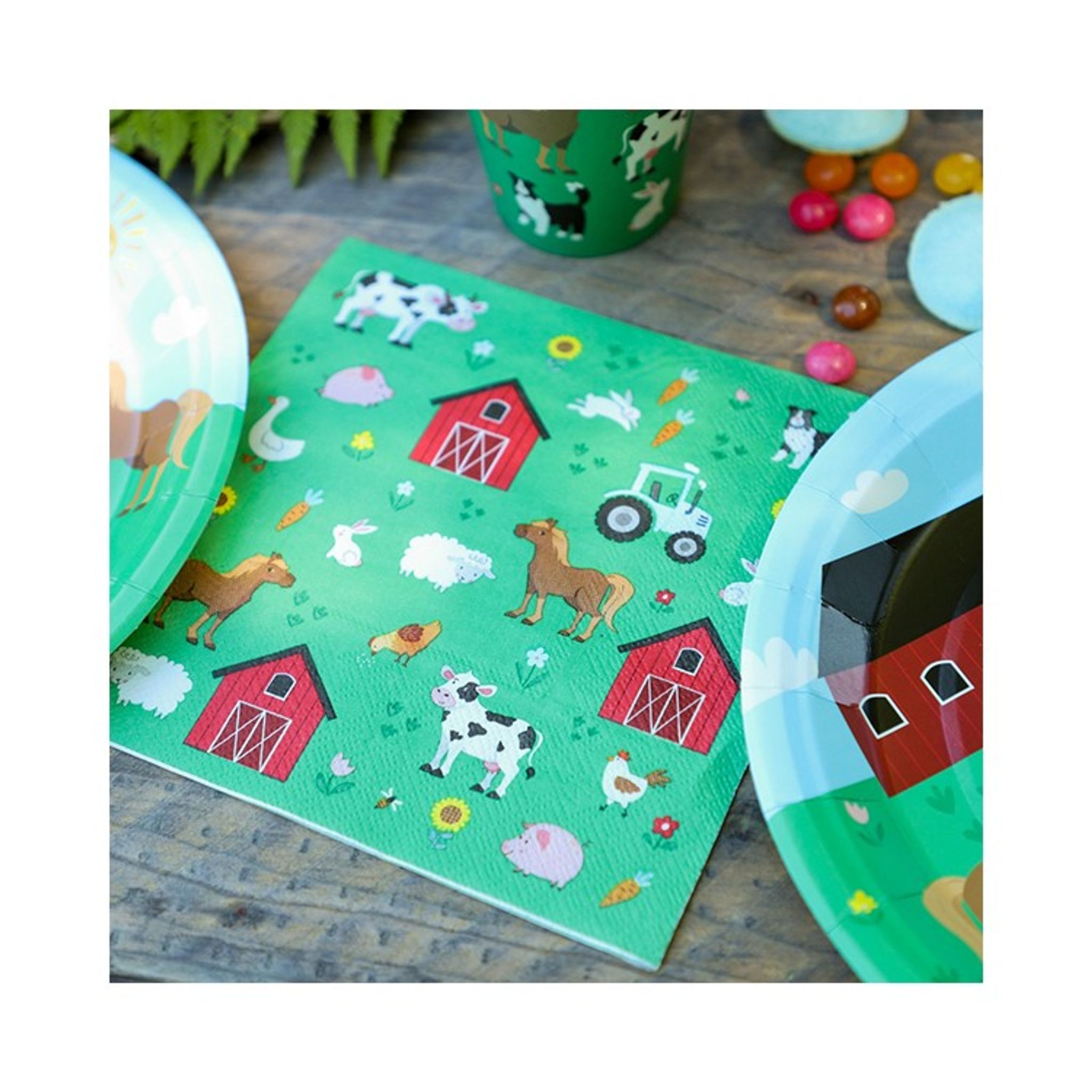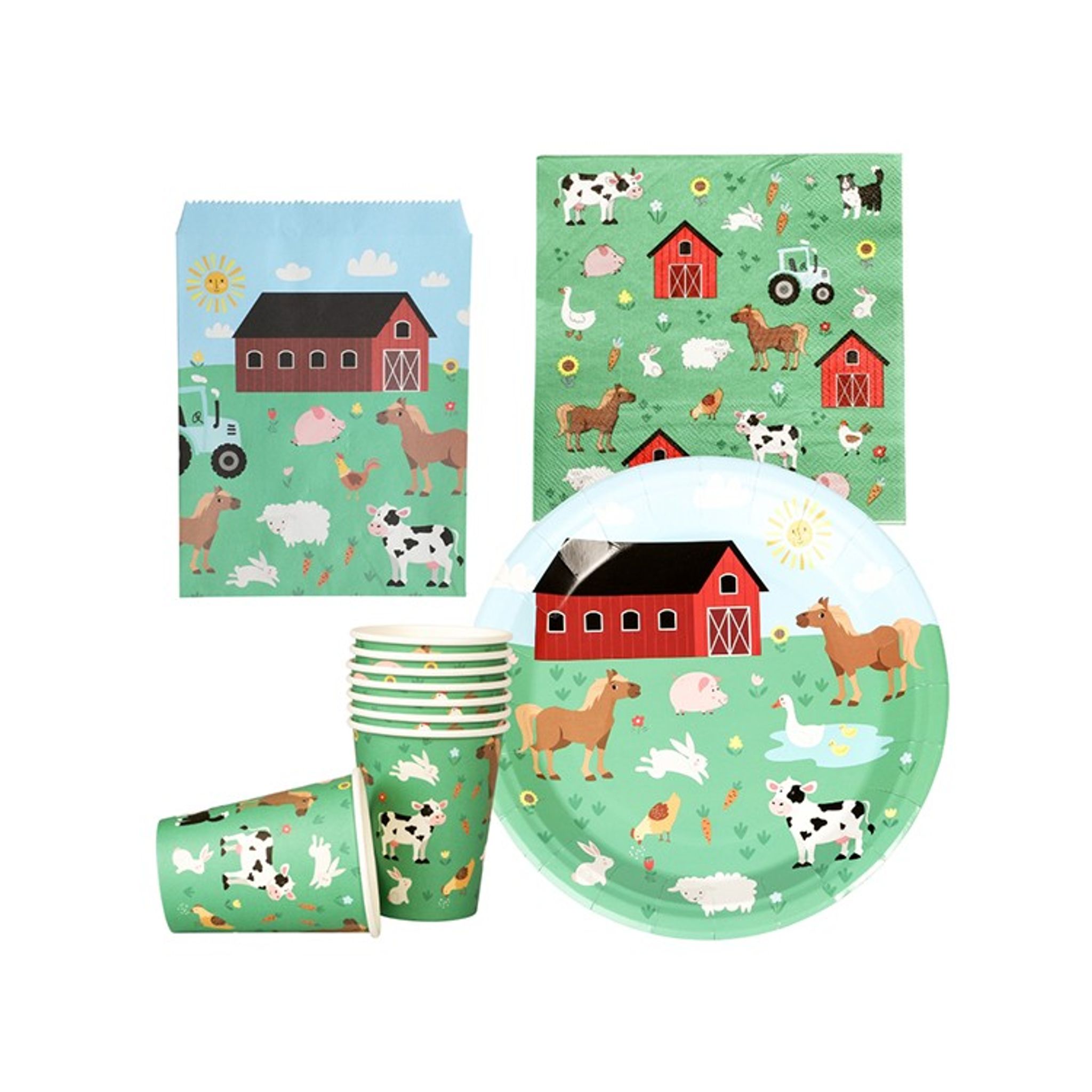 Det perfekta kalaset för den lilla bondgårdsintresserade. Här är ett färdigt kalaspaket med allt du kan behöva inför ett kalas. Alla tema artiklar har olika bondgårdsmotiv. Det finns både produkter till dukning men även ballonger till pynt och fina godispåsar. Paketet innehåller produkter för 8 personer