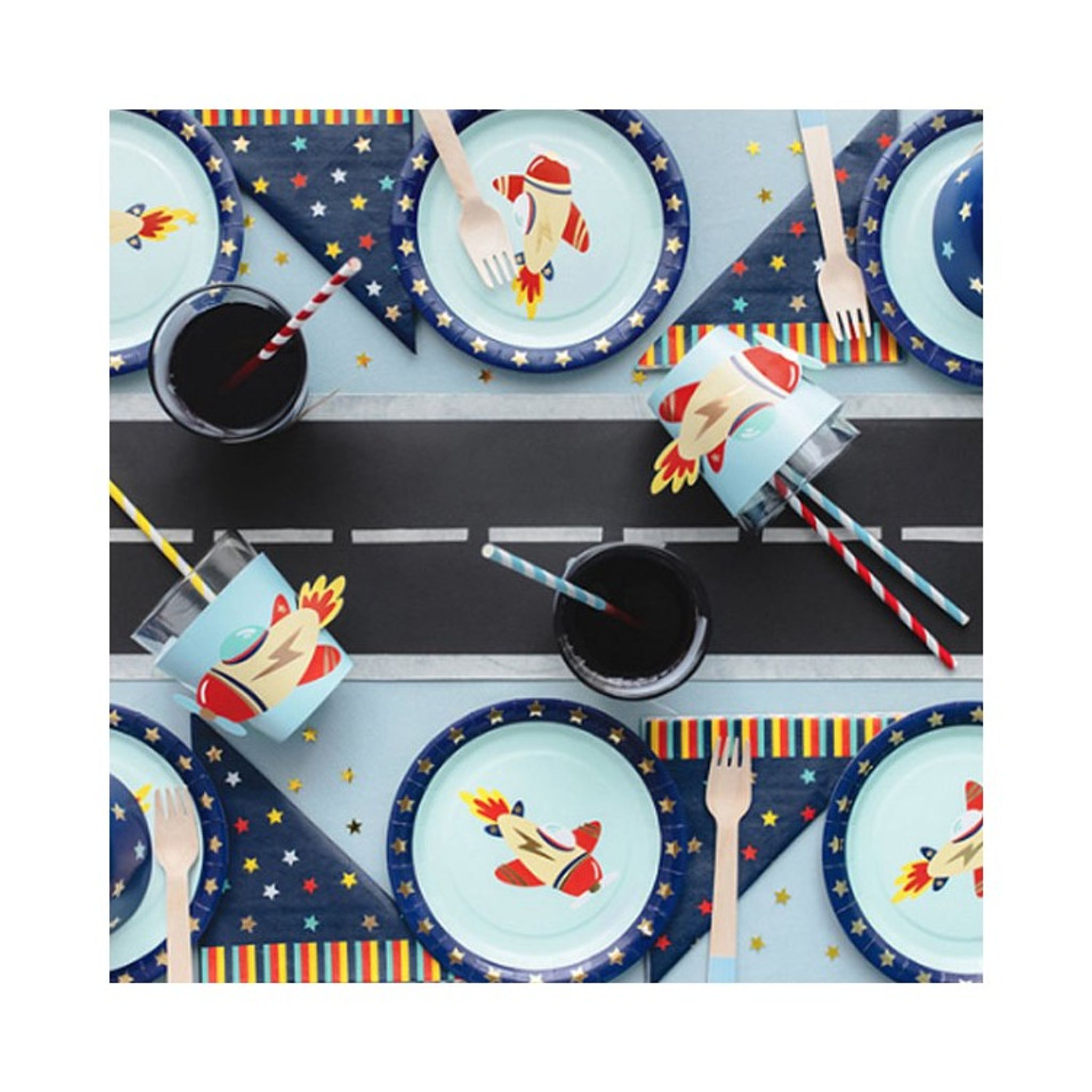 Duka upp till ett spännande flygplans kalas för alla vänner. Här har vi hjälpt dig att plocka ihop ett fint matchande kalaspaket för 6 personer. Kombinera tillsammans med andra dekorationer och tillbehör i samma tema/färg för ett kalas med det lilla extra.