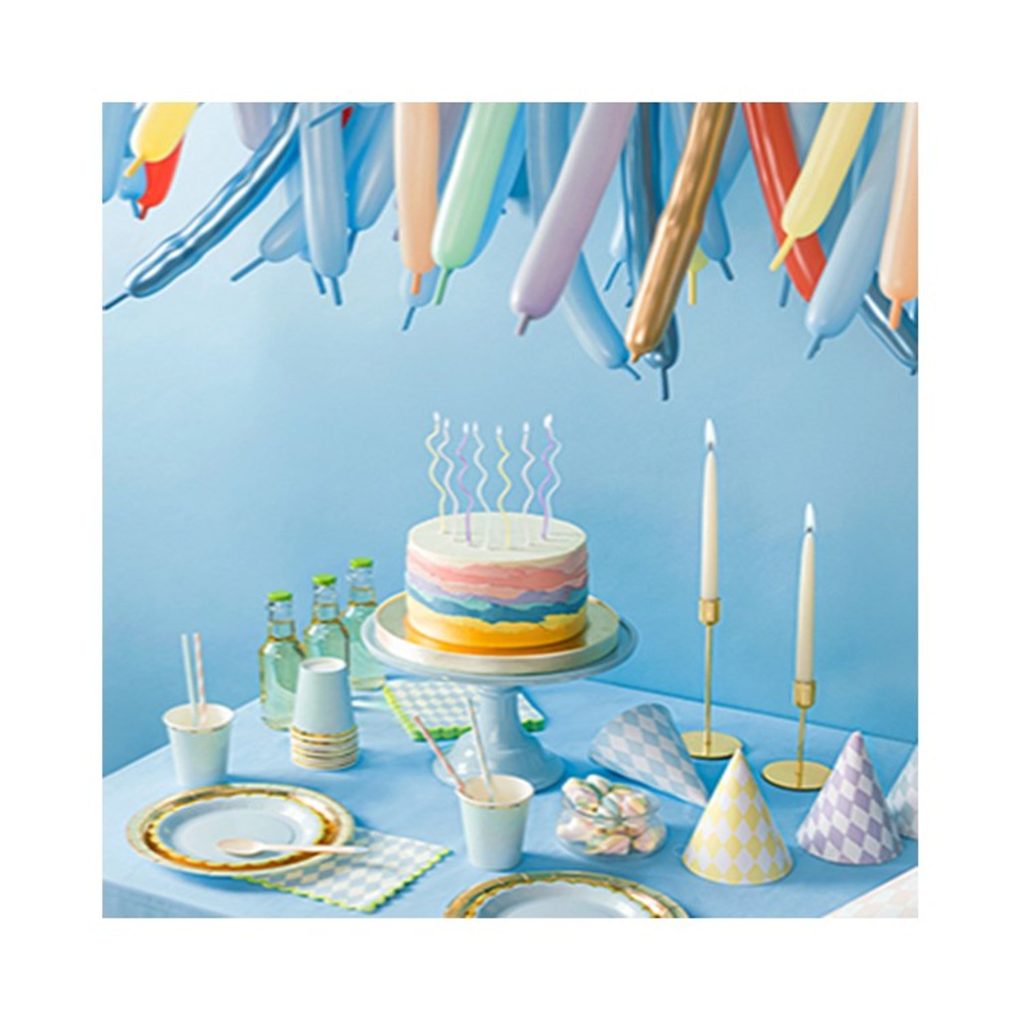 Är det dax för kalas? Med detta kalaspaket i temat ljusblå kan du få till ett riktigt fin kalas för alla åldrar. Paketet innehåller produkter för 6 personer. Mot kalasets slut är det även fritt fram att skapa era egna djur och figurer med ballongerna.