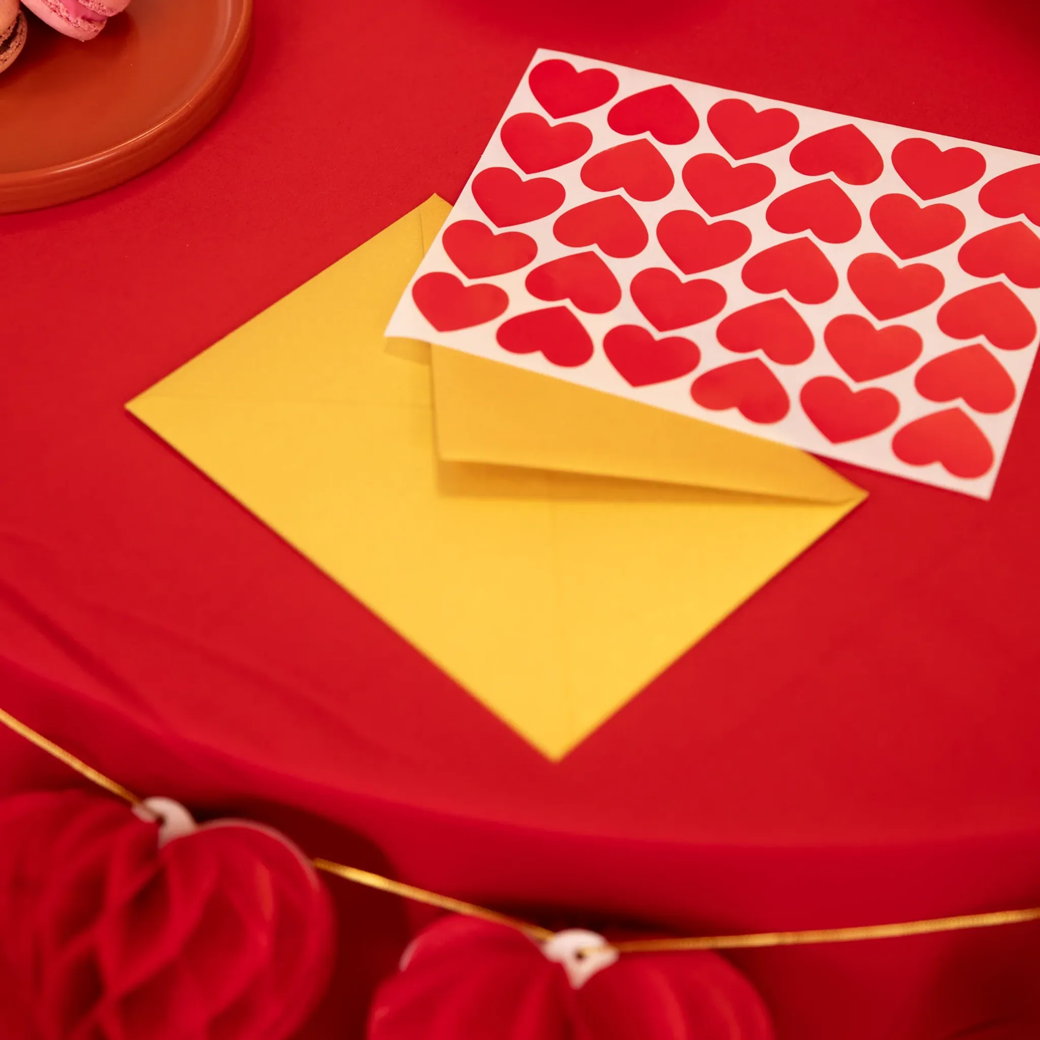 Självhäftande klistermärken i form av röda hjärtan, perfekta för att dekorera kort, presentpåsar, inbjudningar eller pyssel. De ger en fin och kärleksfull detalj till alla festliga tillfällen som kalas, dop, Alla hjärtans dag eller andra högtider.