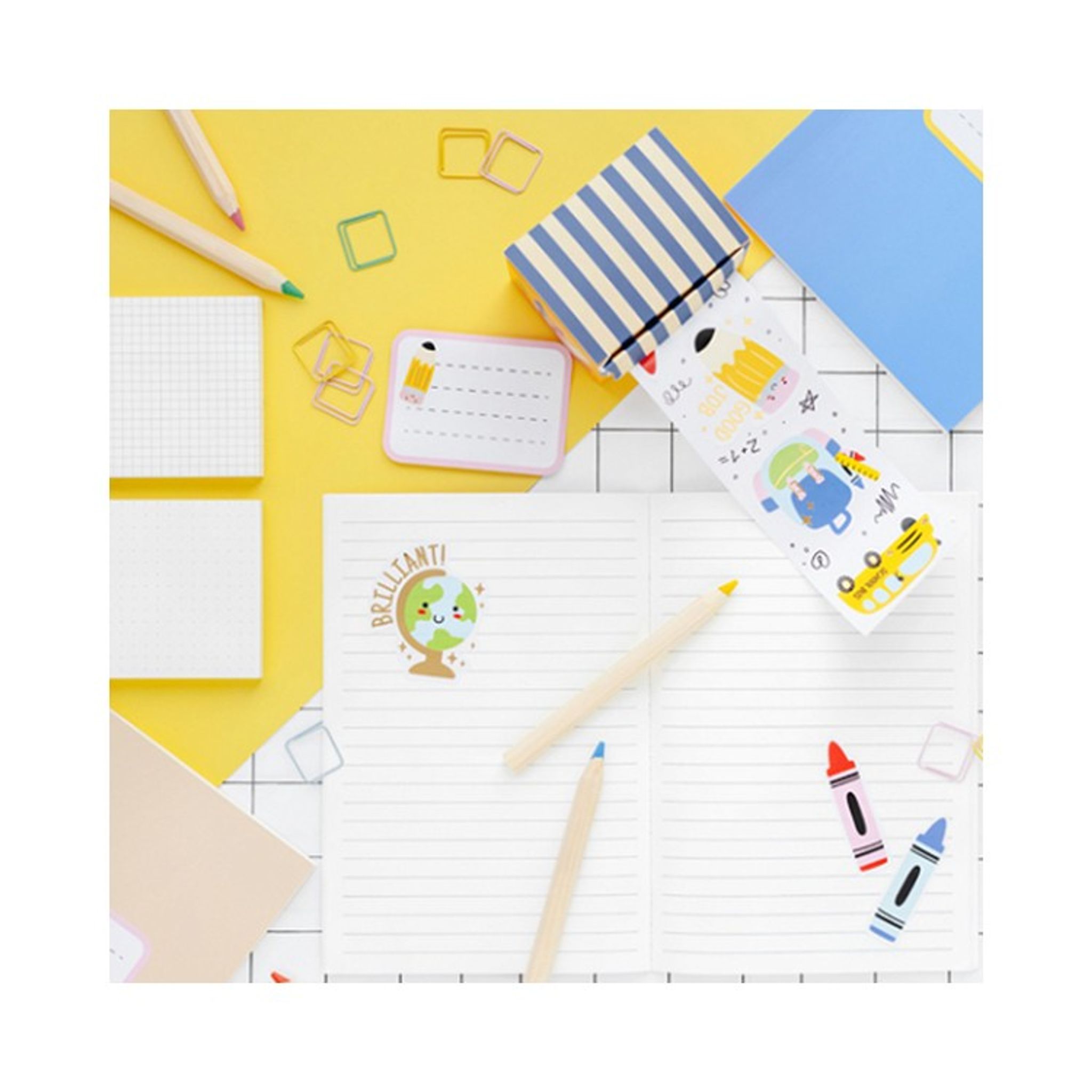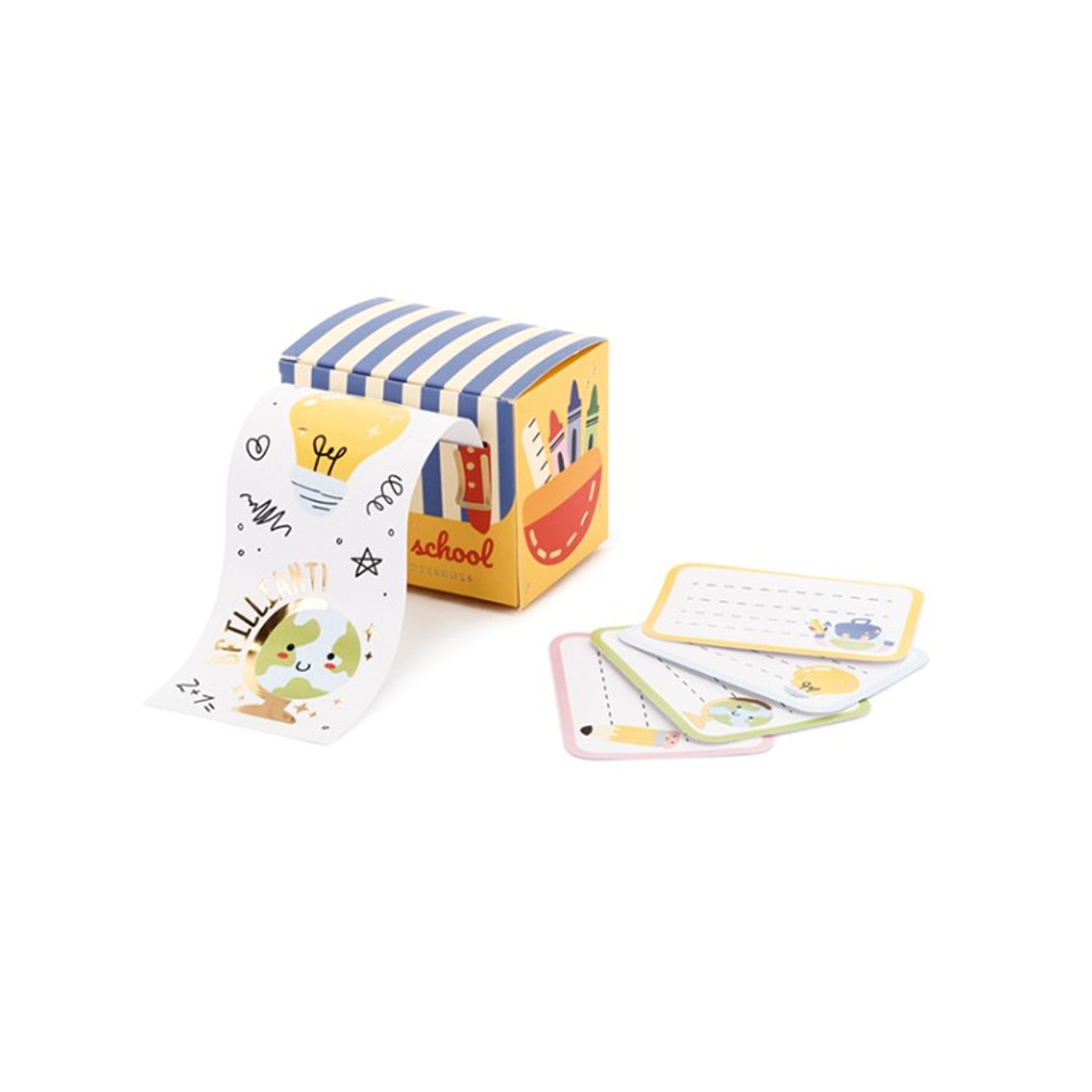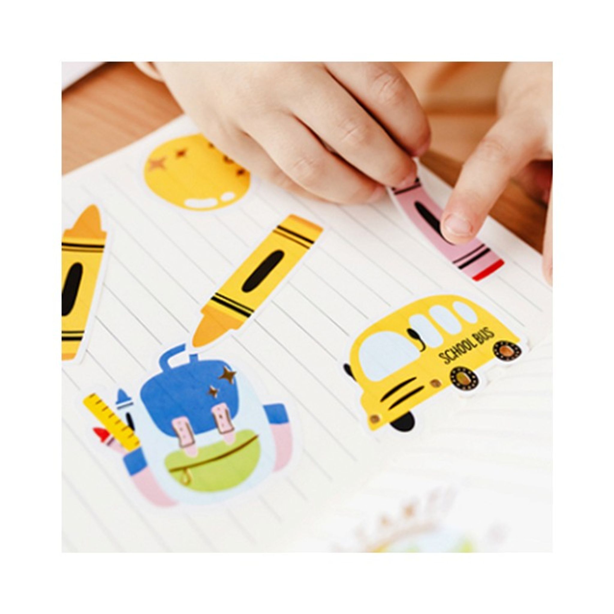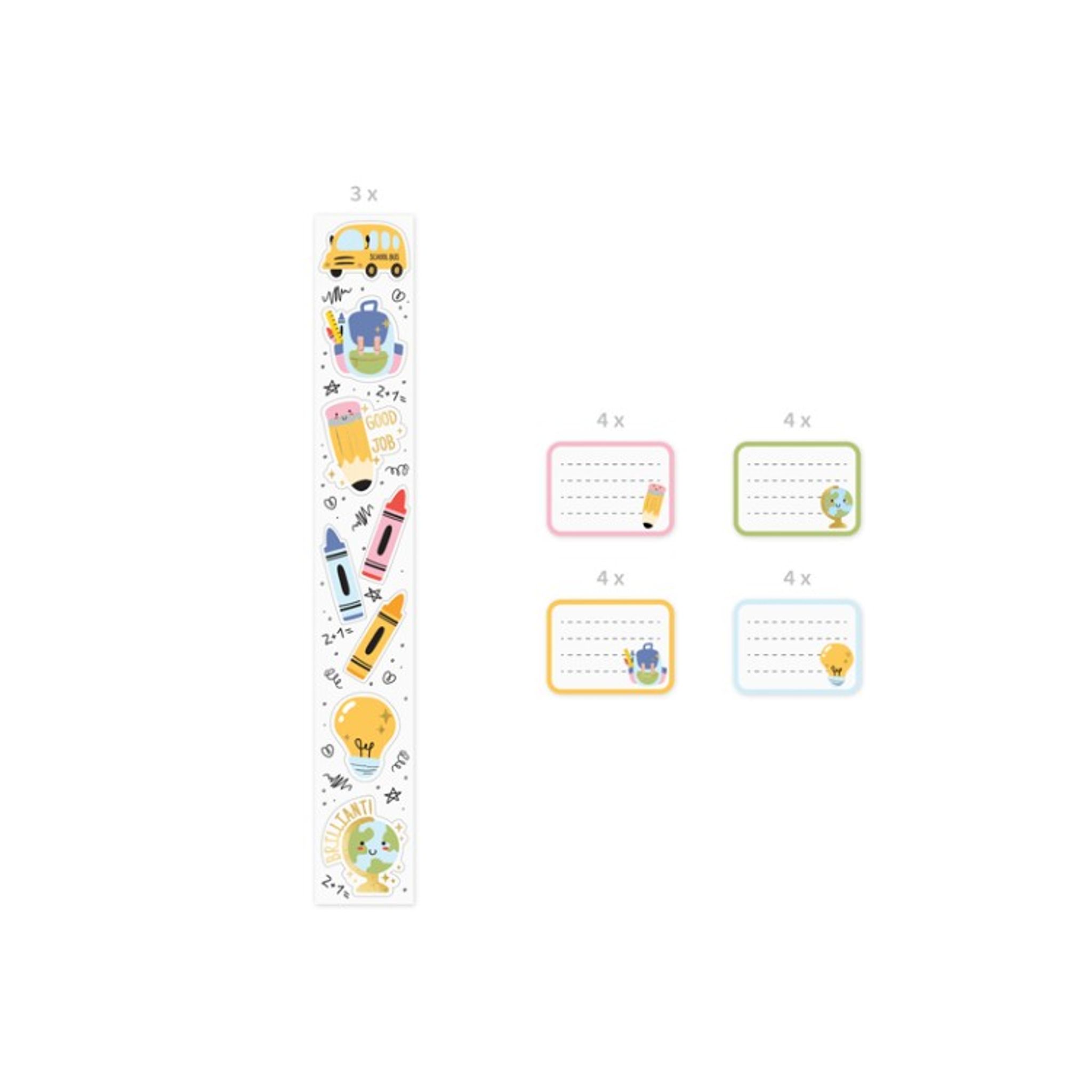 Klistermärken till skolstarten i en mix av färger och former. Förpackningen innehåller 3 stycken remsor med olika klistermärken samt 16 notis klisterlappar. Se bild 2 för motiv, färg och antal.