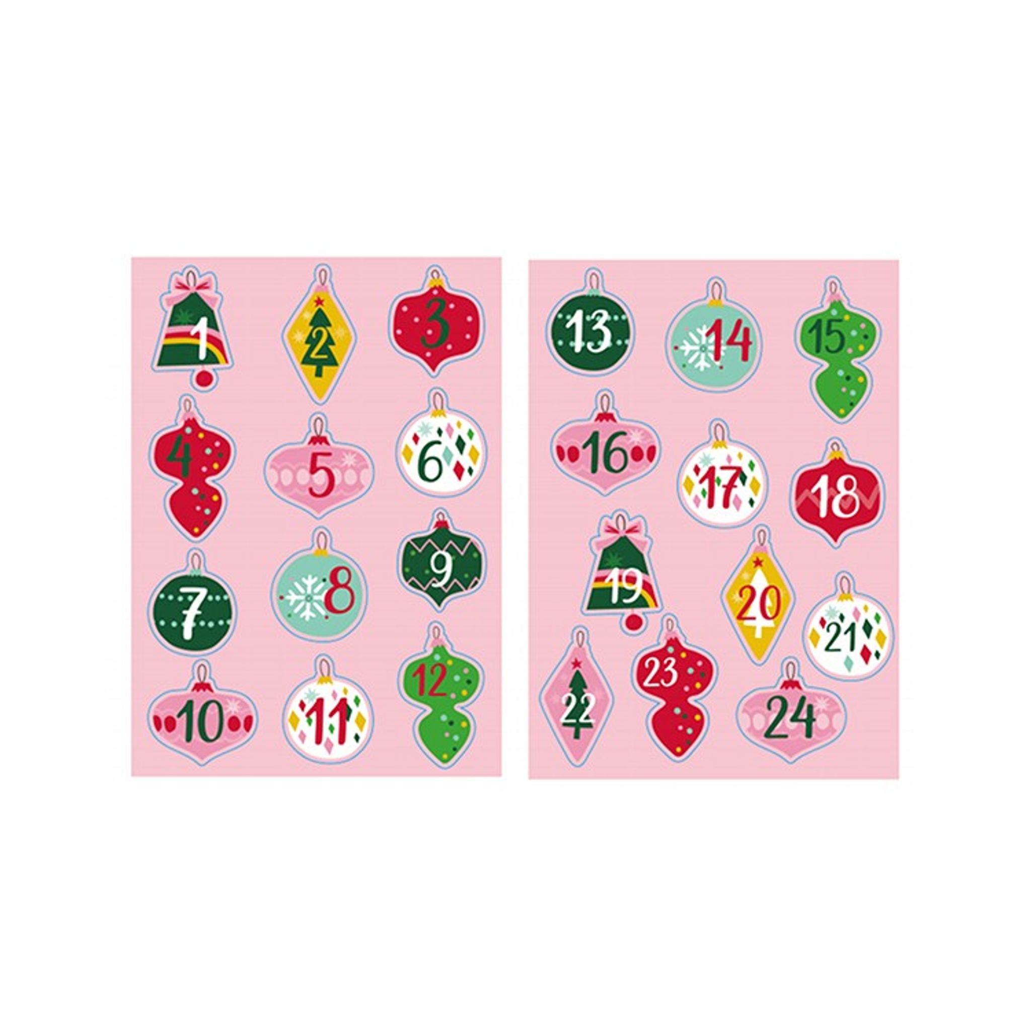 Färgglada klistermärken med siffrorna 1-24 till att göra din alldeles egna adventskalender/paketkalender.