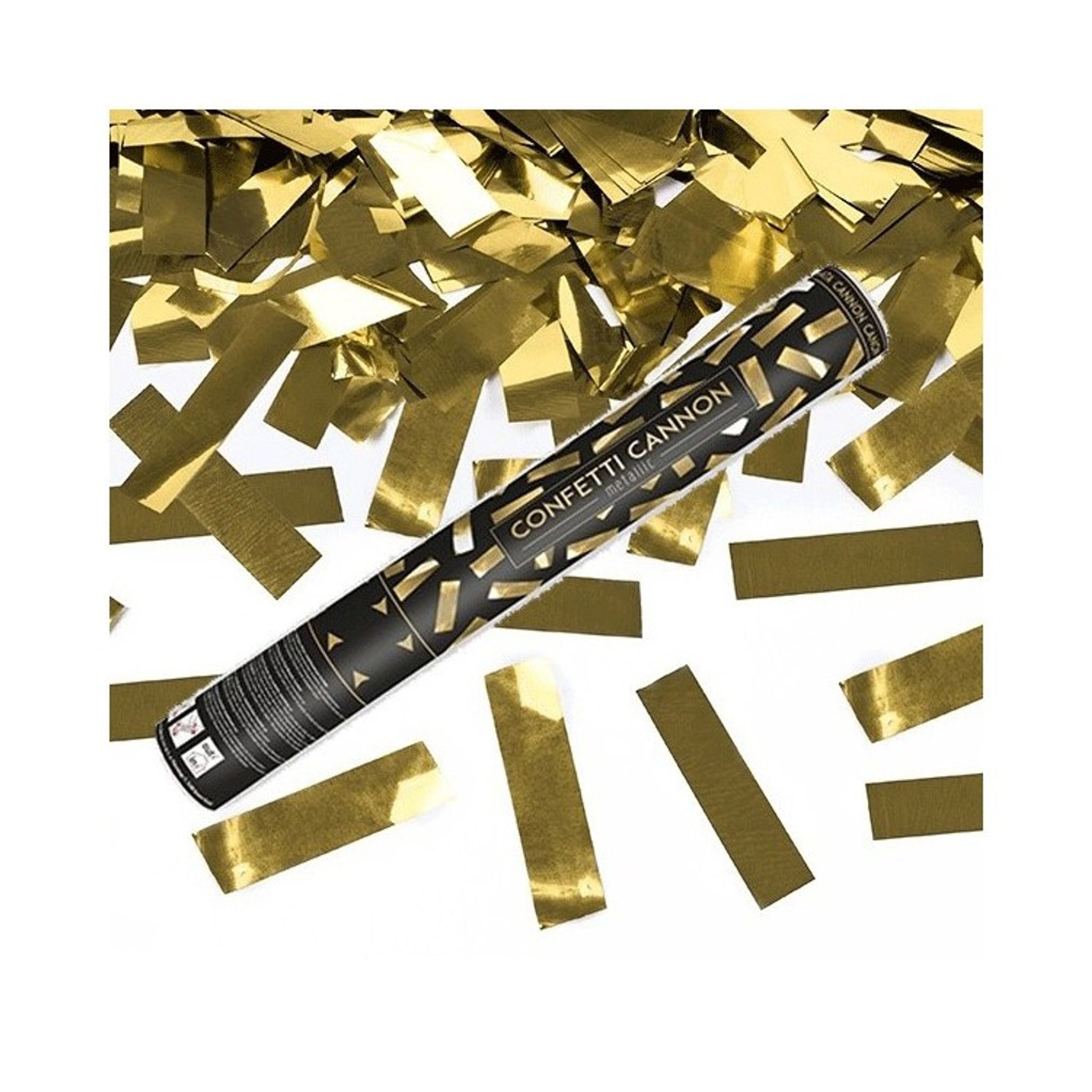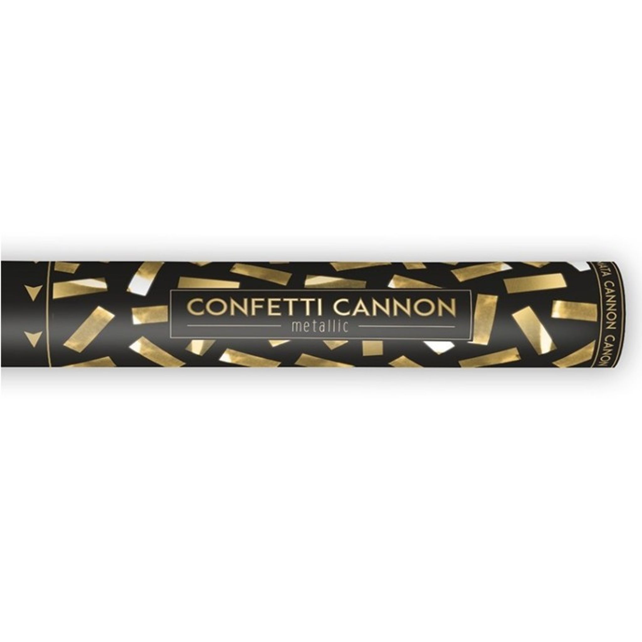 Sprakande konfettikanon som innehåller guldig konfetti, ett måste till den stora festen! Kanonen skjuter ut konfetti i upp till 5-8meter med hjälp av komprimerad luft och kan användas både inne och ute. Observera att kanonen smäller vid avskjutning. Rörets storlek: H:ca 40 cm, B:5cm i diametern.