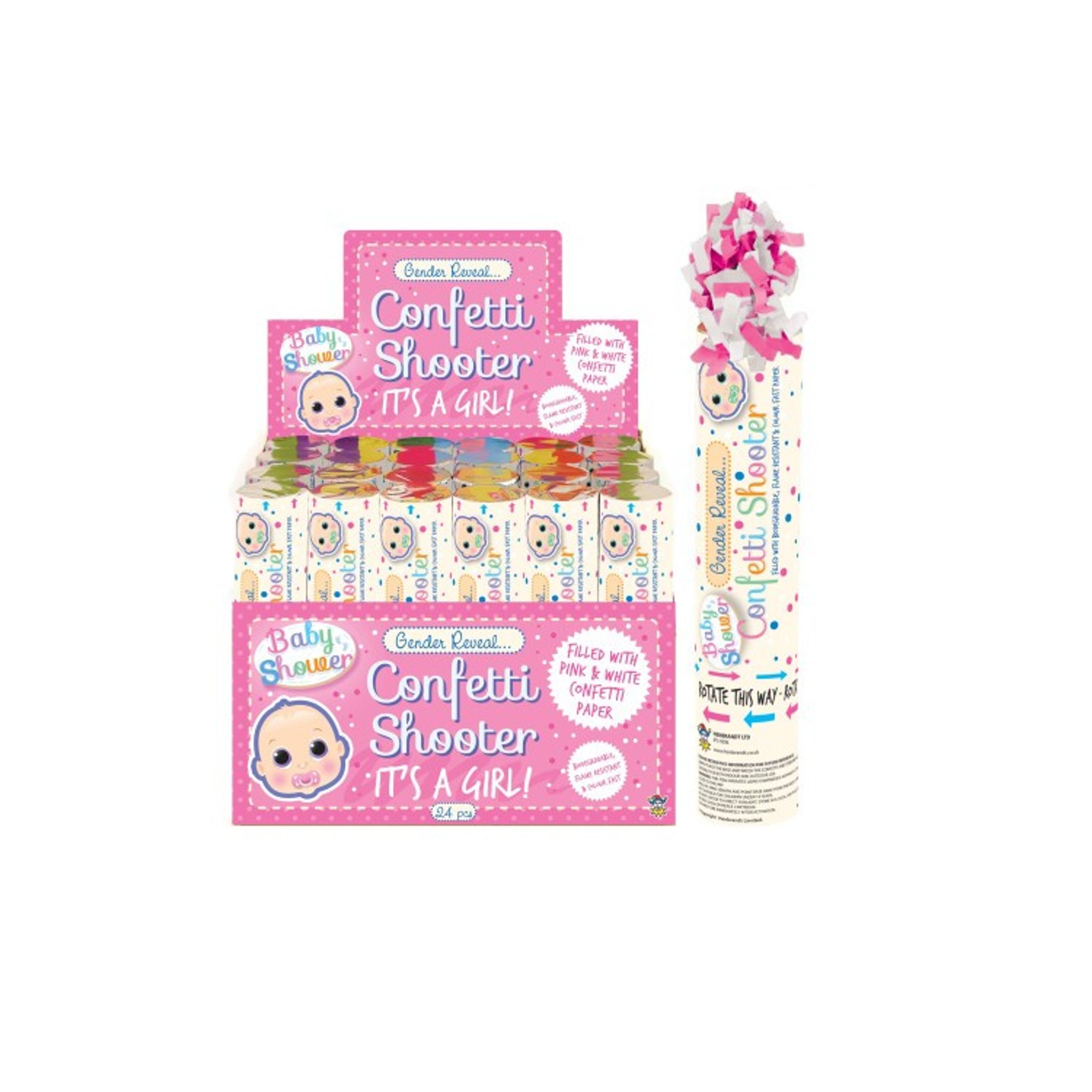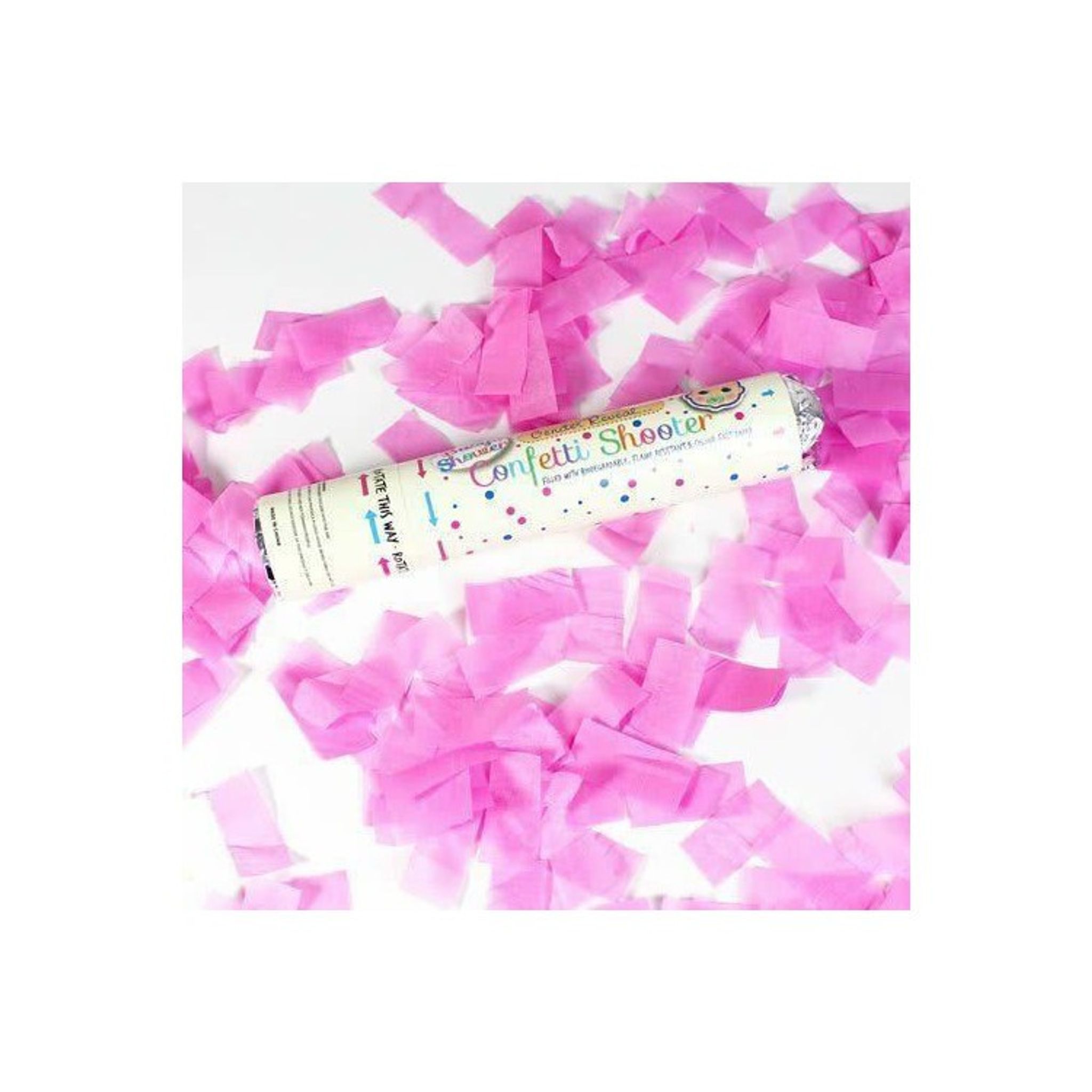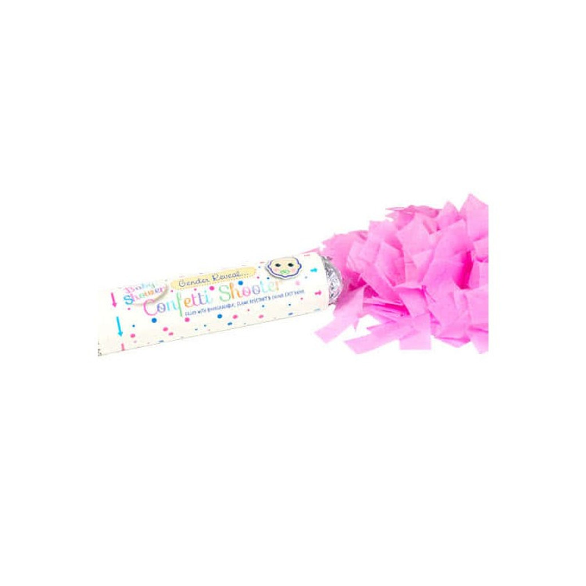 Ska ni avslöja det kommande barnets kön? Se till att göra det tillfället extra spännande för resten av familjen och vännerna genom att avfyra denna konfettikanon som är fylld med rosa konfetti.