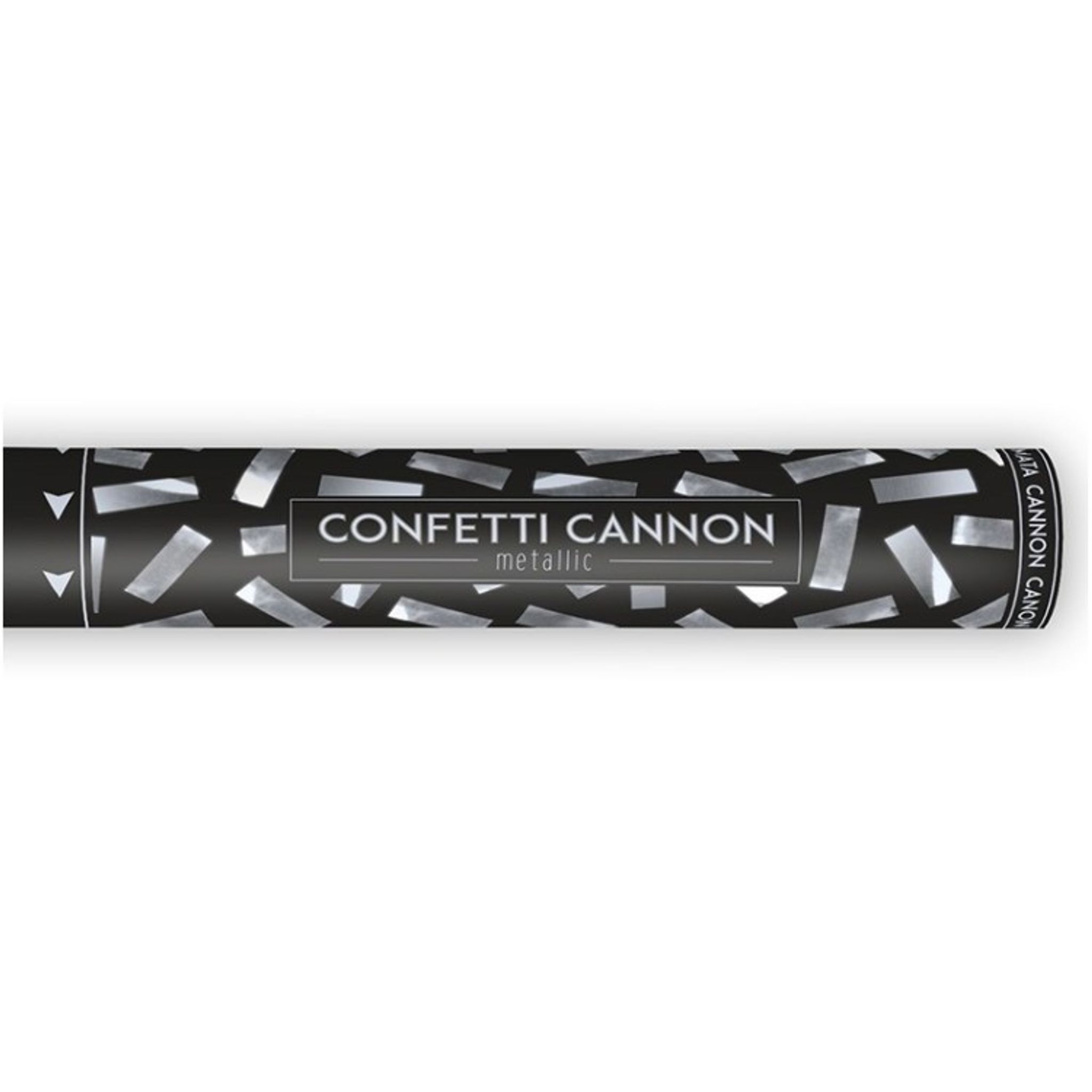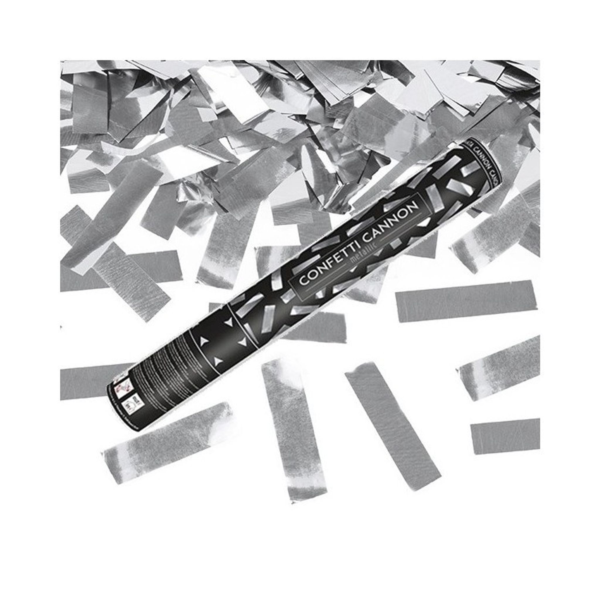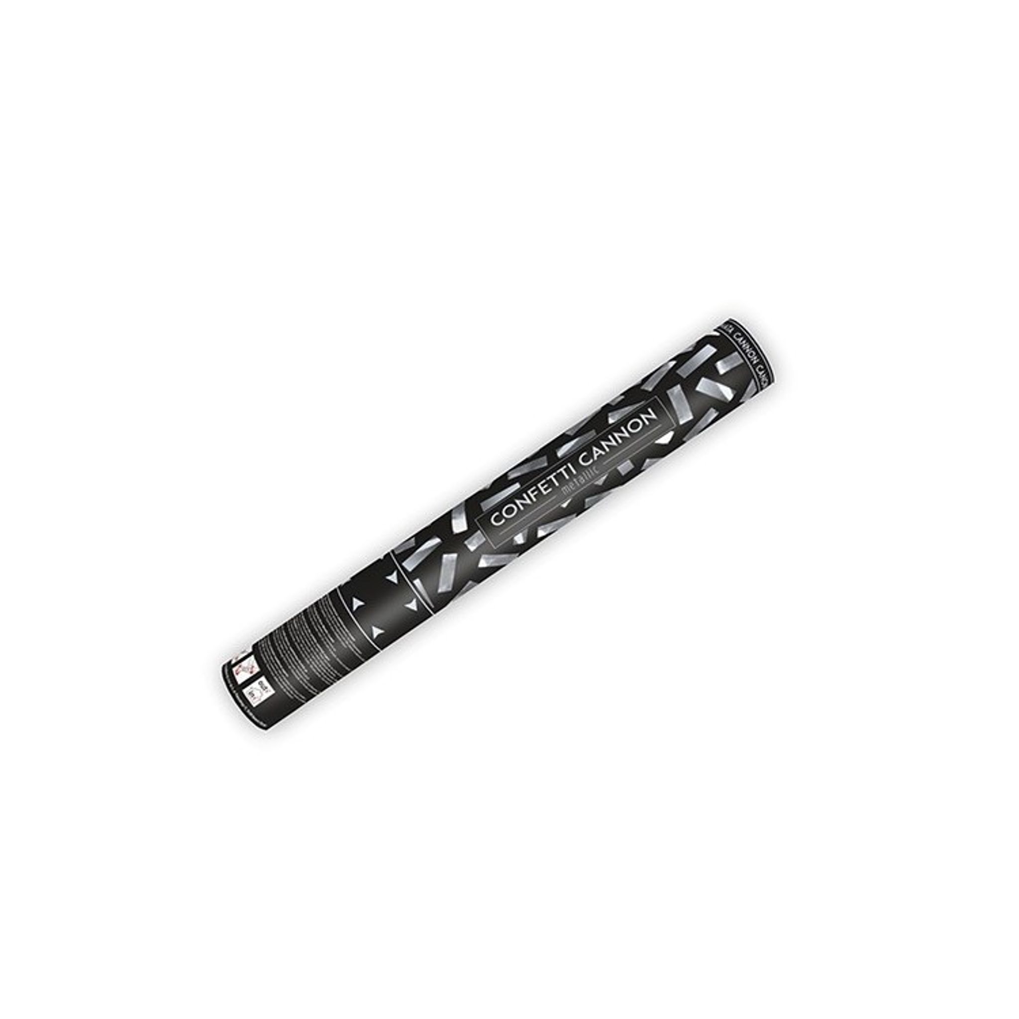 Sprakande konfettikanon som innehåller silvrig konfetti, ett måste till den stora festen! Kanonen skjuter ut konfetti i upp till 5-8 meter och kan användas både inne och ute. Observera att kanonen smäller vid avskjutning. Rörets storlek: H:ca 40 cm, B:5cm i diametern.