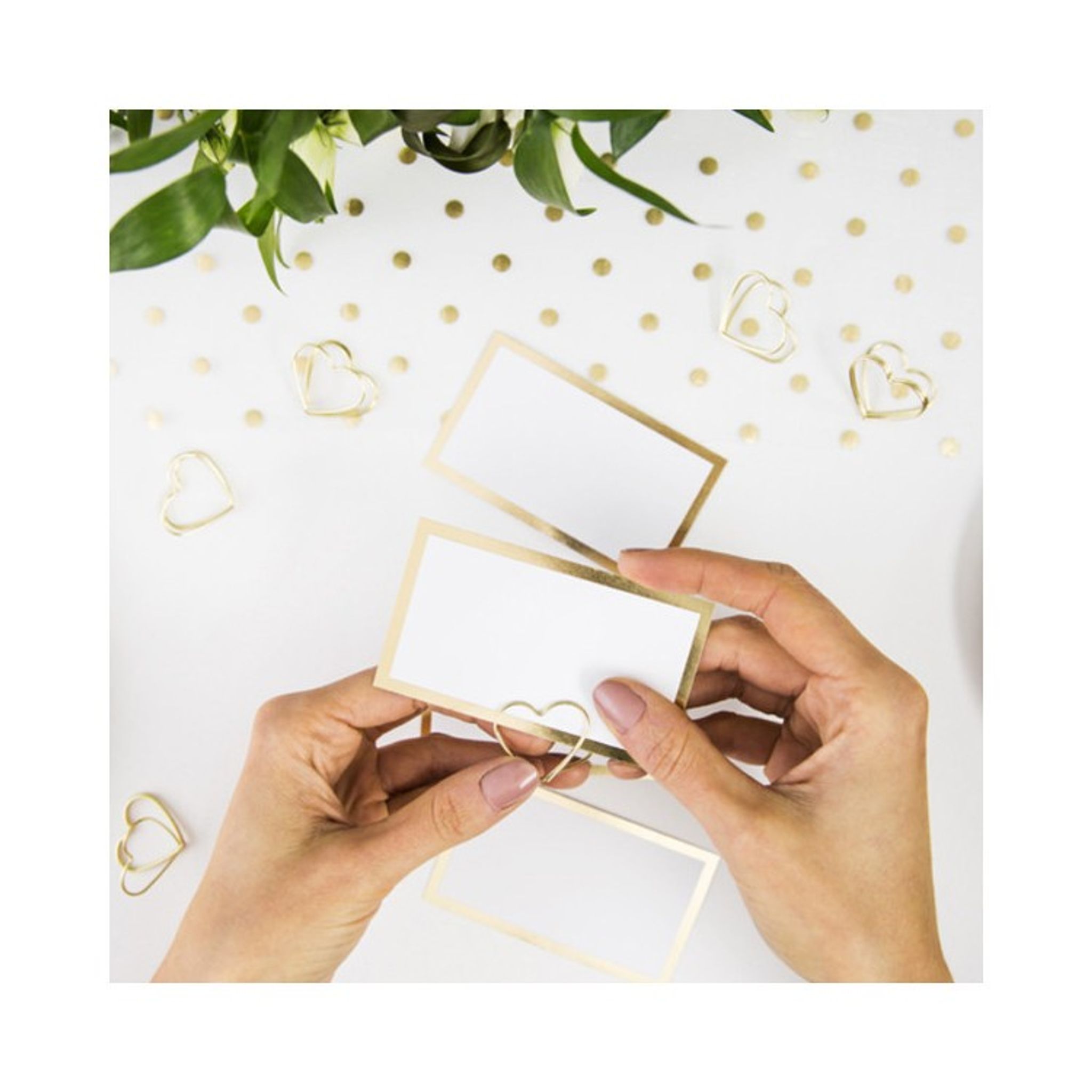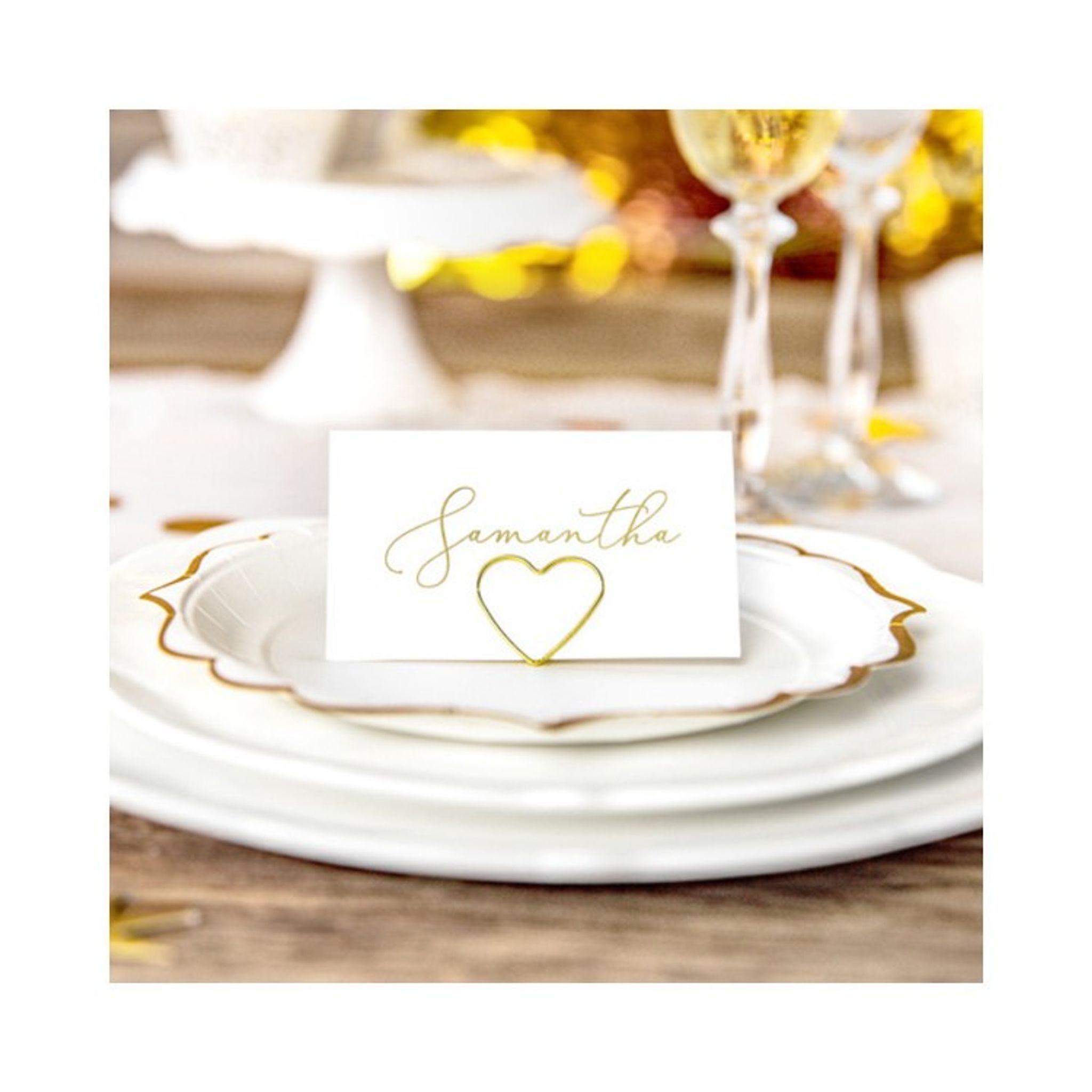 Söta små hjärtan i guld att sätta placeringskorten i för en snygg och exklusiv dukning. Använd korthållare för bröllop, dop och andra festliga tillfällen när du väljer att ha bordsplacering.