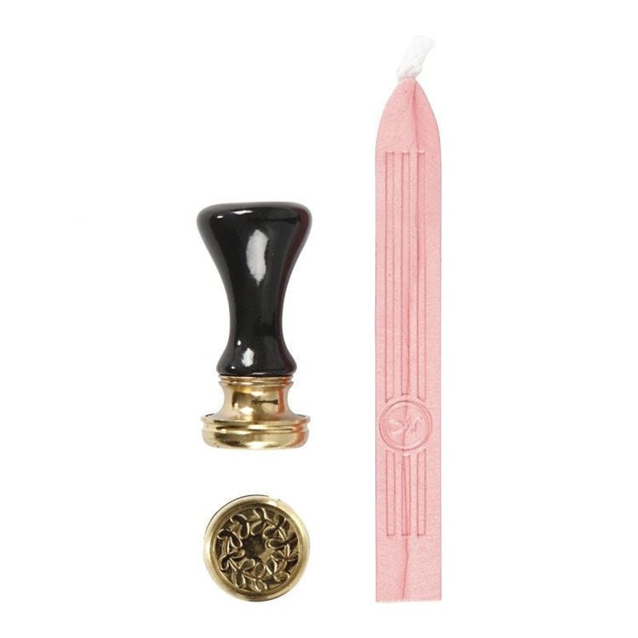 Startset med lack med veke, handtag samt sigill med motiv av lagerkrans. Lacken smälts/droppas på det stället du önskar att dekorera och tryck motivet i den varma lacken.