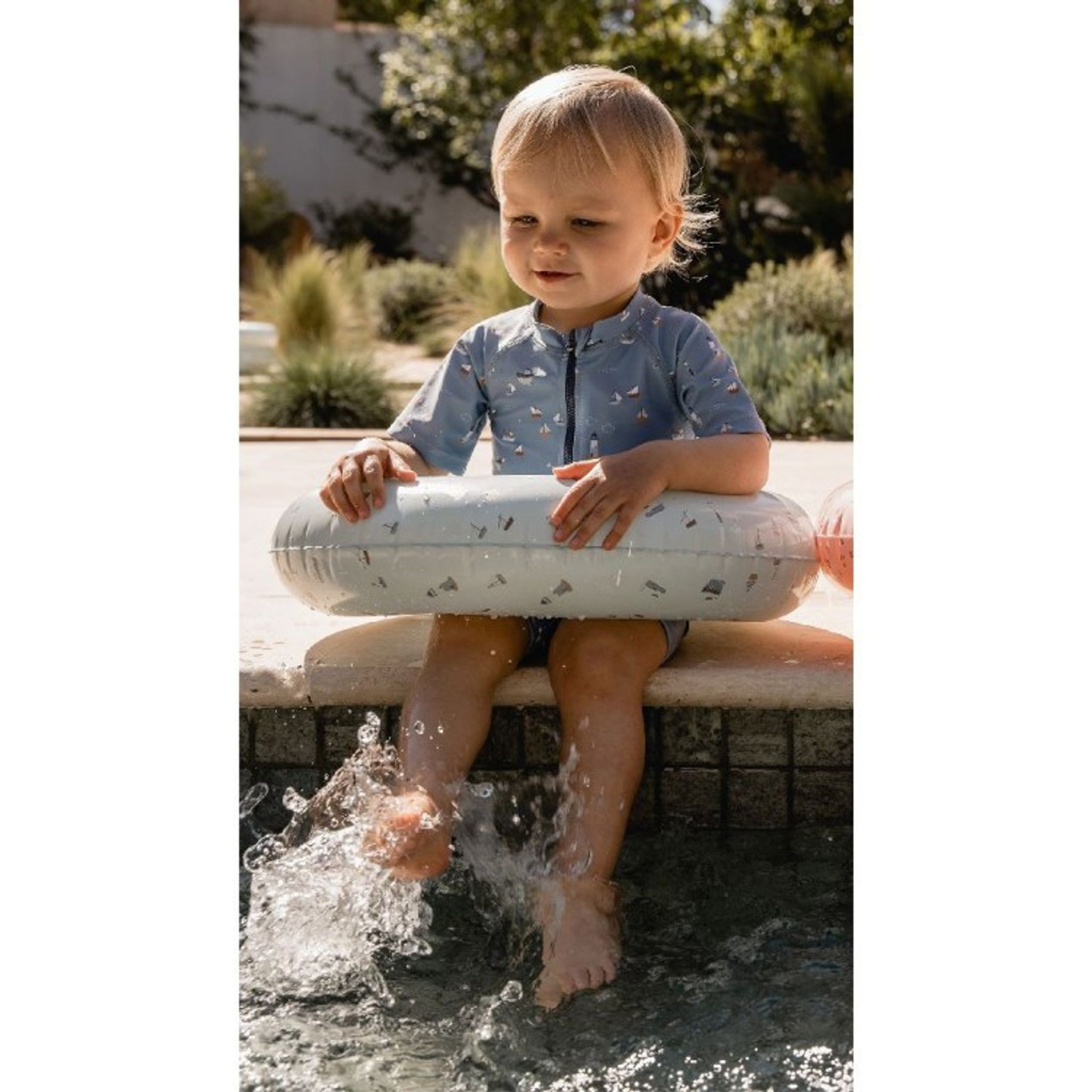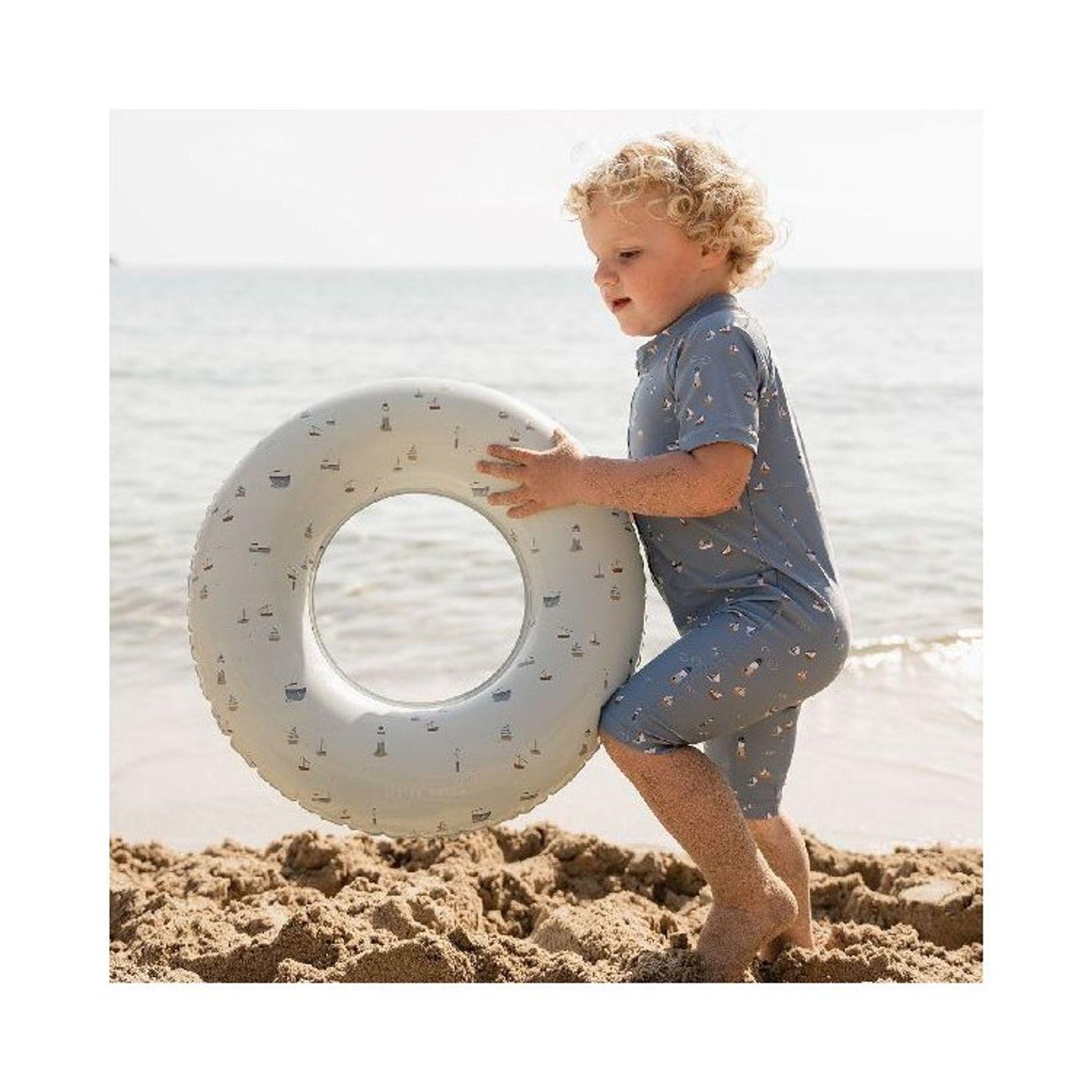 Den här söta badringen för barn är en perfekt badleksak både till poolen på hemmaplan, men också att ta med sig på solsemestern. Att flyta runt i vattnet är kanske extra roligt för barnen som är nyfikna på vattenlek, tillsammans med den här ljusblåa badringen med print av små båtar blir det extra härligt.