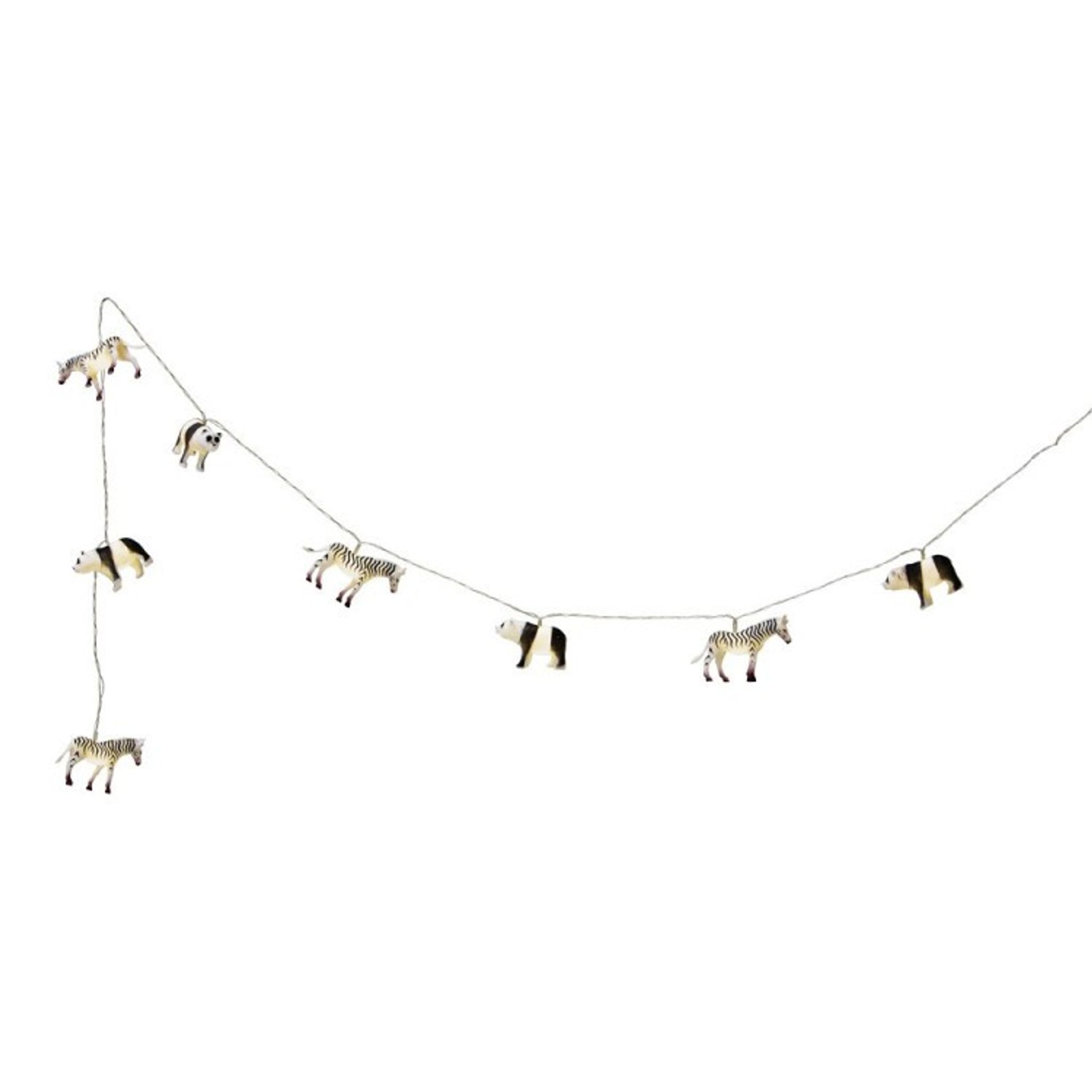 Underbar ljusslinga (LED-slinga) med pandor och zebror. Perfekt att hänga upp som dekoration på kalaset eller som en inredningsdetalj i barnrummet.