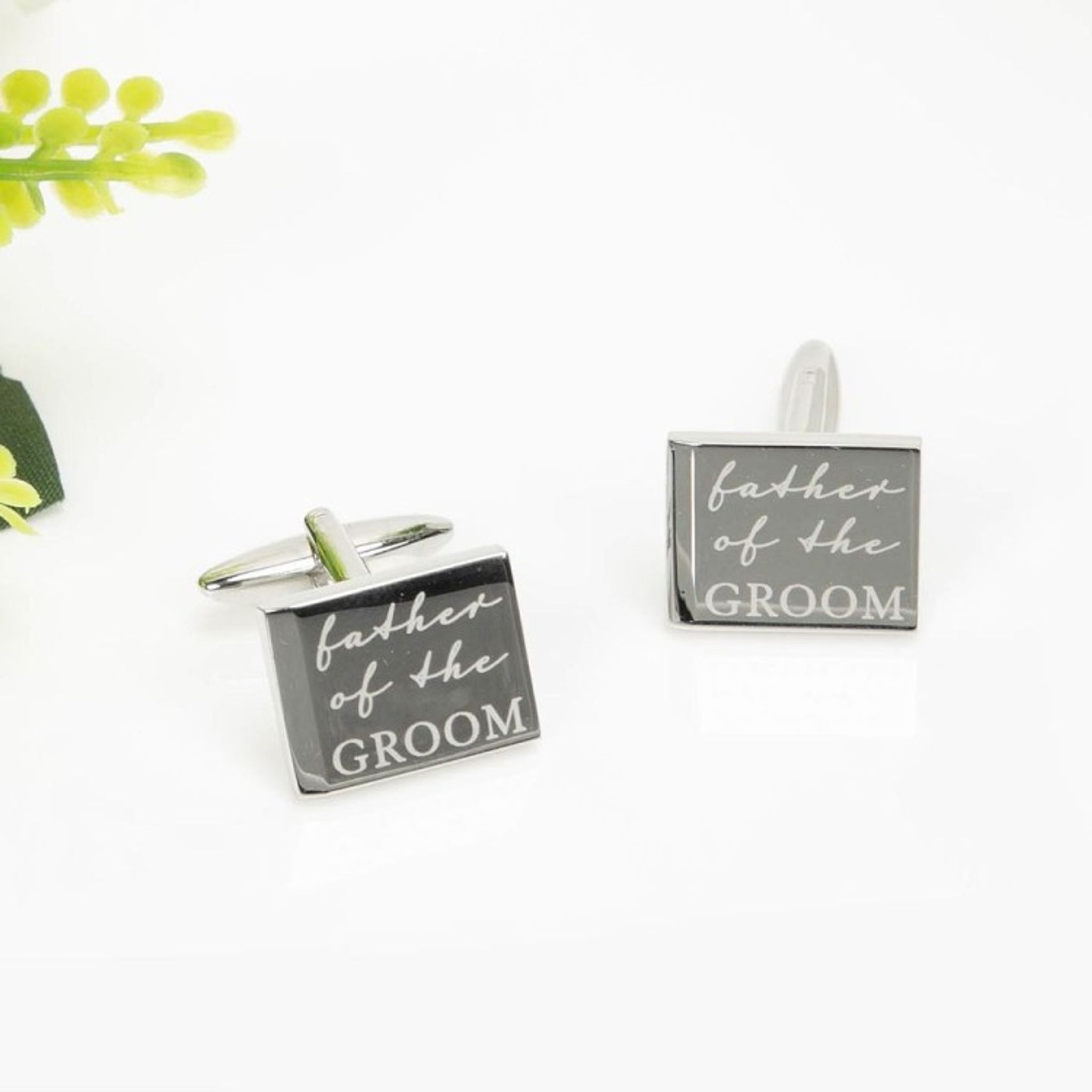 Låt brudgummens pappa få bli överraskad med dessa snygga och unika manschettknappar till er stora dag. Manschettknapparna kommer i fin liten presentask och blir verkligen en fin detalj på bröllopet. Manschettknapparna har texten "Father of the groom" och