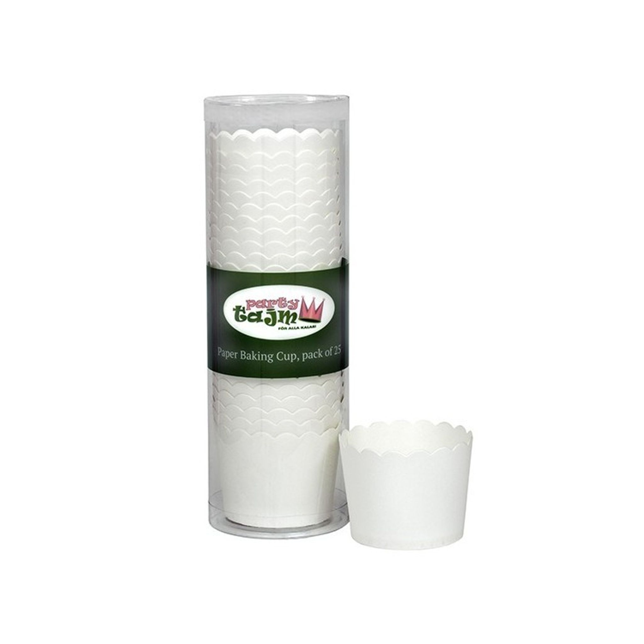 25 st mycket snygga muffinsformar i kraftig kvalitet. Muffinsformarna är vår egna design. Helt vita. Höjd 4,5 cm och diameter 6 cm (mätt i överkant)