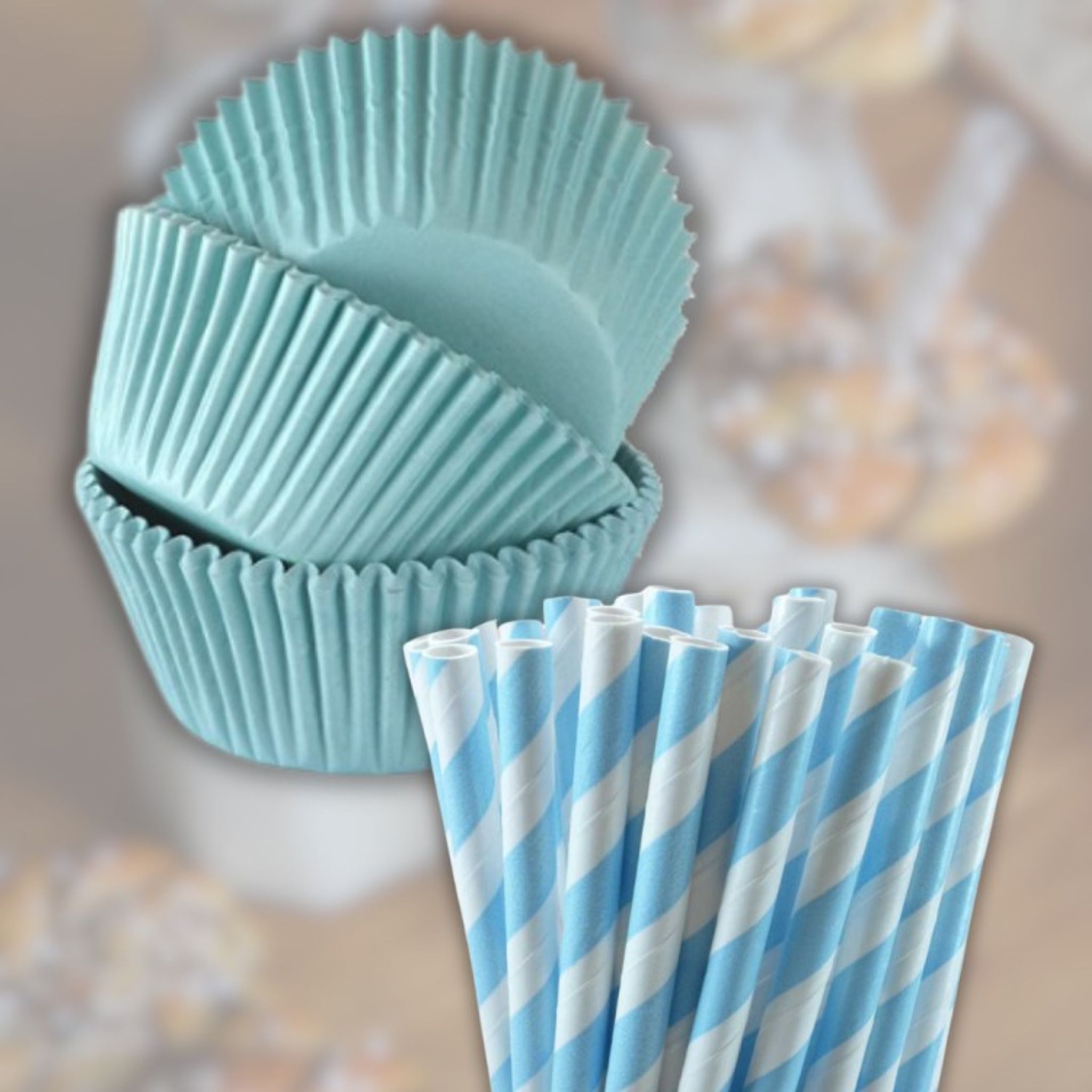 Muffinsformar och papperssugrör blå/turkos