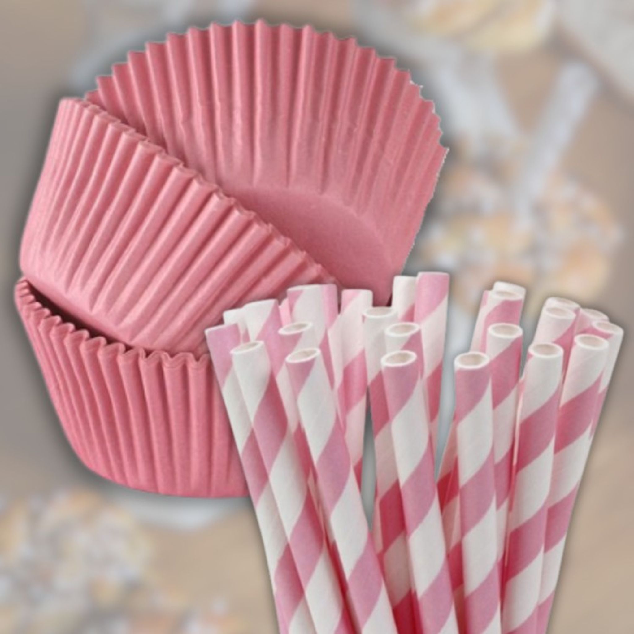 Kit med muffinsformar och papperssugrör i rosa.