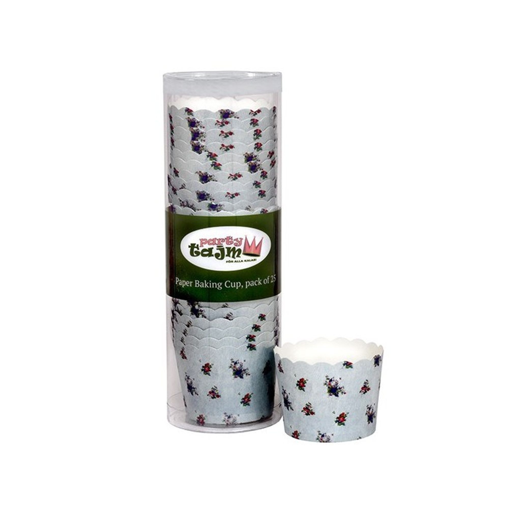 25 st mycket söta bakformar som är av kraftigt papper och tål hög ugnsvärme. Små söta blommor som har färgerna, rosa,lila och grönt i färgerna. Bakgrunden går mot svagt "mintgrönt". Formarna passar mycket fint till enfärgade kalastillbehör i hot pink, rosa och lila färger. Höjd 4,5 cm och diameter 6 cm (mätt i överkant)