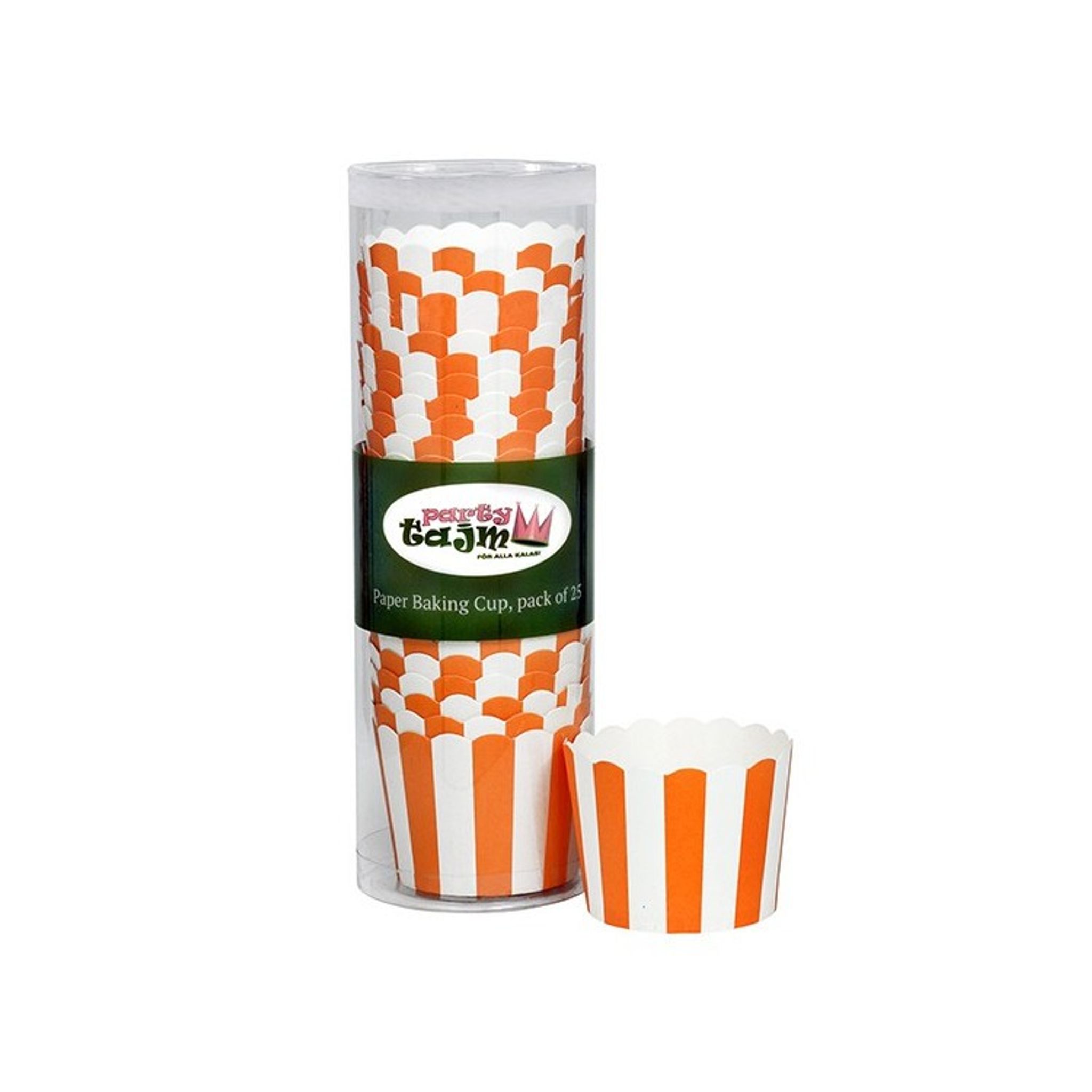 25 st mycket fina muffinsformar i kraftig papp som tål höga temperaturer. Kommer i rör och färgen matchar våra enfärgade kalastillbehör i orange (tex mugg, servett, tallrik och assiett) storlek höjd 4,5cm, diameter 6 cm