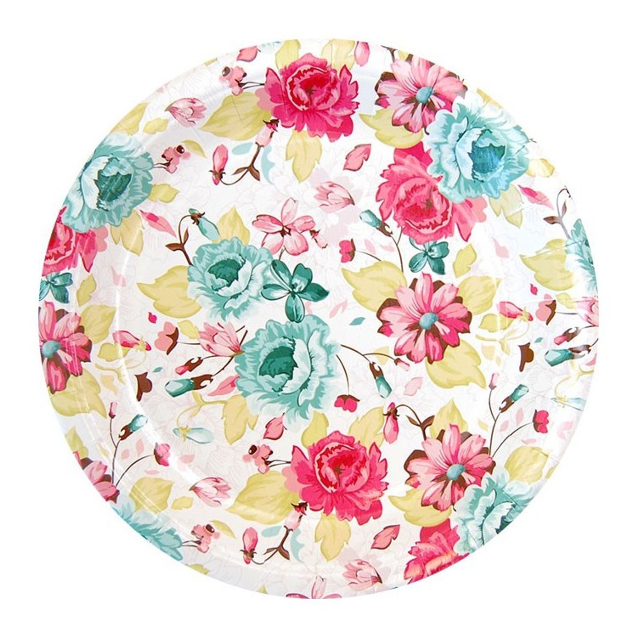 Förpackningen innehåller 12 st pappersassietter med fint blomstermotiv. Storlek: 18 cm i diametern.