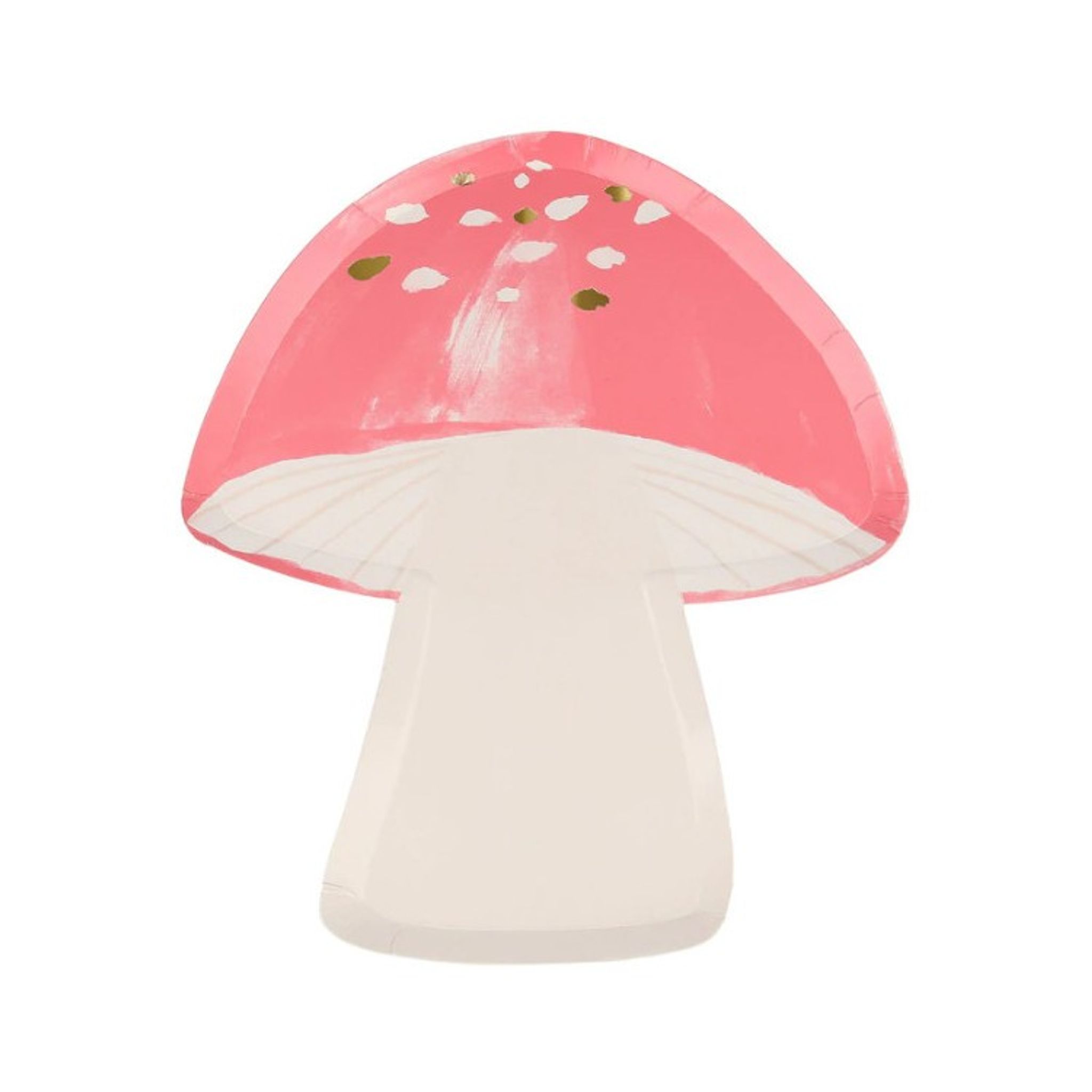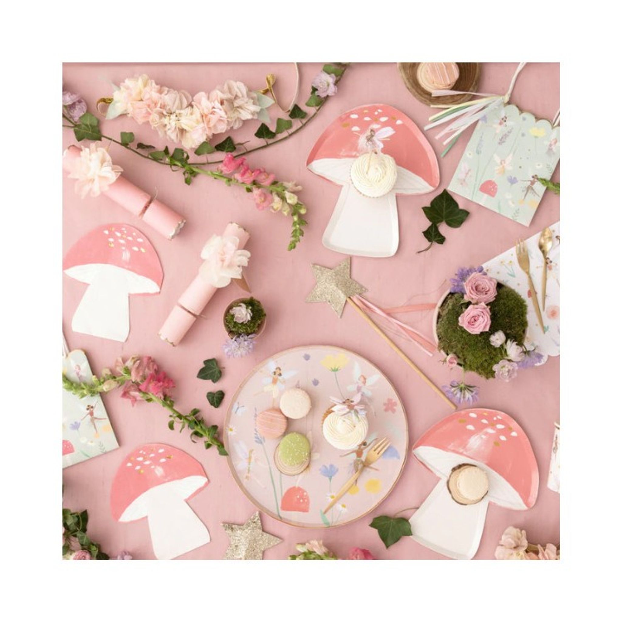Duka upp för ett mysigt barnkalas med tema skogens djur. Pappersassietterna i form av mörkrosa och beiga flugsvampar med guldfolierade detaljer blir dukningen extra fin! Flugsvamparna blir kanske extra festliga tillsammans med kalasdekorationer i rosa eller när du vill anordna ett barnkalas för barnet som bara älskar skogens alla vackra ting!