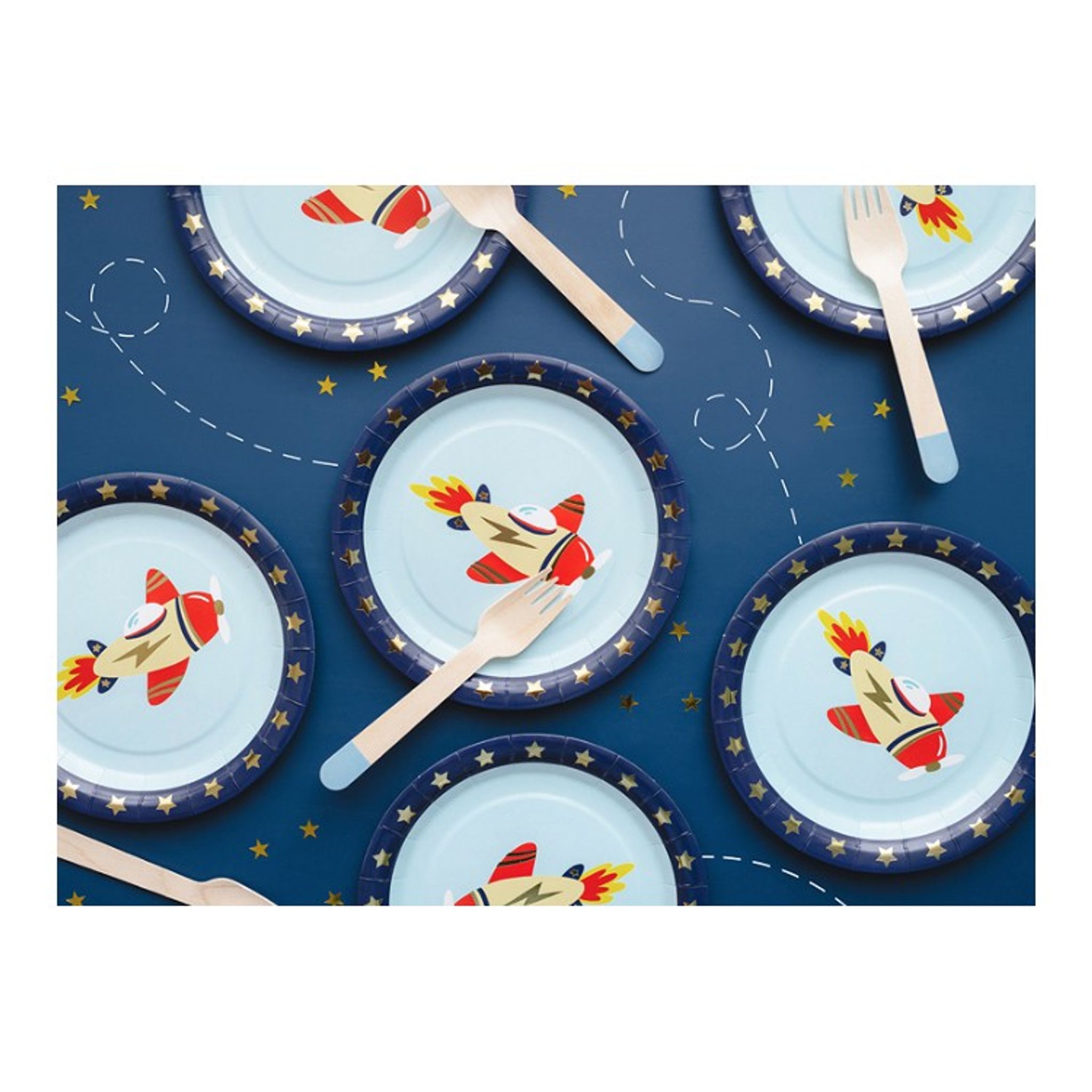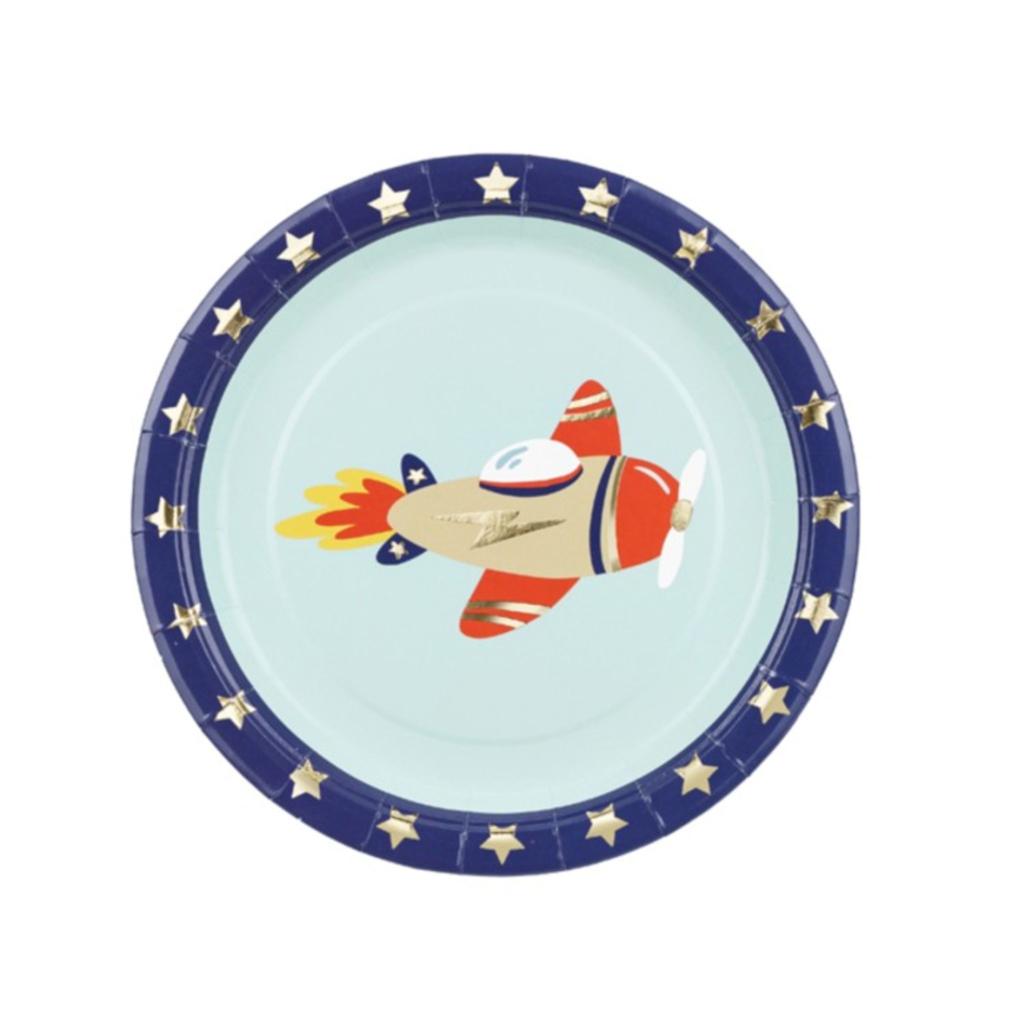 Bjud in till flygplanskalas! Pappersassietter Flygplan innehåller 6 stycken assietter. Matcha gärna med övriga produkter i flygplansserien. Storlek: 18 x 18 cm.